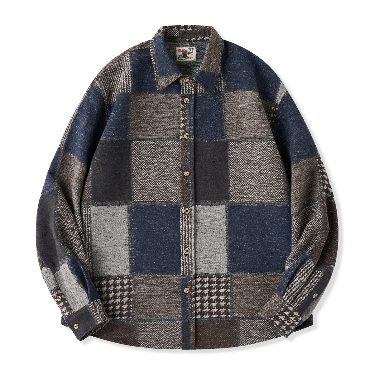 ウール混 ボロ風ジャガードツイード長袖シャツ