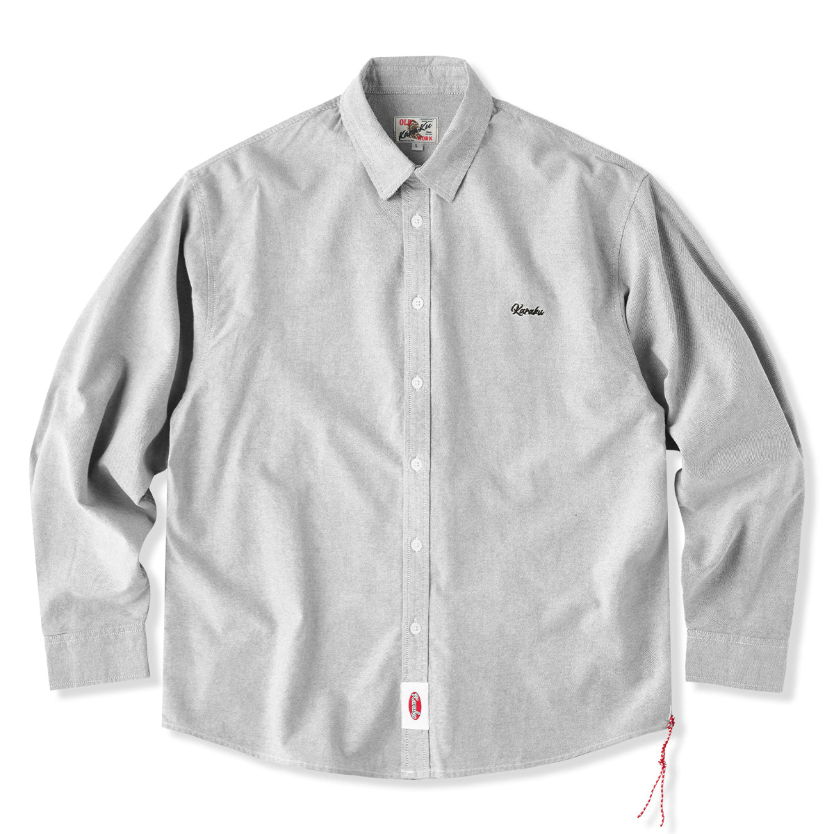 Cleanfit 赤ヒモ付き 刺繍入りオックスフォード長袖シャツ
