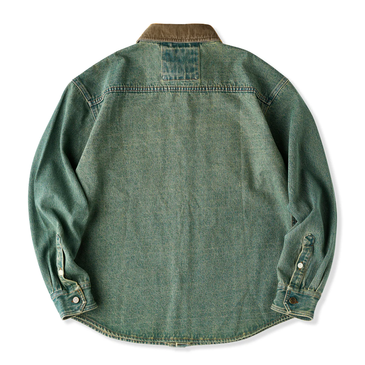 袖裏コーデュロイ ジャガードペイズリー総柄ウォッシュデニムシャツ