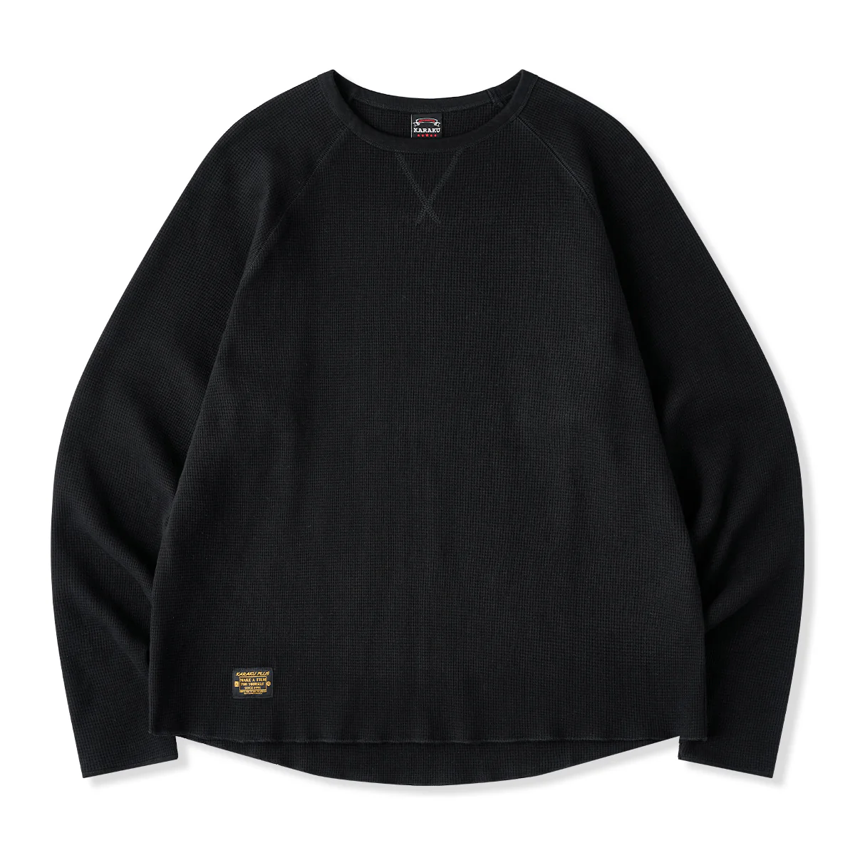 Vガゼット入り ワッフルラグランスリーブロングTシャツ