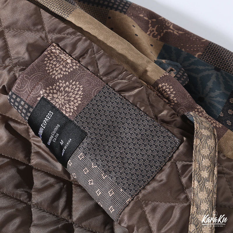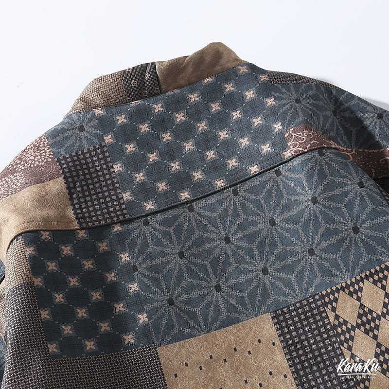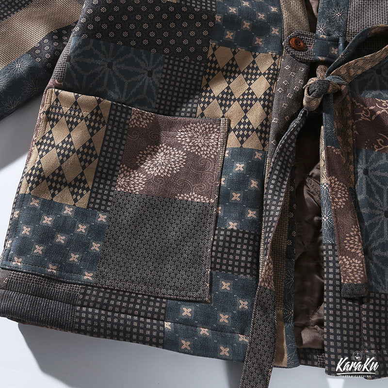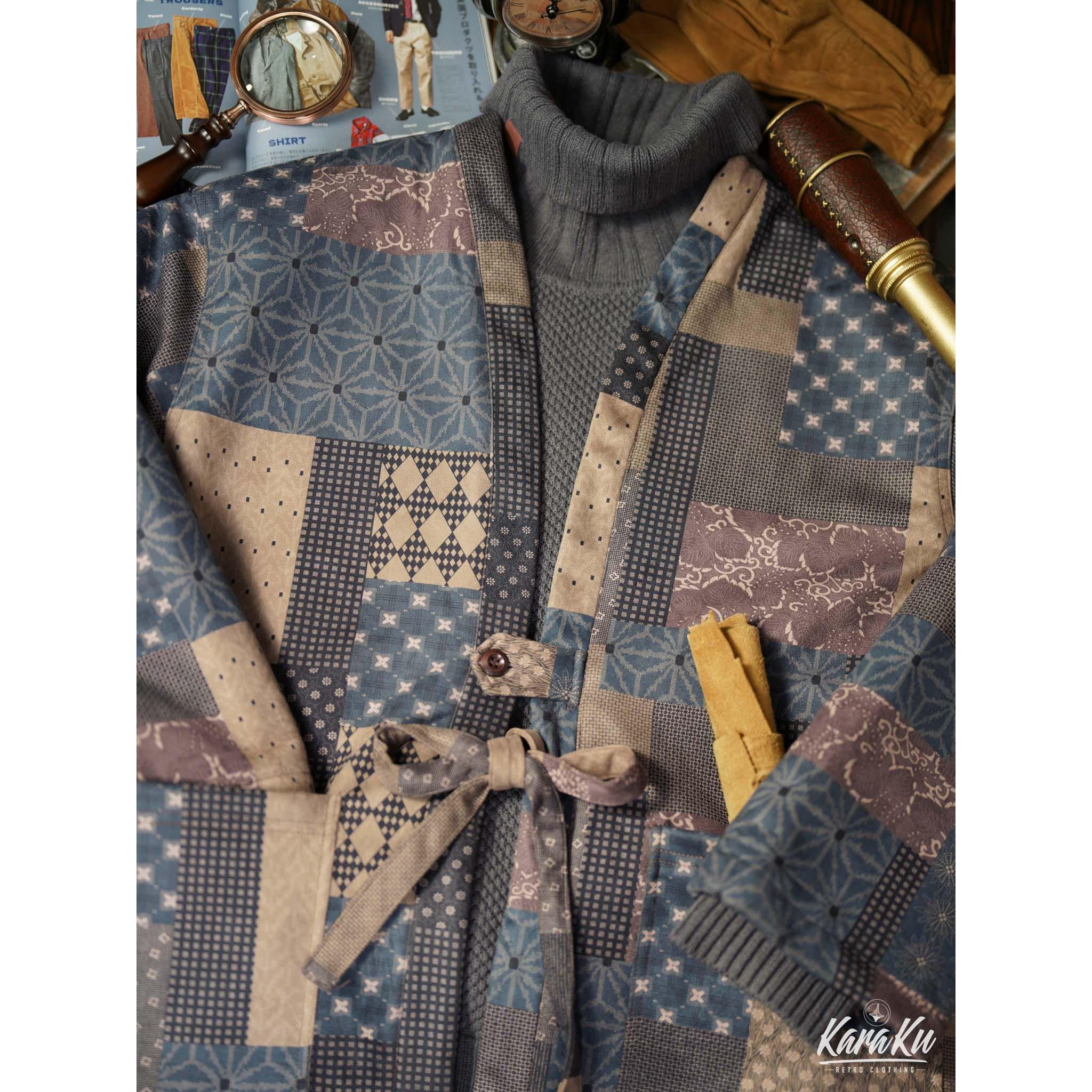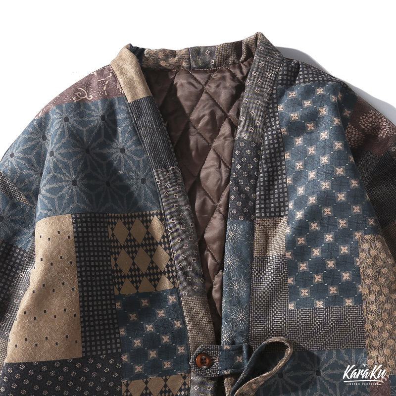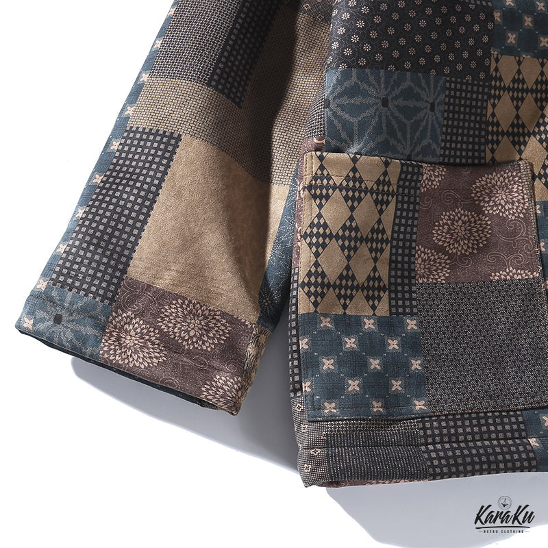 • 古布ボロパーチワーク風 裏キルト中綿入り半纏