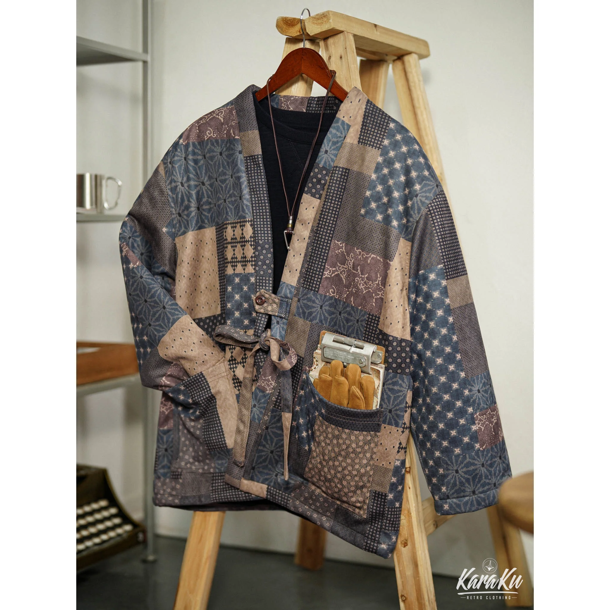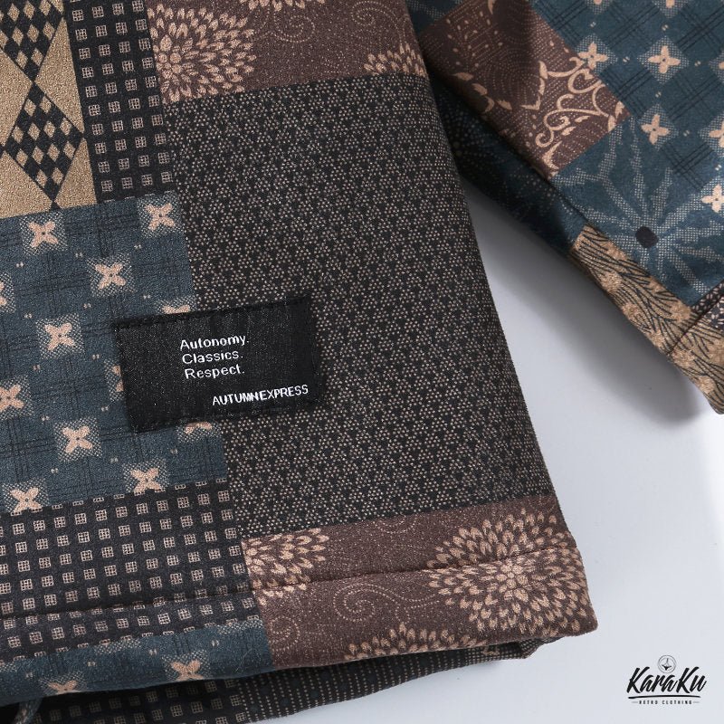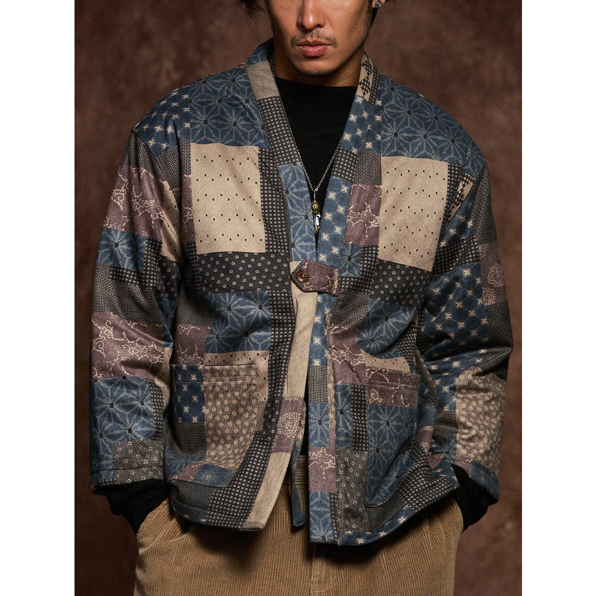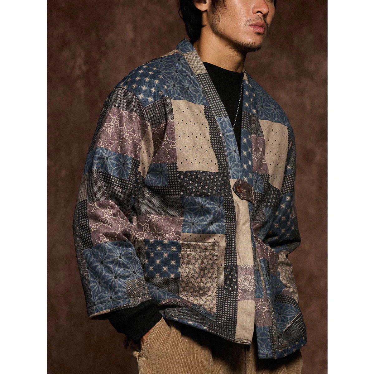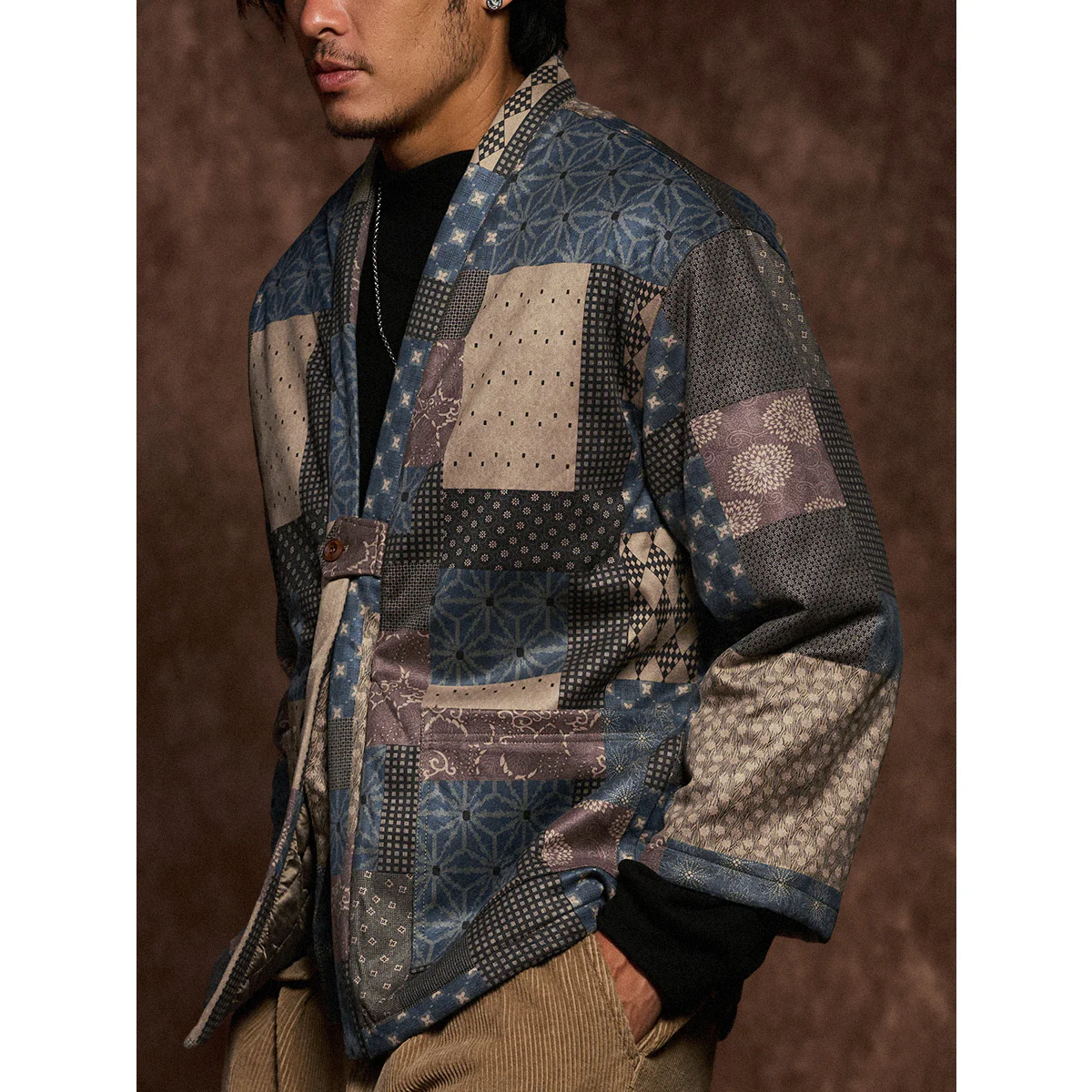 • 古布ボロパーチワーク風 裏キルト中綿入り半纏