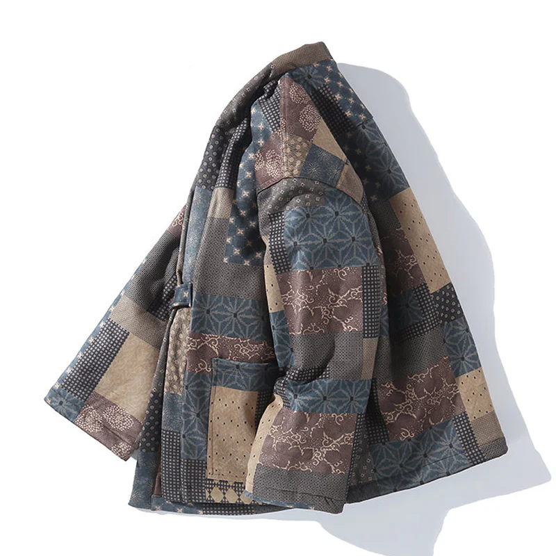 古布ボロパーチワーク風 裏キルト中綿入り半纏