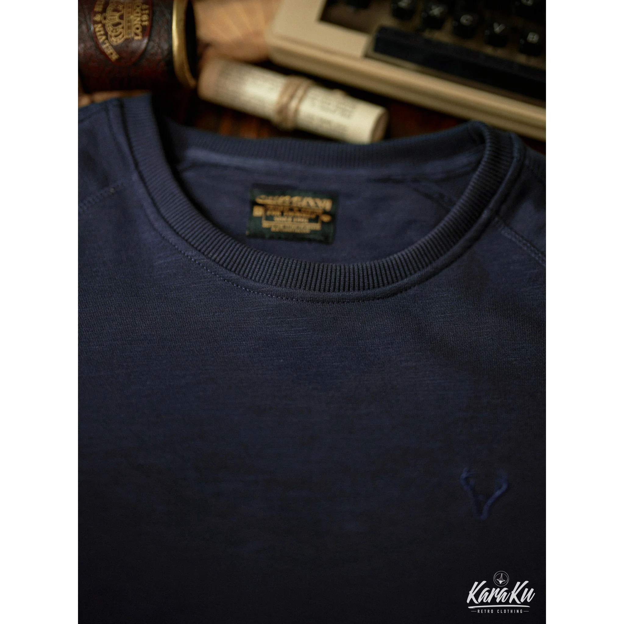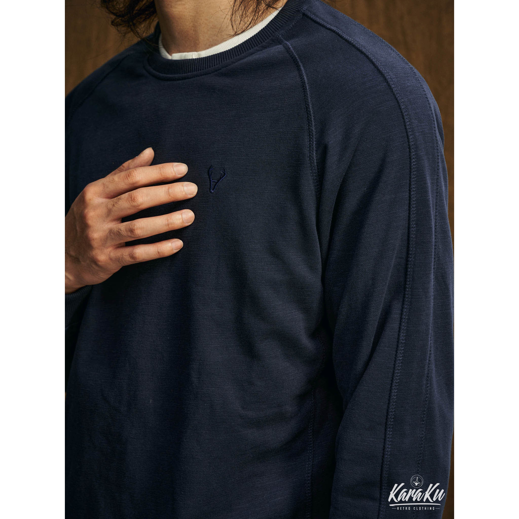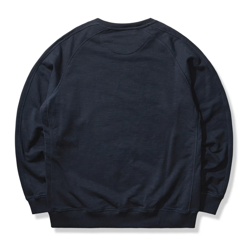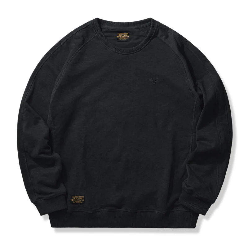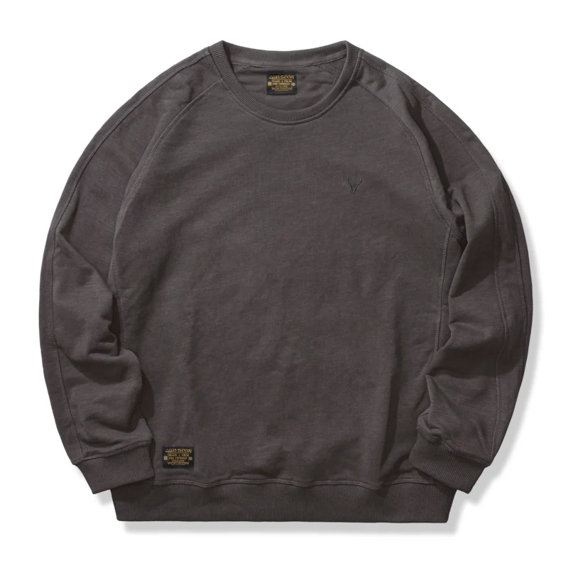 本アイテムは肩が落ちた形状になり、リラックス感のある印象に。ネックから脇にかけて斜めに曲線を描きながら入っているのが最大の特徴。腕が上がりやすく、動かしやすいため、スポーツウェアによく見られる形状でもあり。襟・袖口・裾下にリブとダブルステッチを施した、ラグランスリーブもコーデにスポーティなアクセントをプラス。左胸元にシンプル鹿の刺繍はオーセンティックさを感じさせる別注のデザイン、程よい主張とトレンドを感じさせる。350gの重さがあるヘビーウェイト生地+裏パイル地を使用し、パイル状にすることで繊維の間に空気が入りやすくなり、ふわっとした感触を作ってくれ、柔らかさと質感で現れ、丈夫さと暖かさを併せ持った質感が特徴で、吸水性・伸縮性の優れた。着心地と耐久性は言わずもがな、ふわふわとした肌触りで最高の快適性を提供。