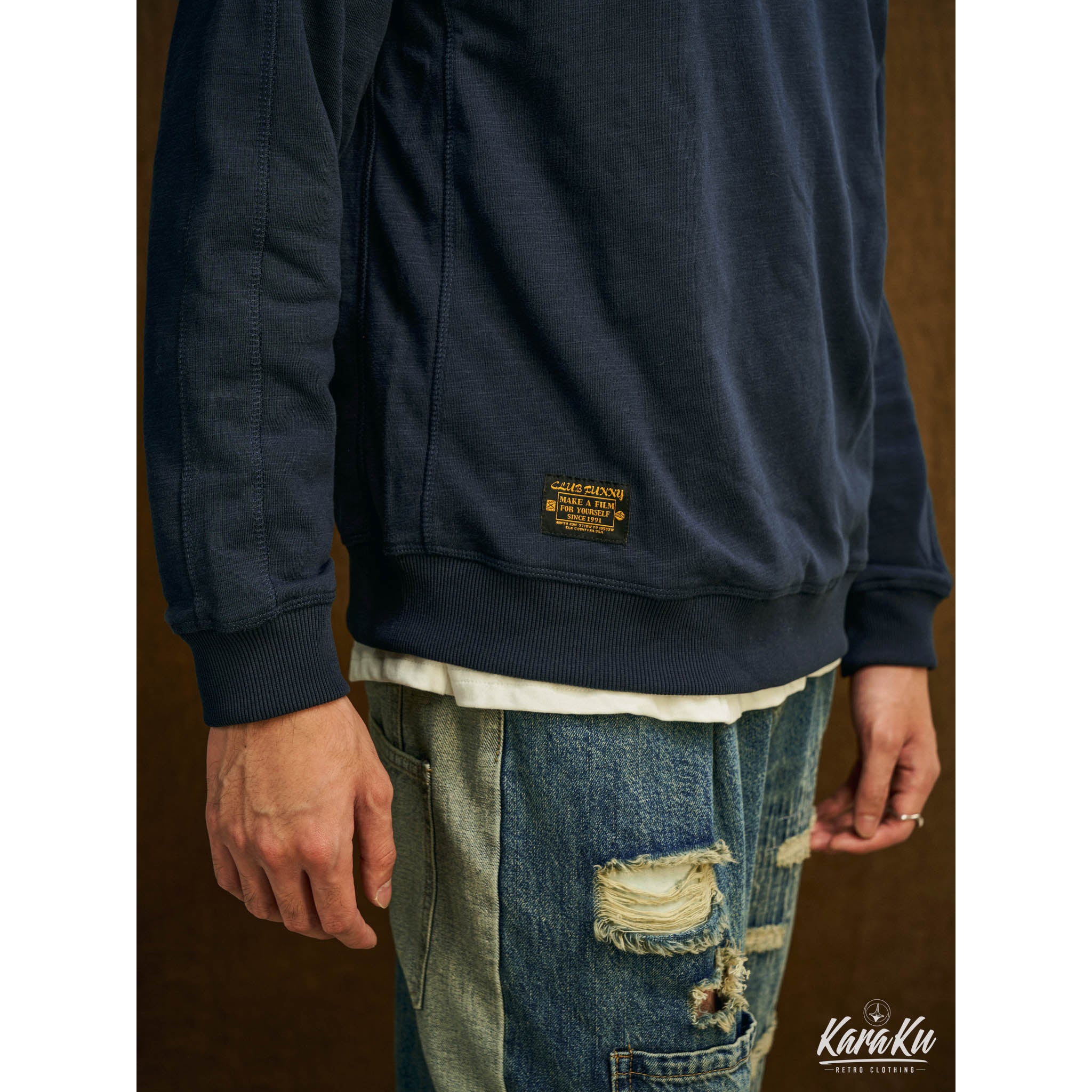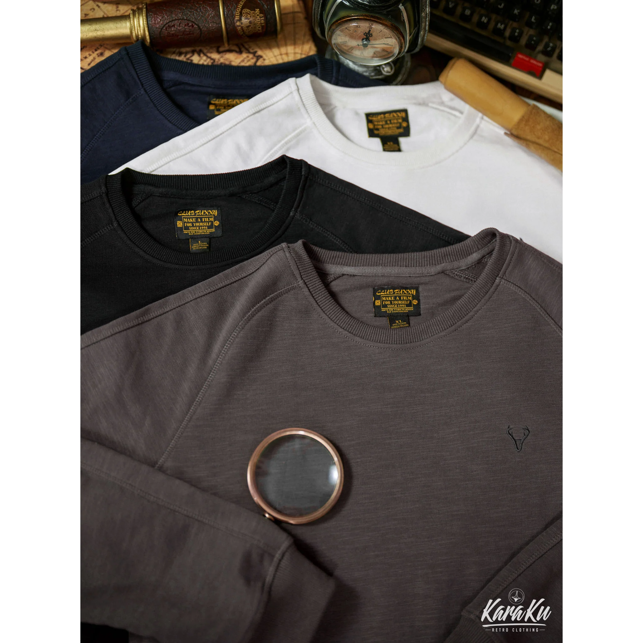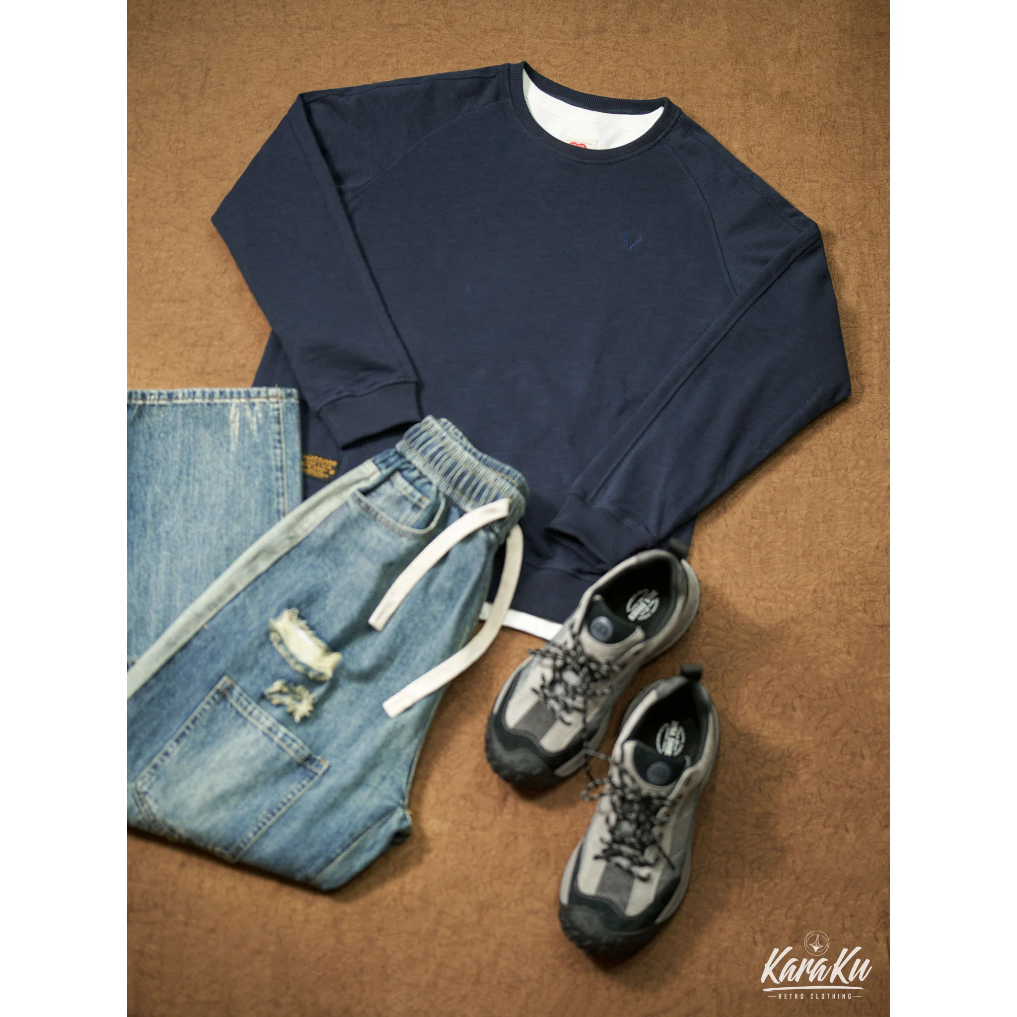 本アイテムは肩が落ちた形状になり、リラックス感のある印象に。ネックから脇にかけて斜めに曲線を描きながら入っているのが最大の特徴。腕が上がりやすく、動かしやすいため、スポーツウェアによく見られる形状でもあり。襟・袖口・裾下にリブとダブルステッチを施した、ラグランスリーブもコーデにスポーティなアクセントをプラス。左胸元にシンプル鹿の刺繍はオーセンティックさを感じさせる別注のデザイン、程よい主張とトレンドを感じさせる。350gの重さがあるヘビーウェイト生地+裏パイル地を使用し、パイル状にすることで繊維の間に空気が入りやすくなり、ふわっとした感触を作ってくれ、柔らかさと質感で現れ、丈夫さと暖かさを併せ持った質感が特徴で、吸水性・伸縮性の優れた。着心地と耐久性は言わずもがな、ふわふわとした肌触りで最高の快適性を提供。