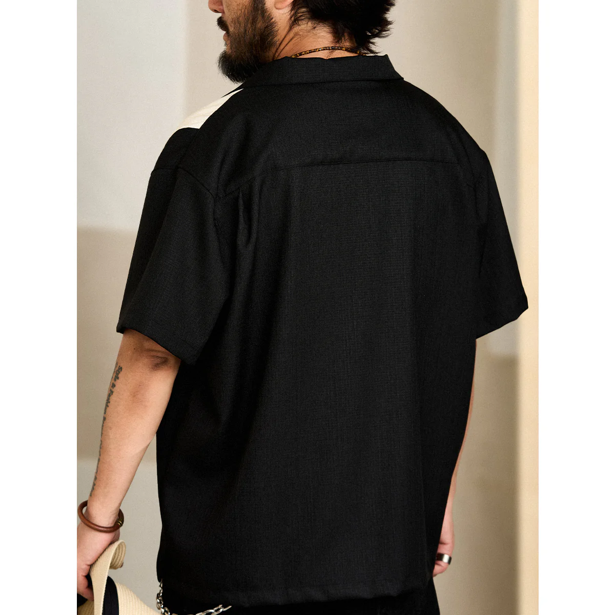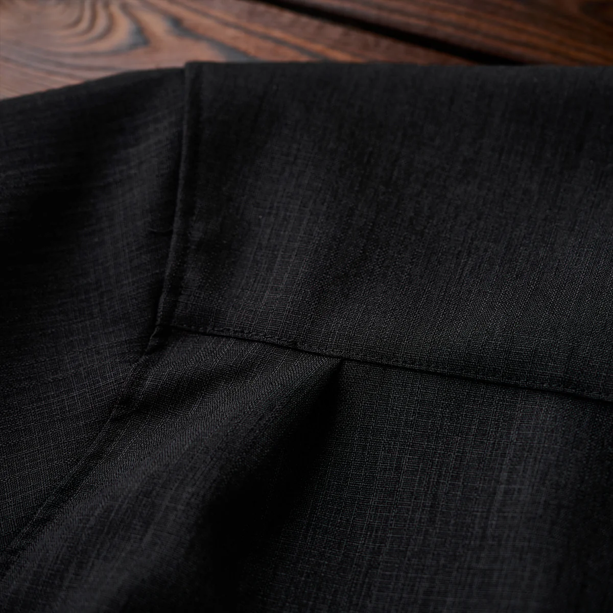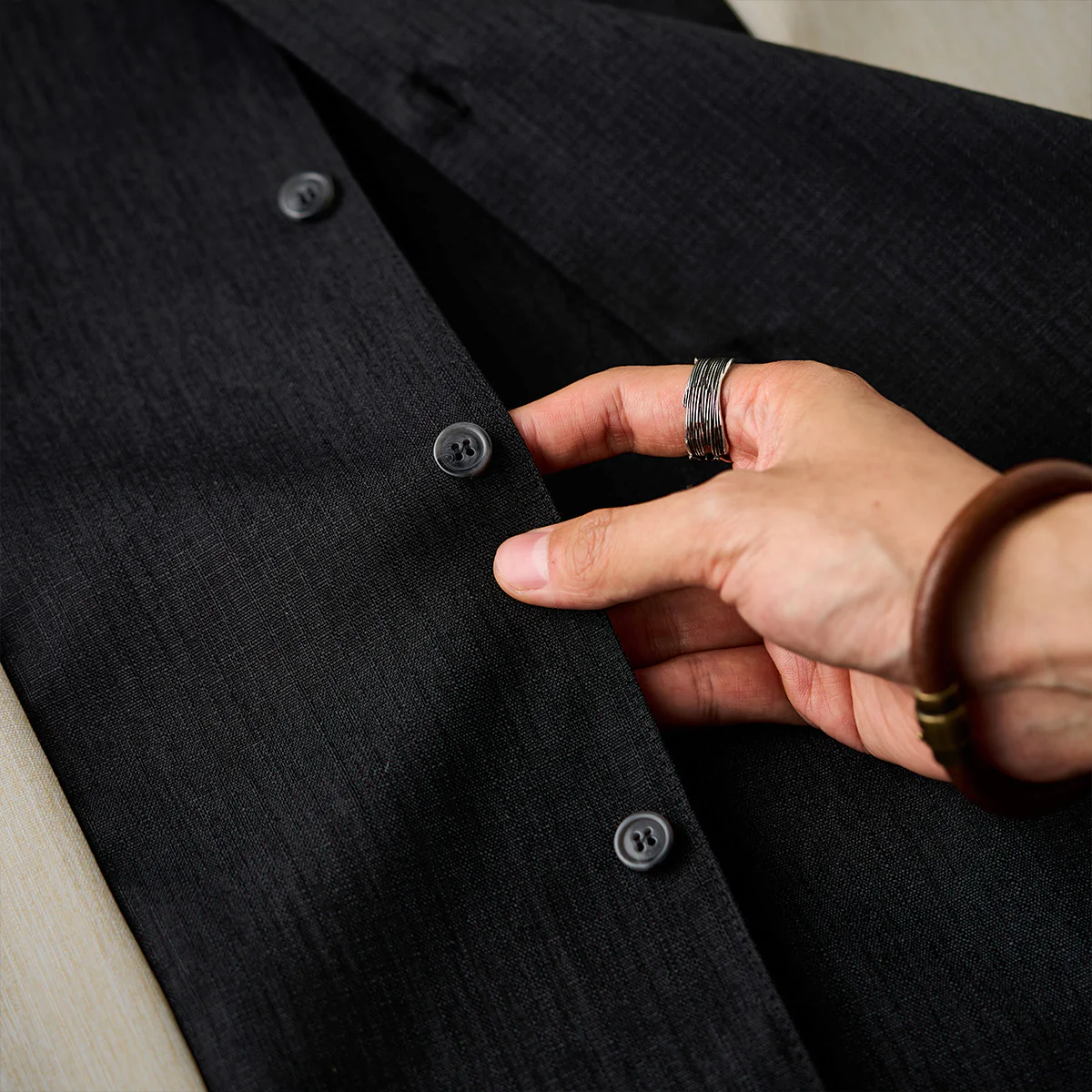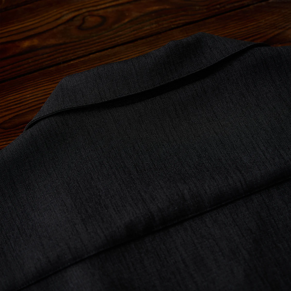 本アイテムは異素材コンビで仕上げられに加え、一番目立つのはフロントに黒と白でパッチワークデザイン、質感もテキスチャーも綺麗に現れ、スペシャル感とビンテージ感を兼ね備える。経糸と緯糸を2本ずつ引き揃えて織る、経糸にベージュ色、横糸に白を使用した生地。糸染め織物による軽さと柔らかさをもつ生地で、独特な霜降り感と光沢感が特長。発色を抑えたカラーバランスがとてもいい雰囲気で、先染め特有の立体感や奥行き感も手伝ってレギュラー生地には見られないような魅力があります。平織手法をナチュラルリネンのタッチを残す為に柔らかく生地になじむ加工、ウォッシュ加工でヴィンテージの風合いを演出。快適で通気性、サクサク感、トレンディなレトロスタイルを作りやすく、デイリーユースからアウトドアスタイルまで幅広くご使用頂けます。