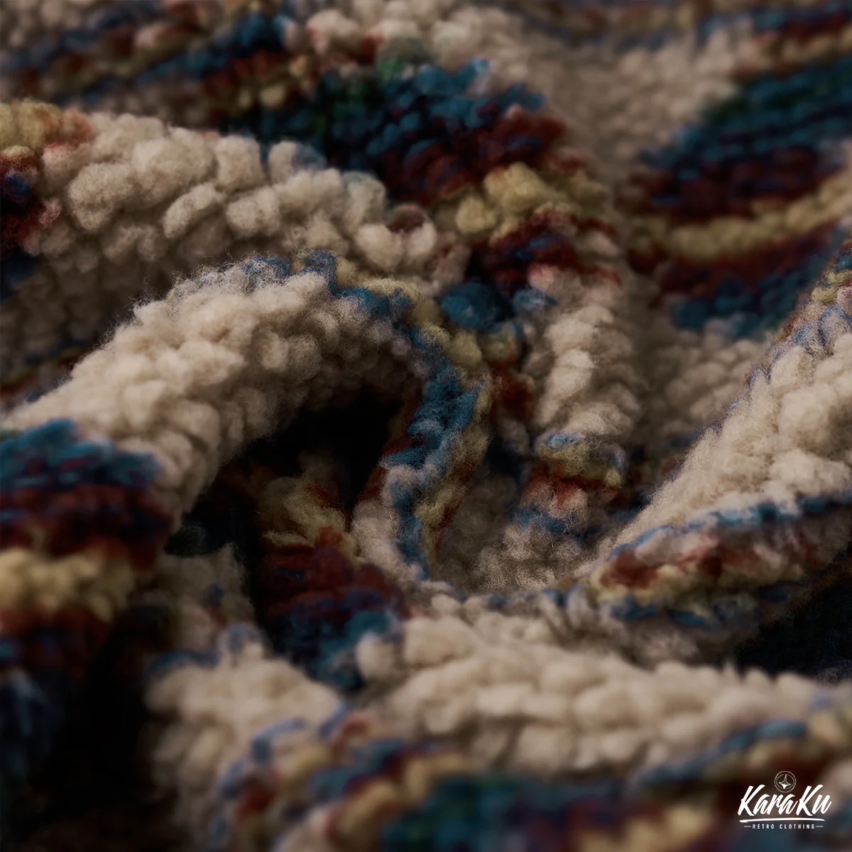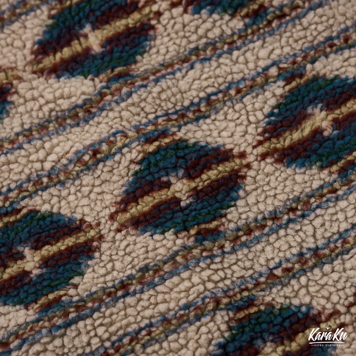 内側はナバホ柄のボアで裏打ちされて、ナバホ柄はネイティブアメリカンの伝統的な幾何学模様を特徴とし、色合いには青、茶色、ベージュが使われ、自然との調和を意識した。ジャケットを脱いだ際や、前を開けた状態で着用した際に目を引くアクセントとなる。