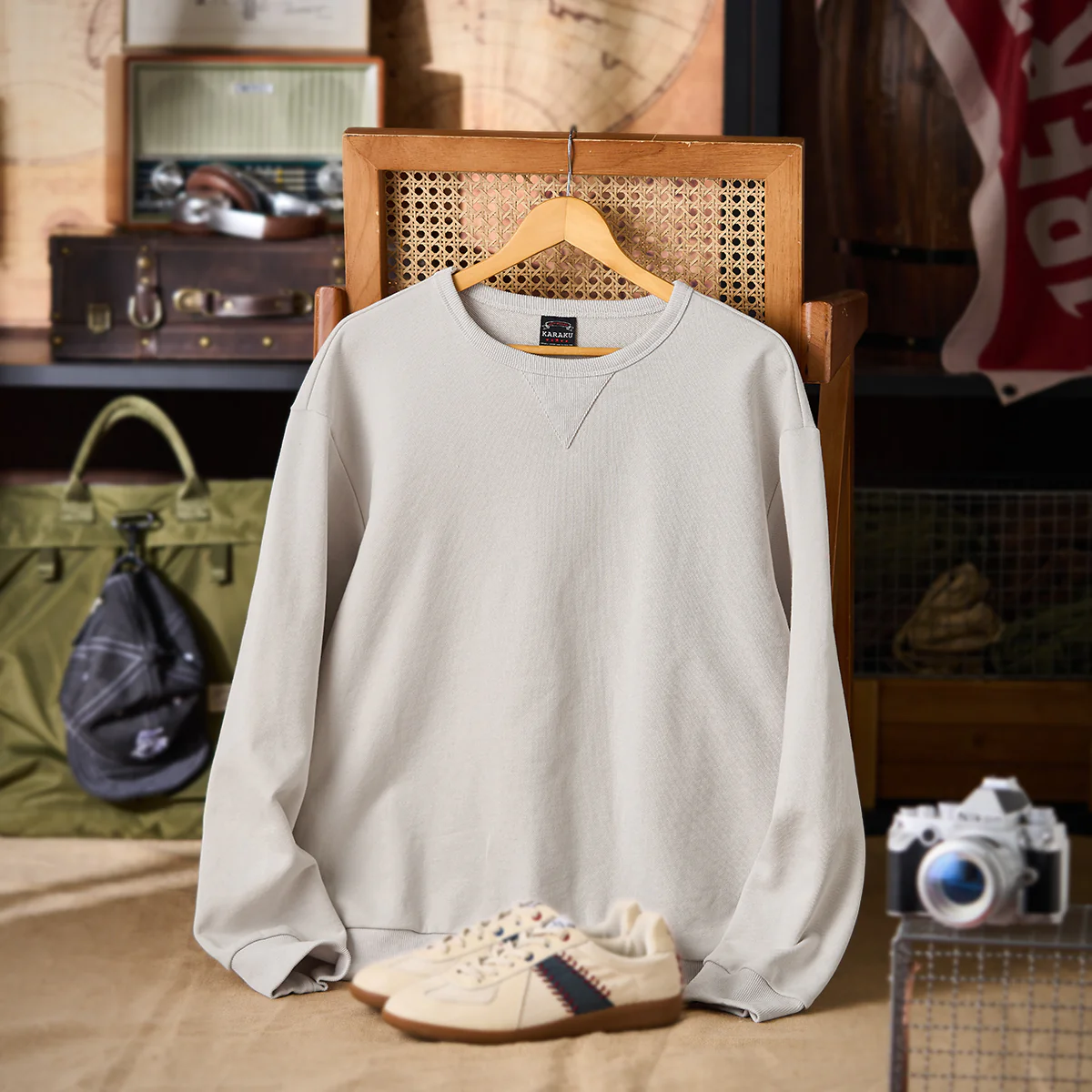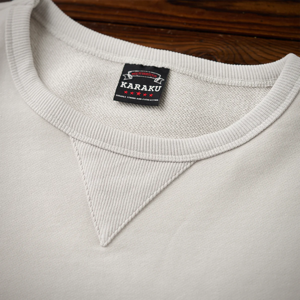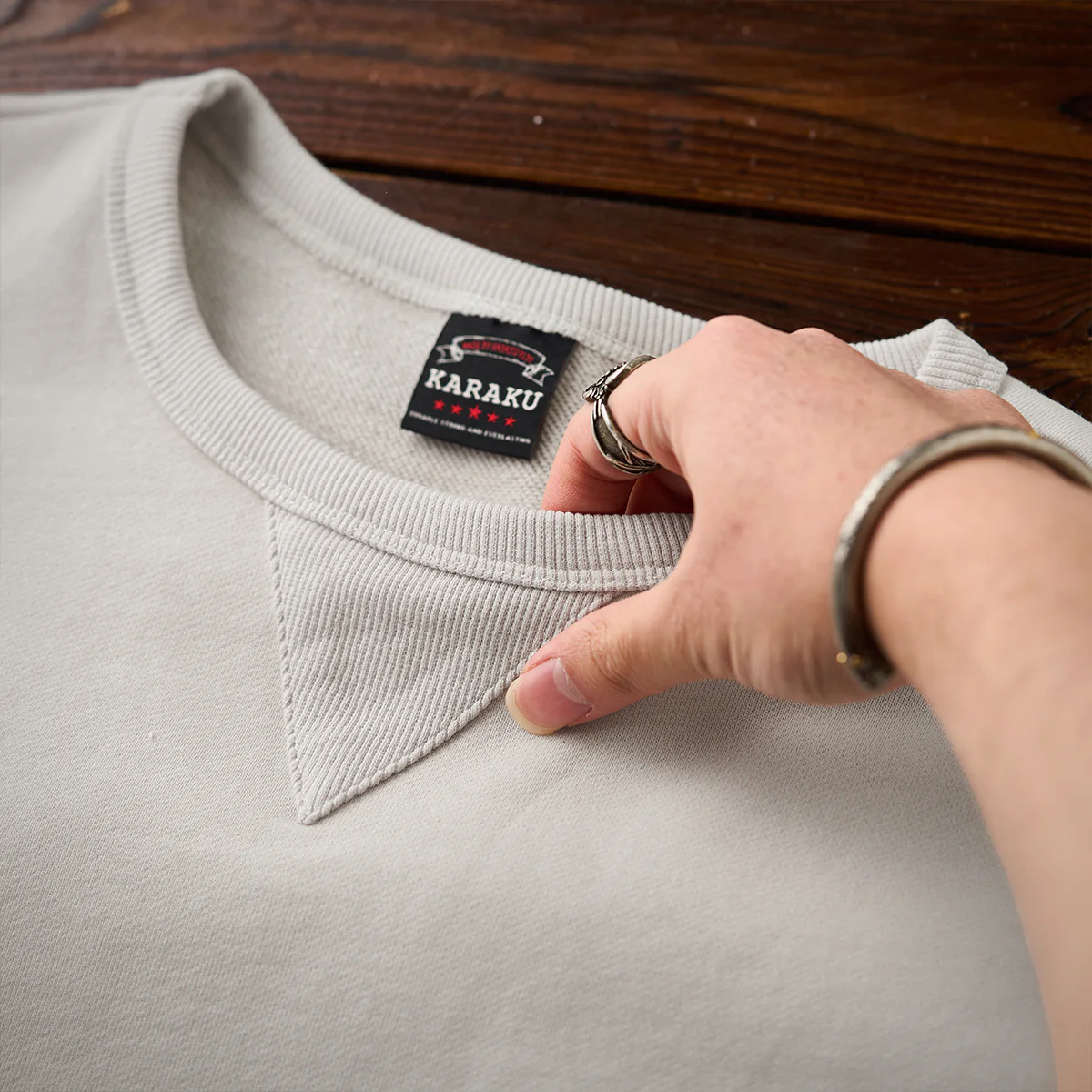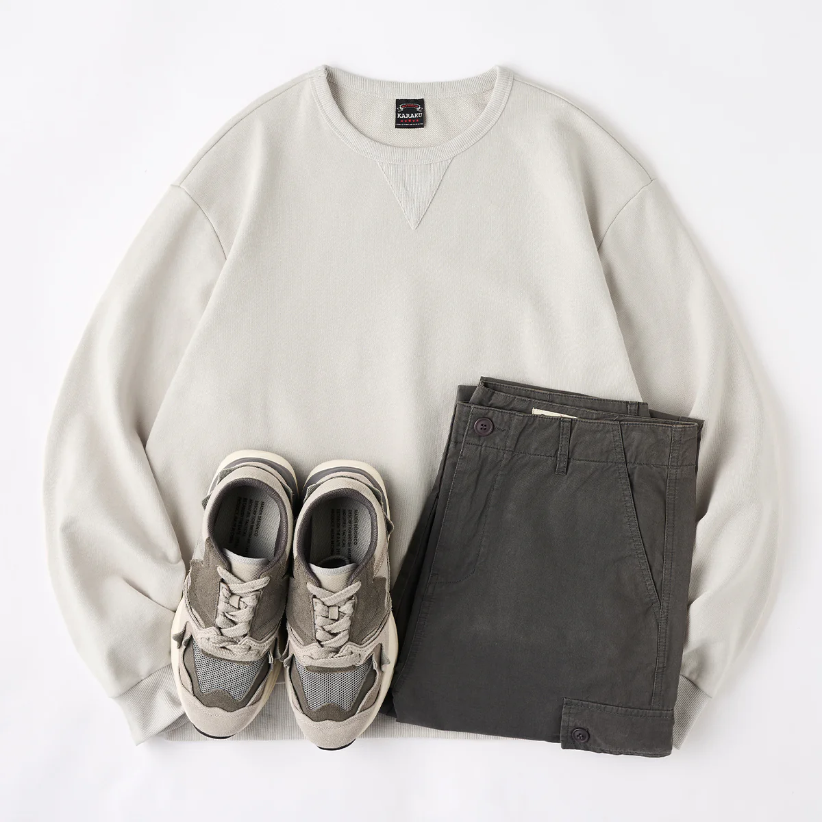 ネックライン下にV字型のガゼットが配置されており、スウェットのクラシックなディテールで、ヴィンテージ感を演出しています。機能的にも補強の役割を果たす伝統的な要素です。