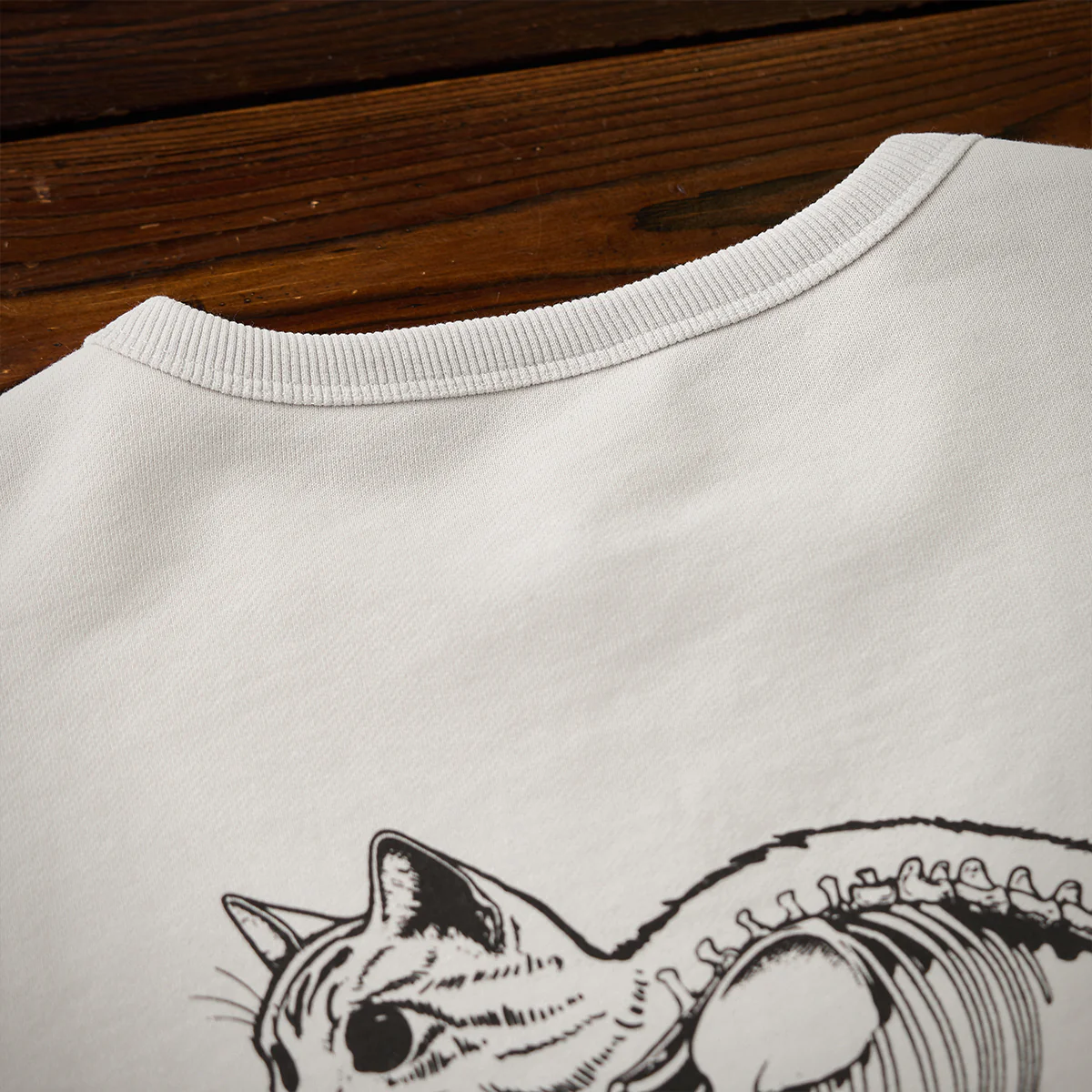 猫の骨格が露出している描写は少しダークで、ゴシックやホラー的な雰囲気を持っています。
