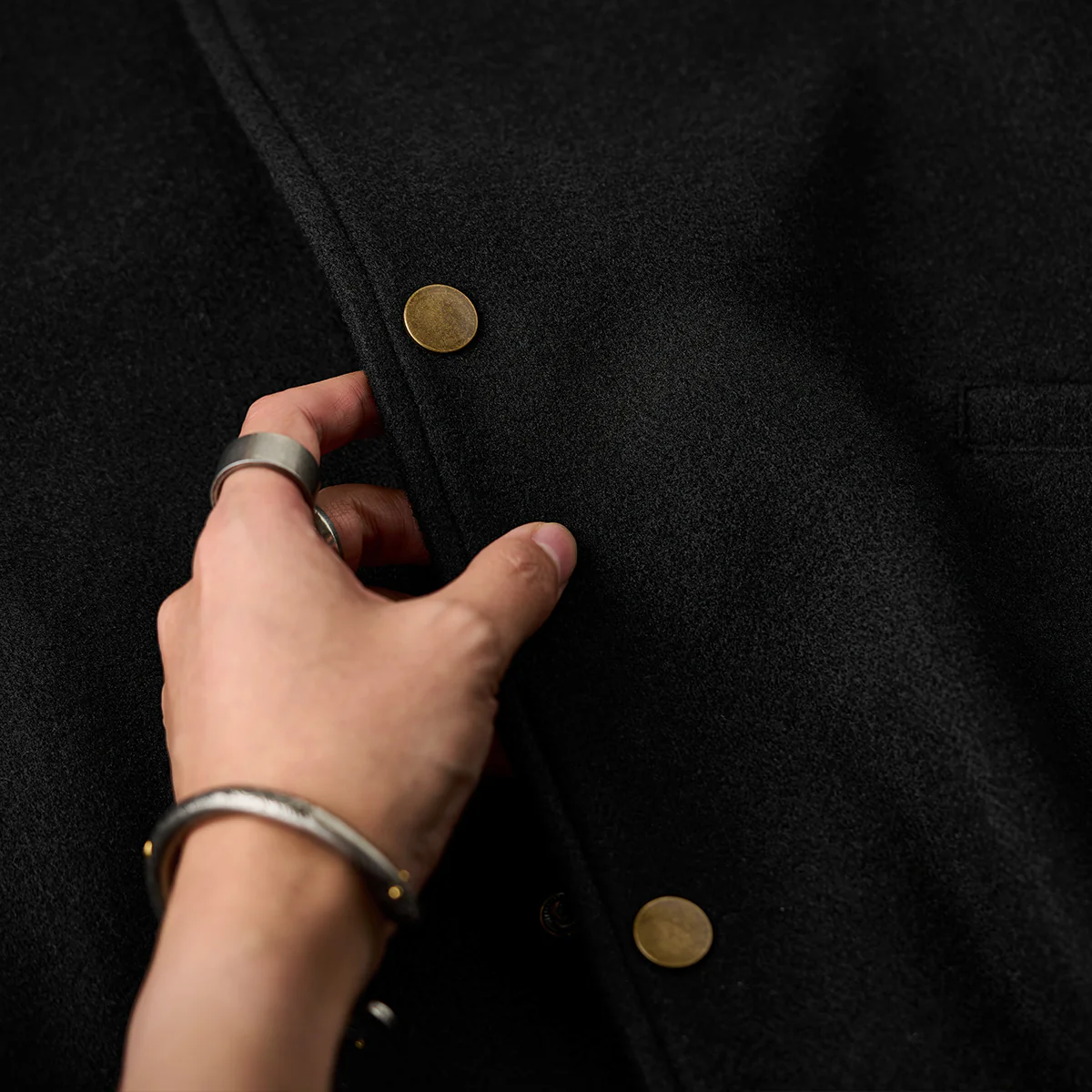 ダークデニムやブラックのスキニーパンツと合わせると、全体の配色が引き締まる。インナーにタートルネックやシャツを合わせると、モダンで洗練された印象に。
