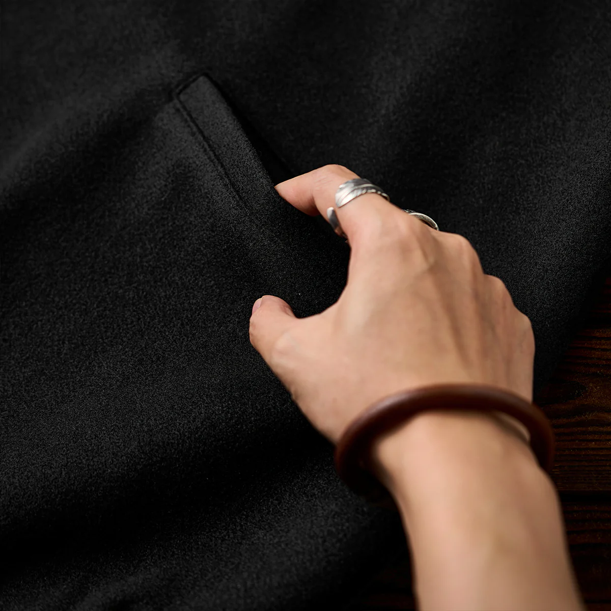 ポリエステルをメイン使用し、しっかりとした打ち込みで厚みがあり、他素材とは違った経年変化が楽しめる。さらに、耐久性にも優れており、長く愛用できる。