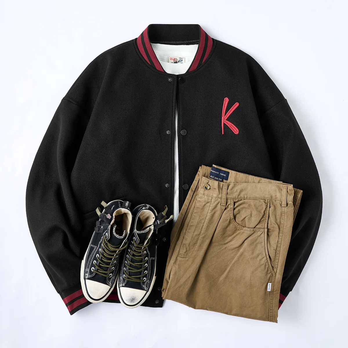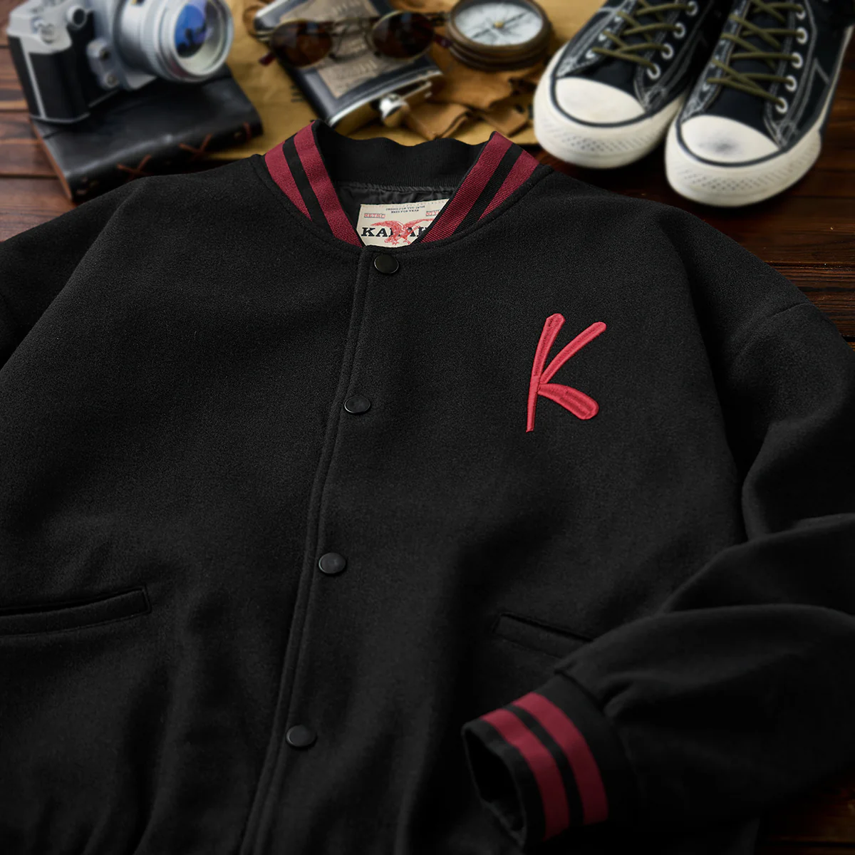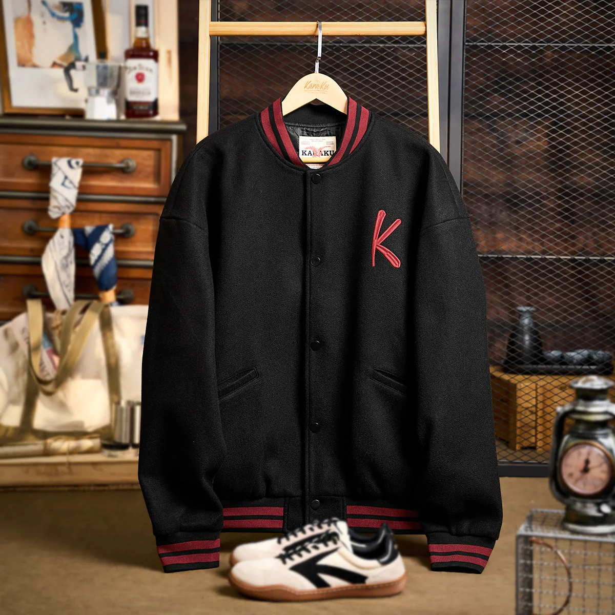 咆哮とともに鋭い眼光を放つ一匹の猫。その身にまとうのは、威厳と誇りを象徴する武士の甲冑――。本作は、karakuらしいユーモアと重厚さを絶妙に融合させた、“幕府将軍猫”を描いたグラフィックスタジャンです。フロント左胸には「K」ロゴ刺繍をあしらい、ブランドの世界観をさりげなく主張。背面には、咆哮する将軍猫の勇姿を繊細な刺繍技法で立体的に表現し、迫力と存在感を際立たせています。程よくゆとりを持たせたシルエットは、1枚で主役としても、インナーとしても映える万能デザイン。アート性と遊び心を兼ね備えた、karakuらしさあふれる一着です。