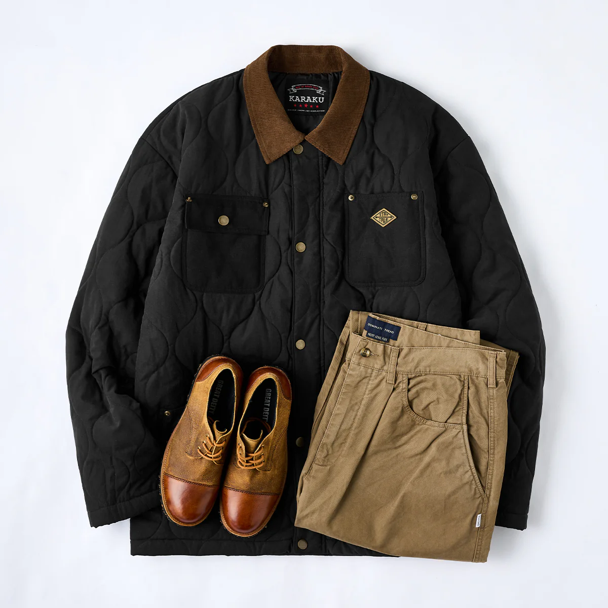 • 襟コーデュロイ 4-pocketひょうたんキルトピーチスキンジャケット