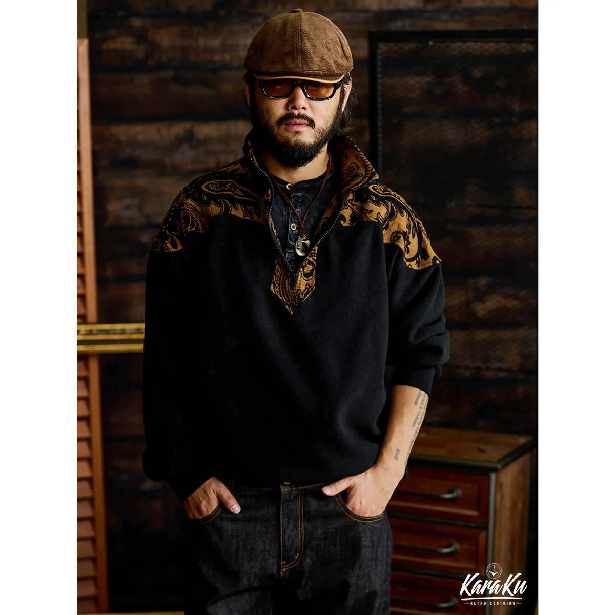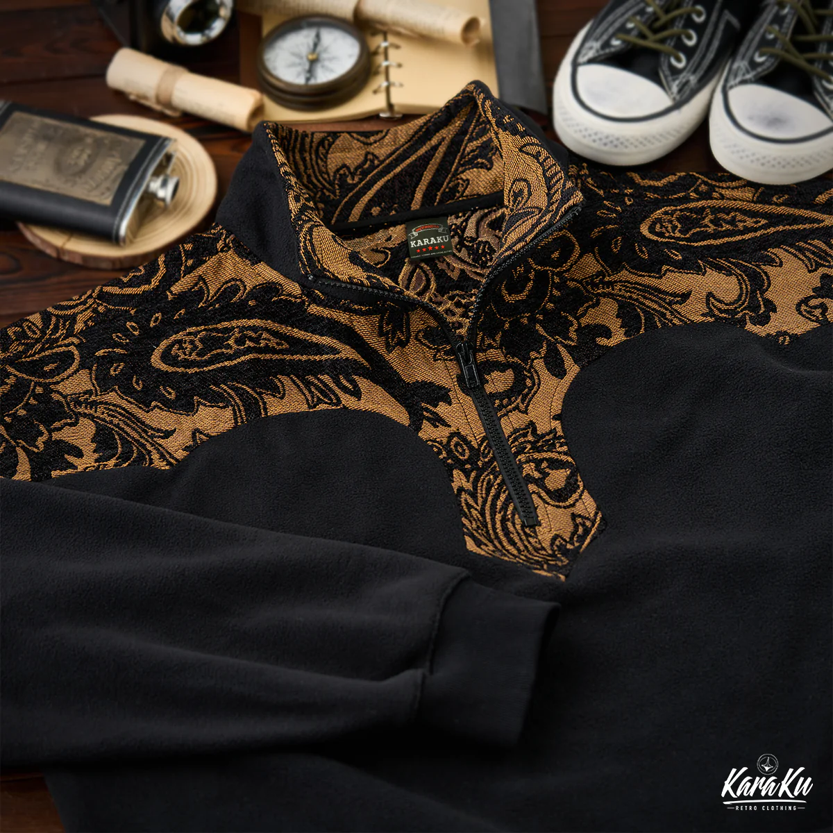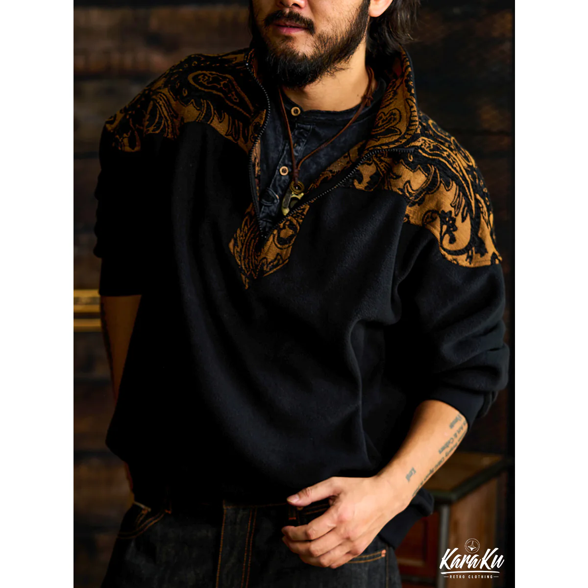 ペイズリー柄異素材コンビ ウエスタンハーフジップフリースプルオーバー