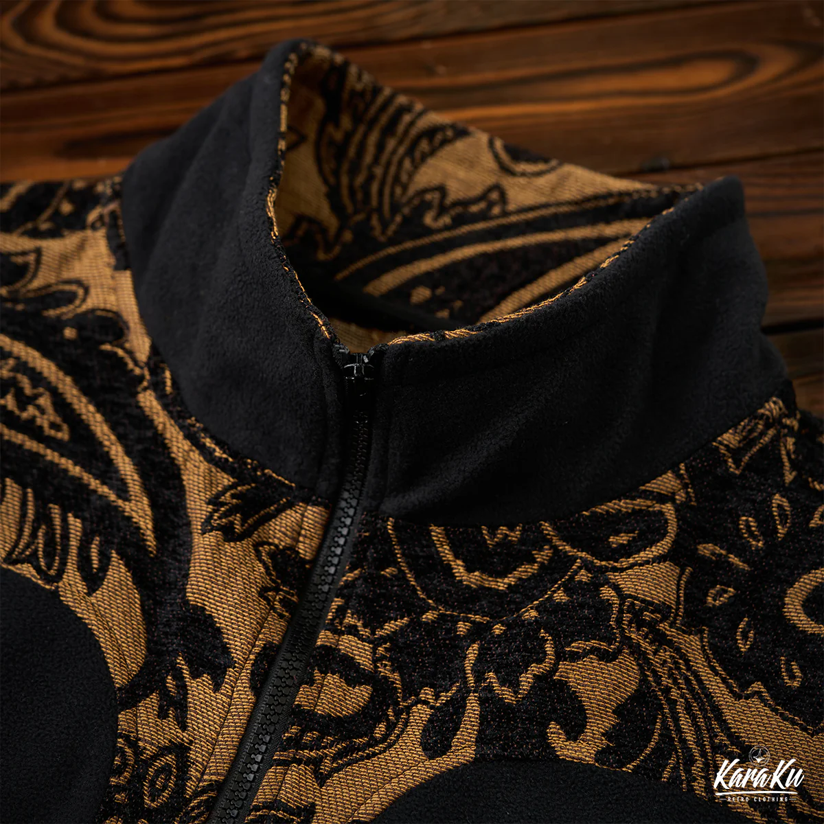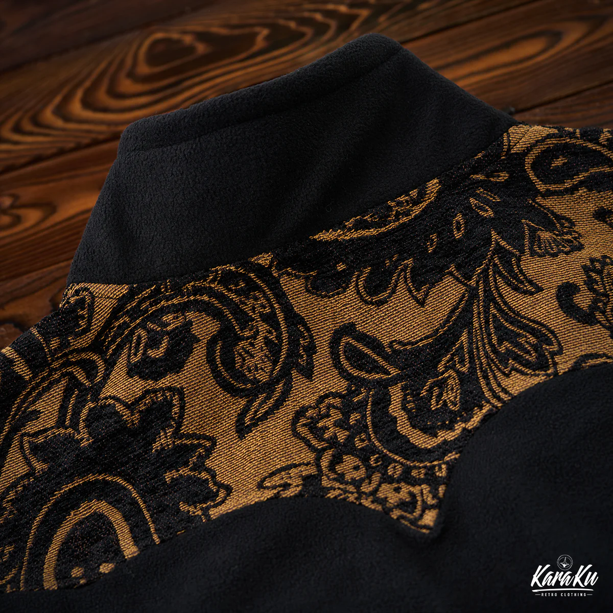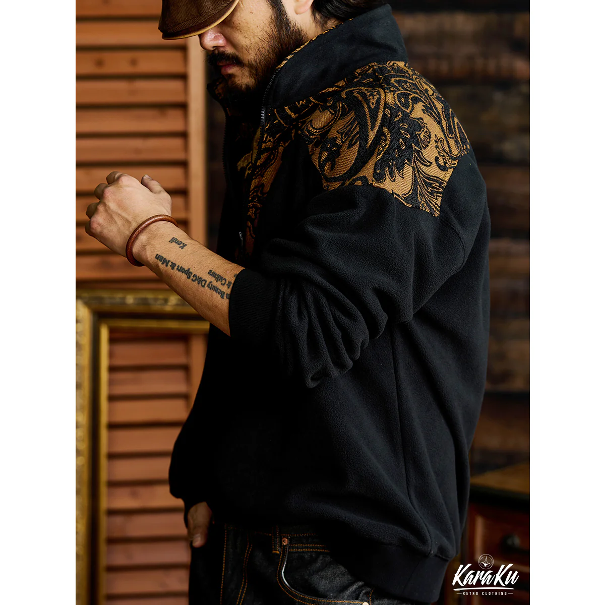 ペイズリー柄異素材コンビ ウエスタンハーフジップフリースプルオーバー