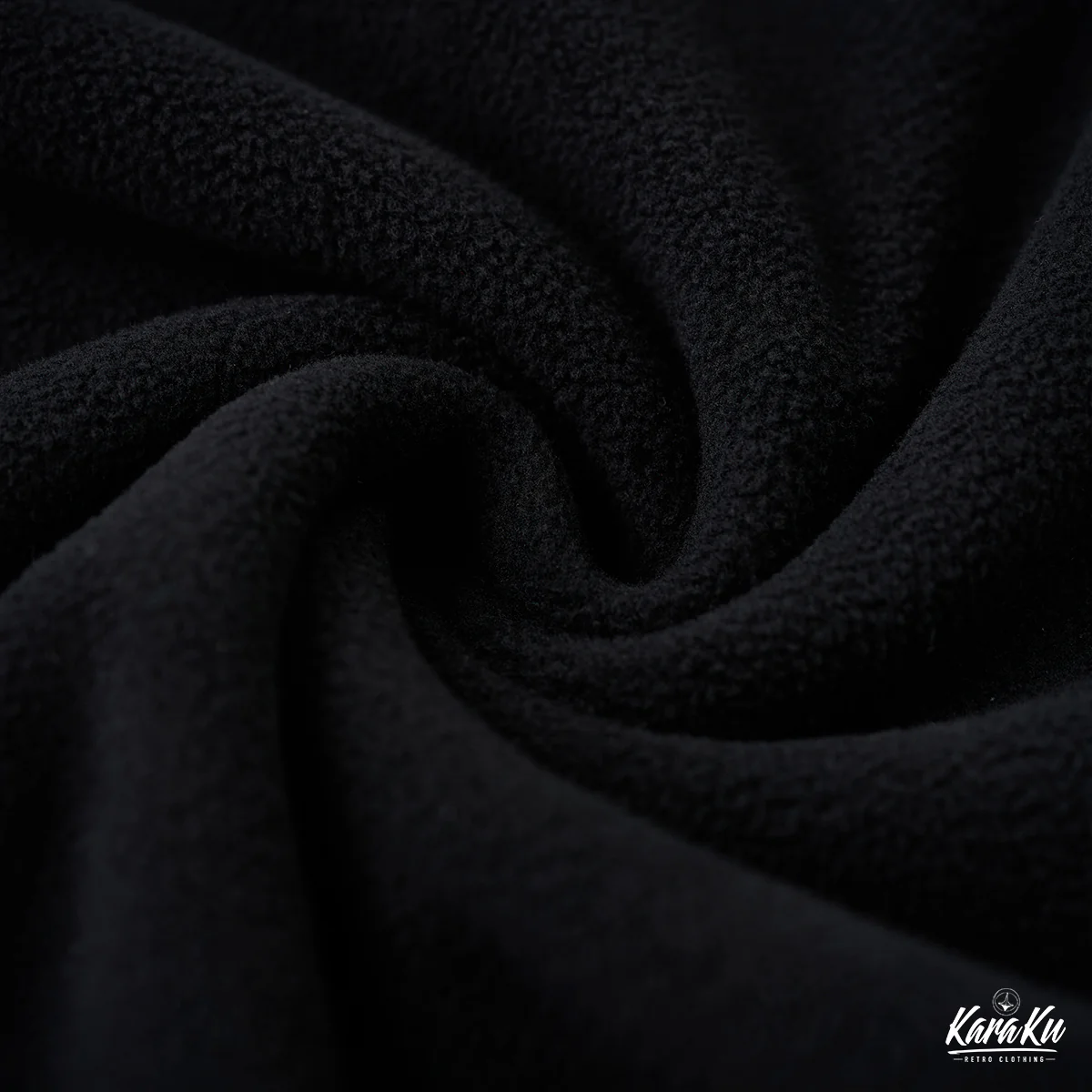 フリースは軽量で暖かく、柔らかい肌触りが特徴で、保温性に優れ、寒い季節に適す、通気性もあり、快適な着心地を保つ。