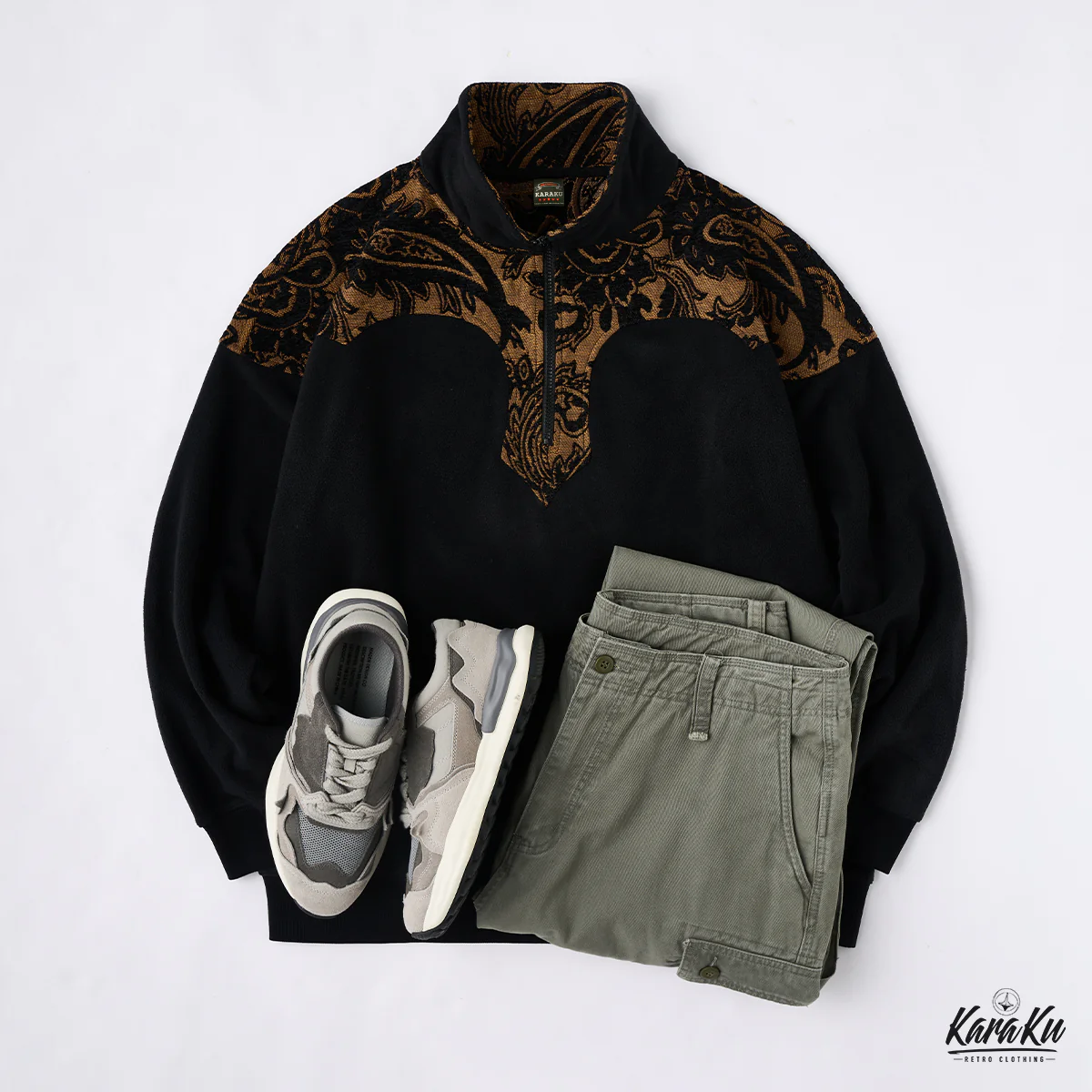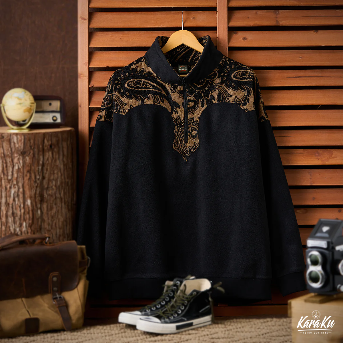 • ペイズリー柄異素材コンビ ウエスタンハーフジップフリースプルオーバー