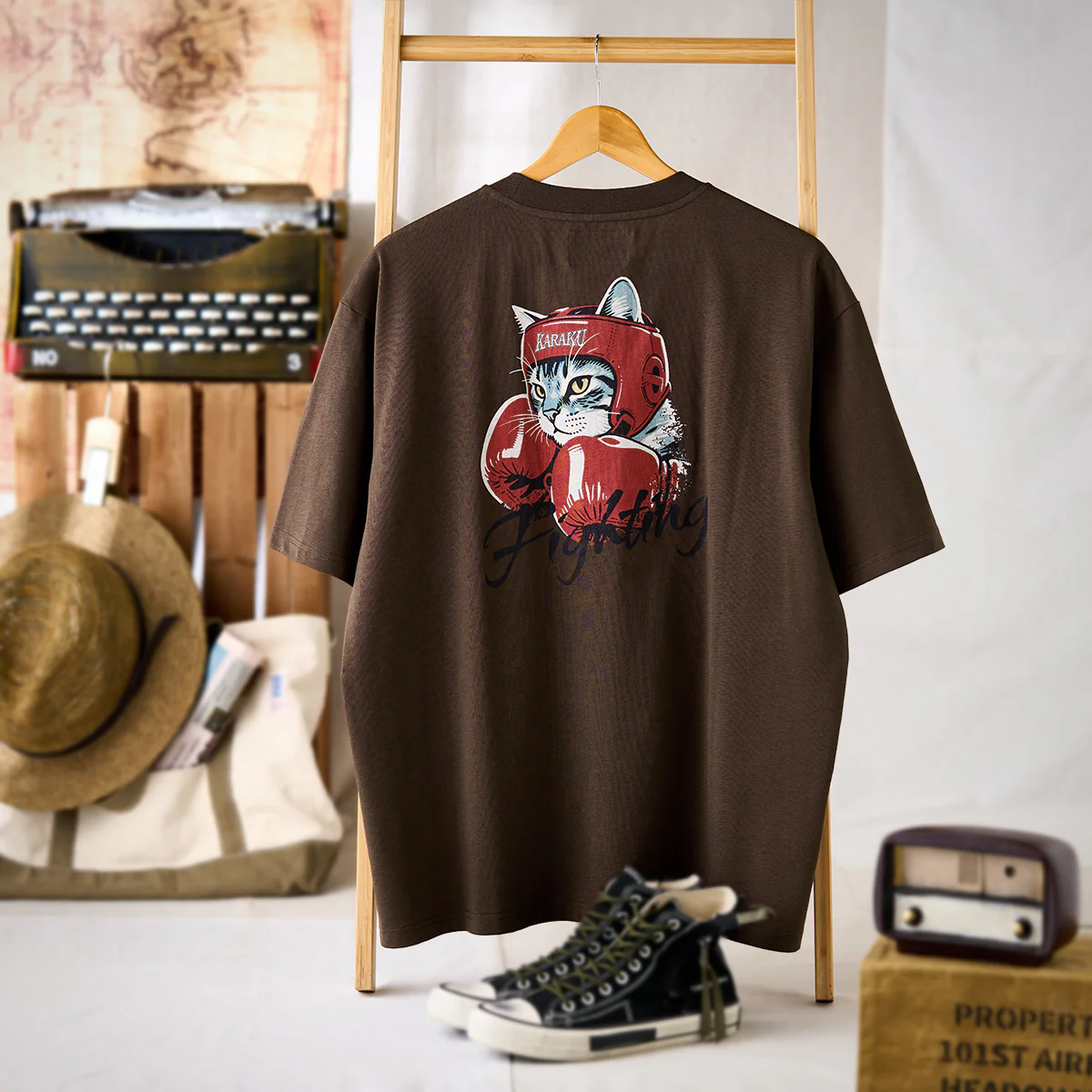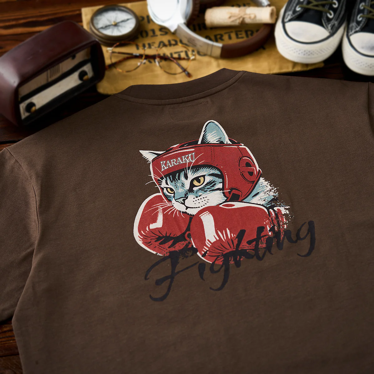 「ボクシングでパンチする猫」デジタルプリントコットンTee