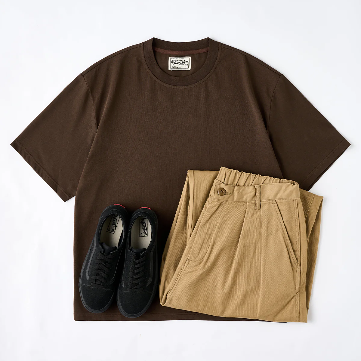 コットンをメイン使用し、その柔らかさと通気性によって、着心地の良さと快適さを提供。また、耐久性も考慮されて、長時間の使用にも耐える頑丈さを備えている。