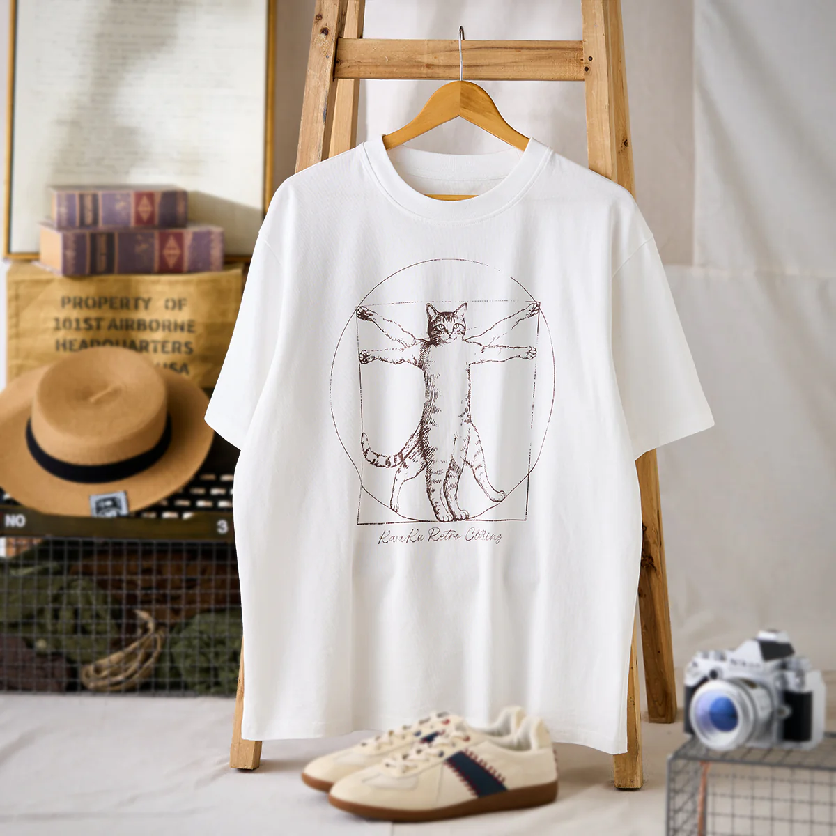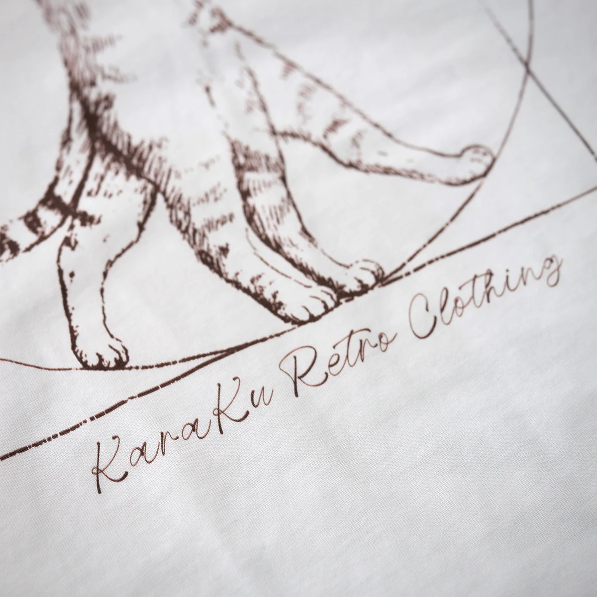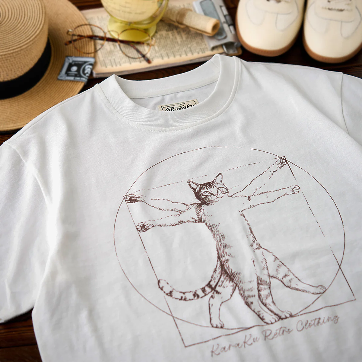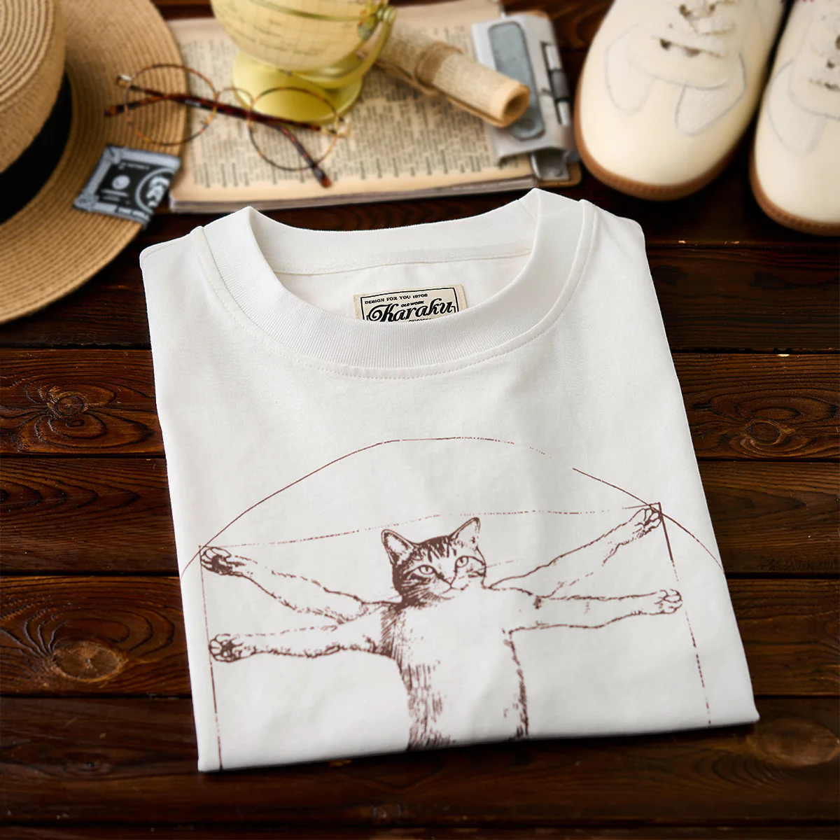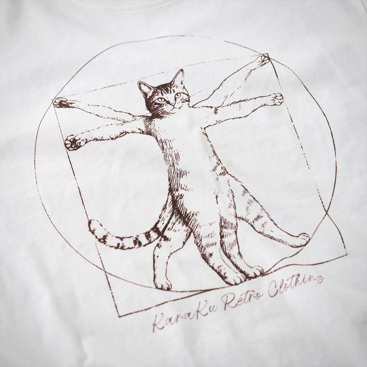 レオナルド・ダ・ヴィンチの有名な「ウィトルウィウス的人体図」をオマージュした、猫をモチーフにしたパロディイラストが描かれている。