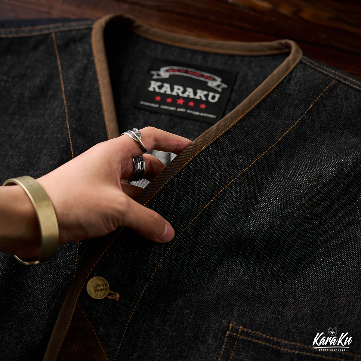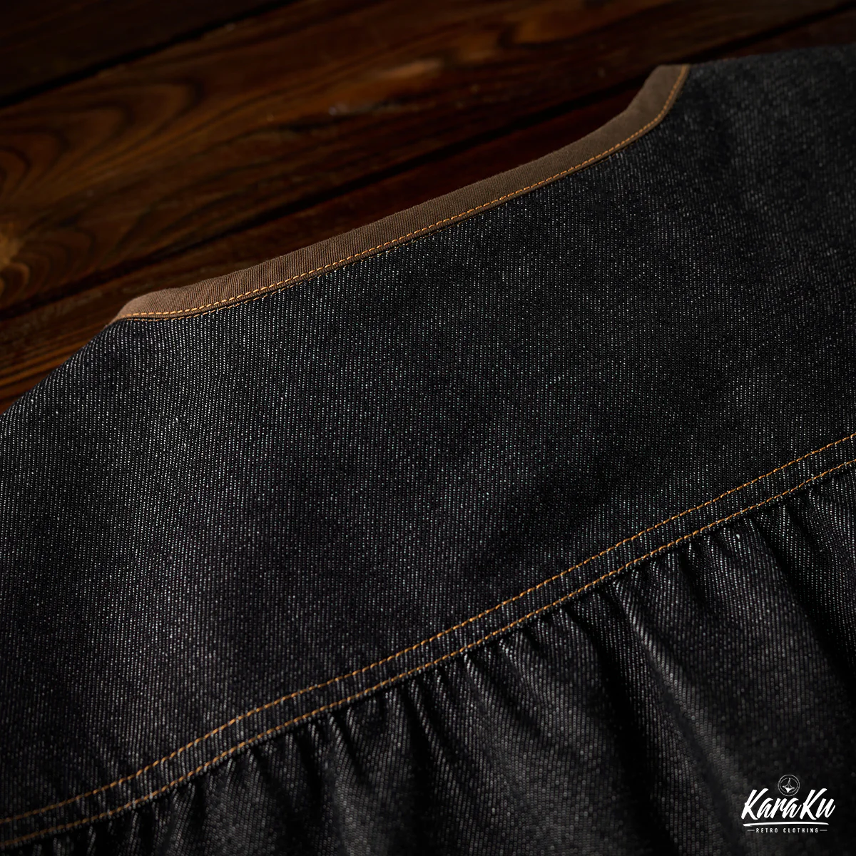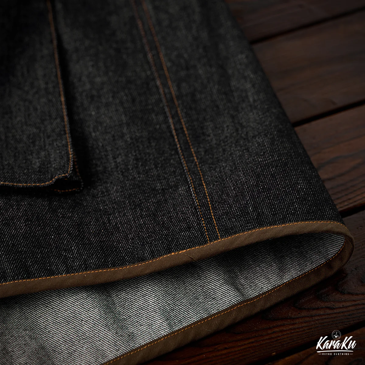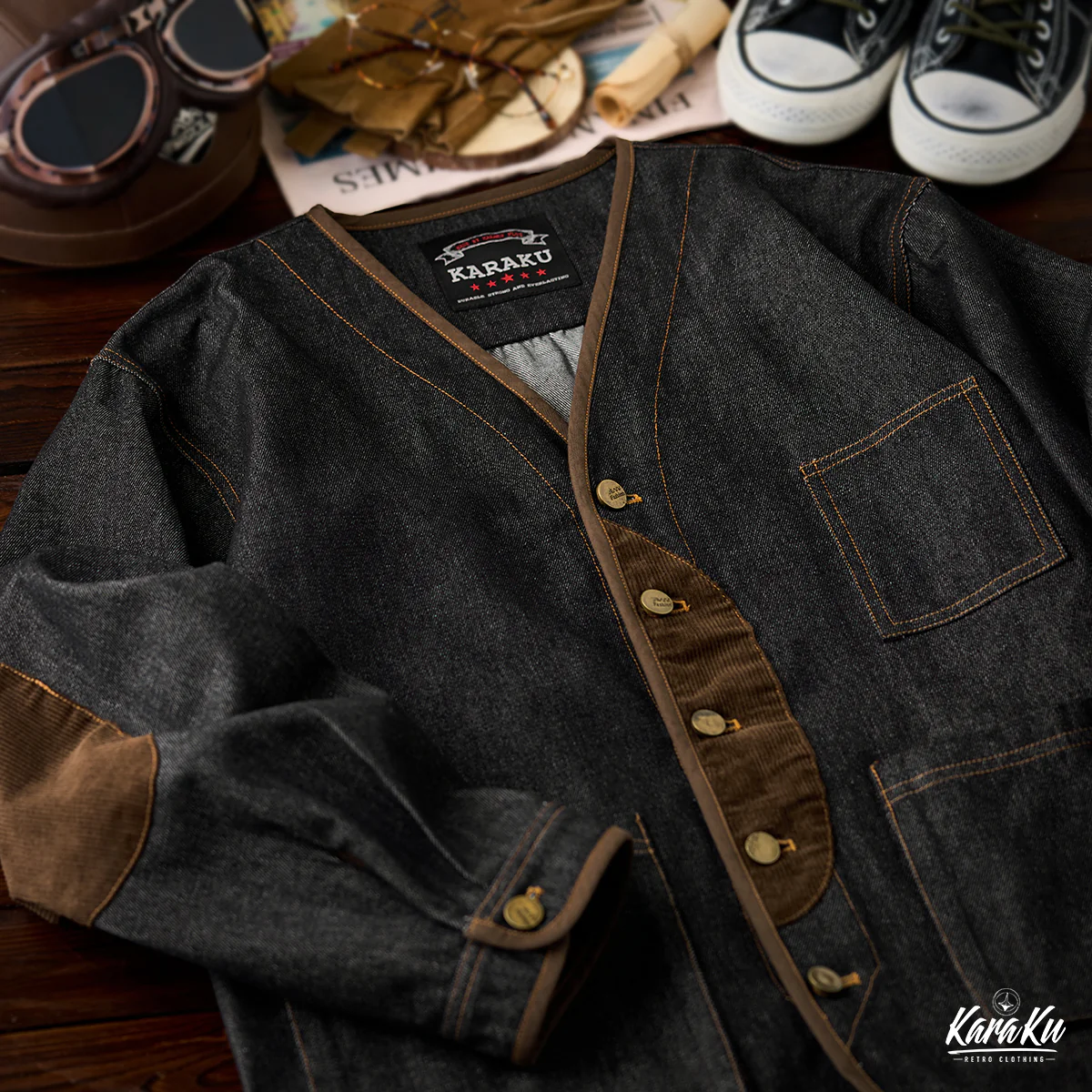 デニム素材をメイン使用し、厚すぎず薄すぎない適度なハリがあり、年間を通じて着用可能。ウォッシュ加工がされ、素材は自然の色落ちとユーズド感で現れ、ビンテージ感も満載。