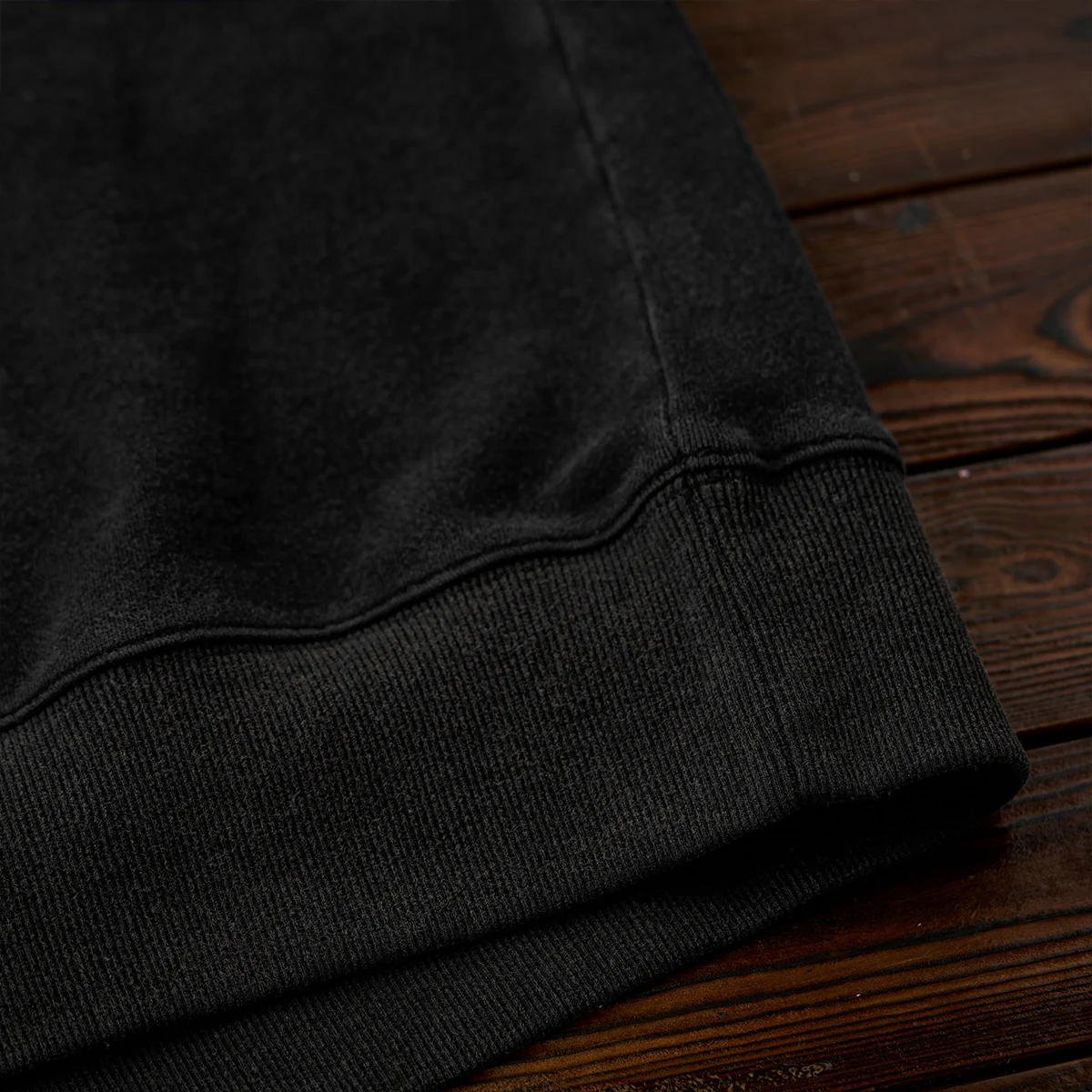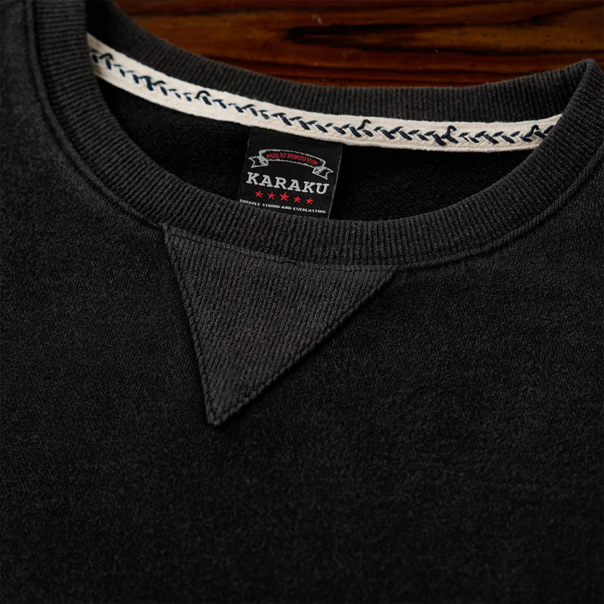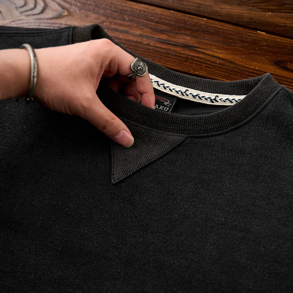 ボディ部分にはスウェット特有の柔らかさとカジュアル感が、袖のデザイン性とバランスを取っています。襟元のV字ステッチがさりげなくスポーティーなアクセントを加えています。裾と袖口にはリブが施されて、フィット感と快適さを両立しています。