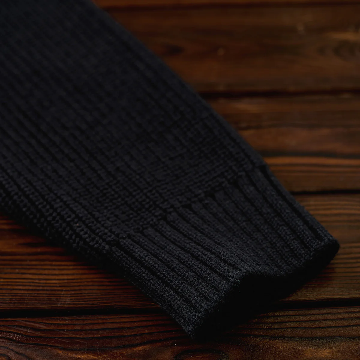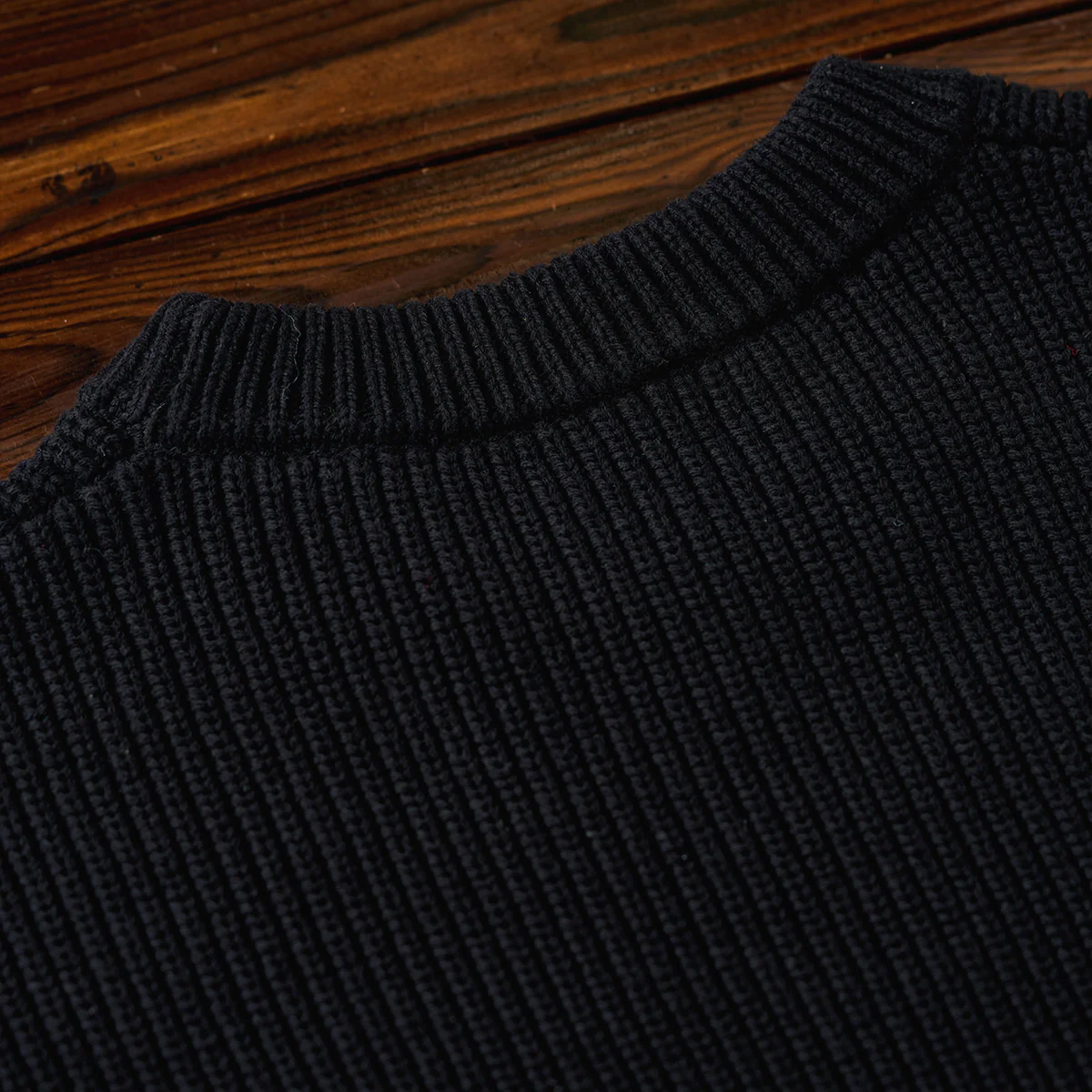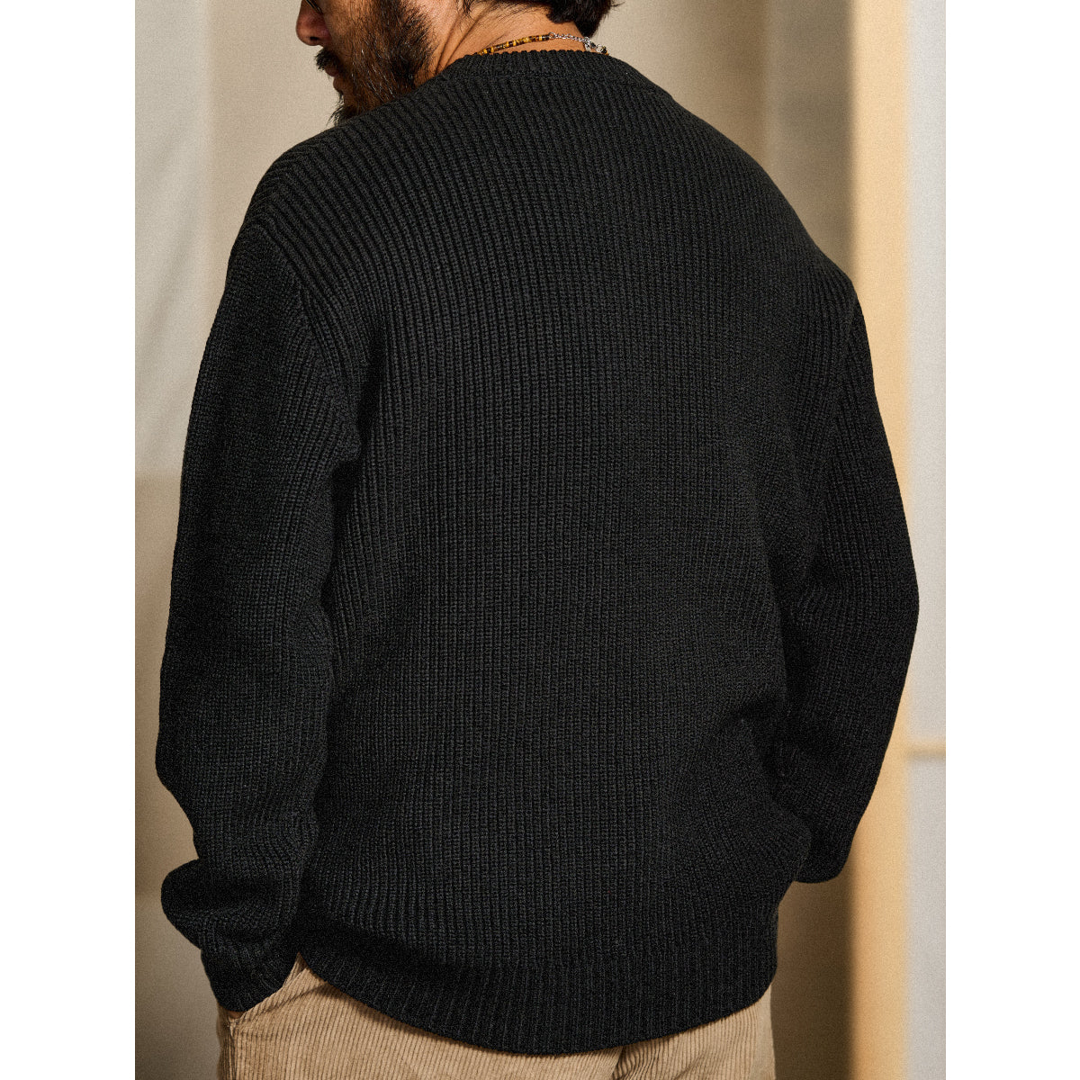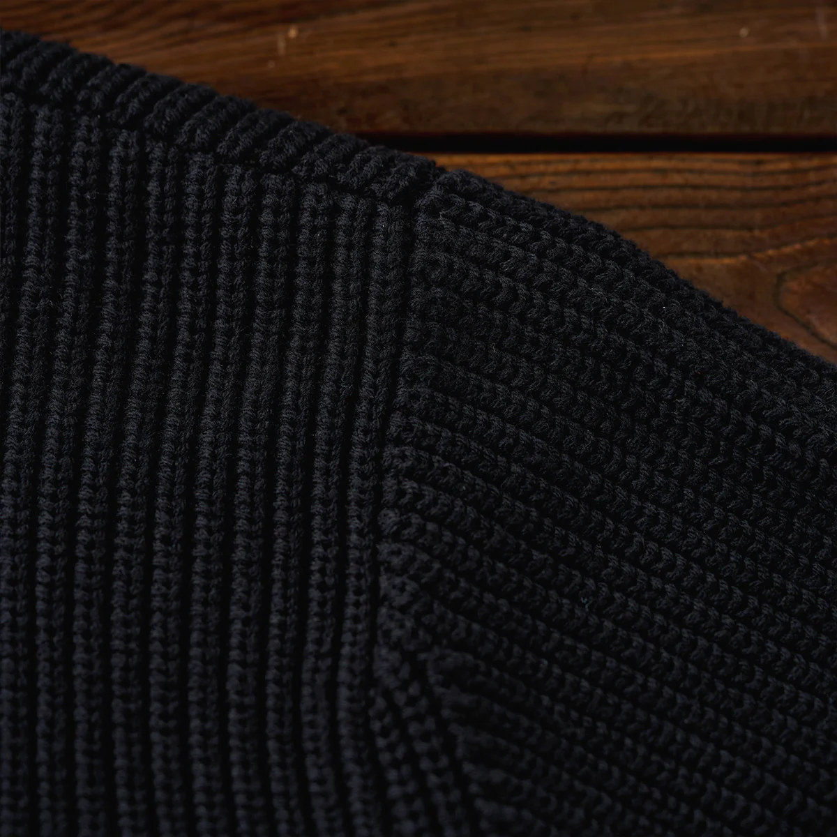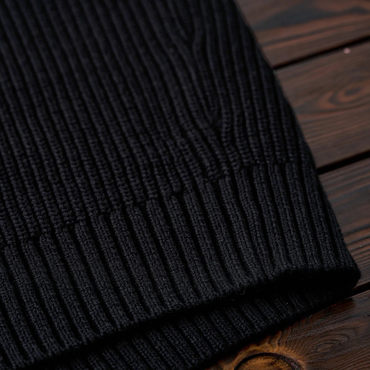 • 「Karaku」ロゴ刺繡入り オールブラックリブ編みニットセーター