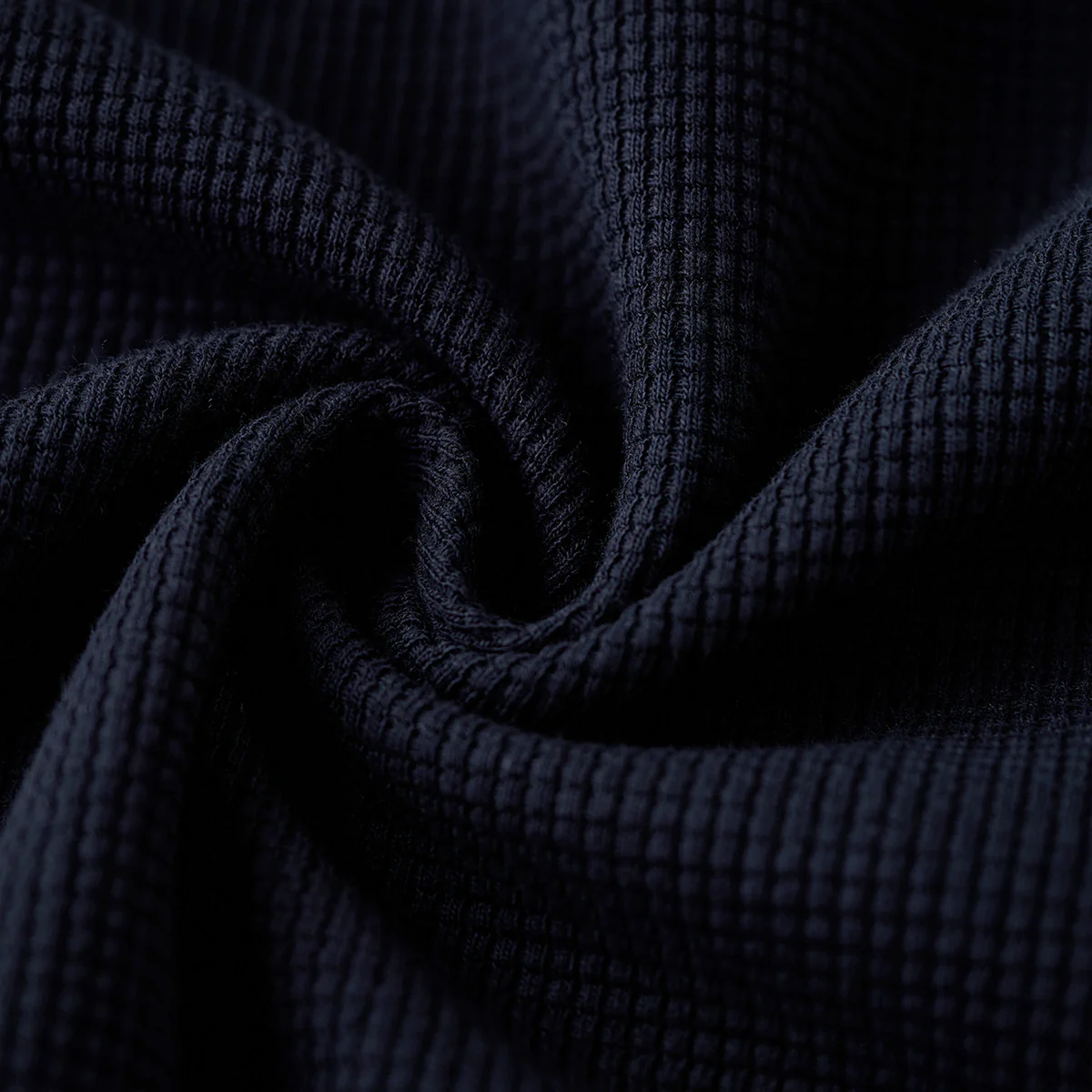 表面に凹凸のあるワッフル生地を採用、独特の立体感と柔らかい手触りを実現し、伸縮性もあり、動きやすさをサポート。性が良く、汗を素早く吸収し乾燥させる性能があるため、快適性が高い。
