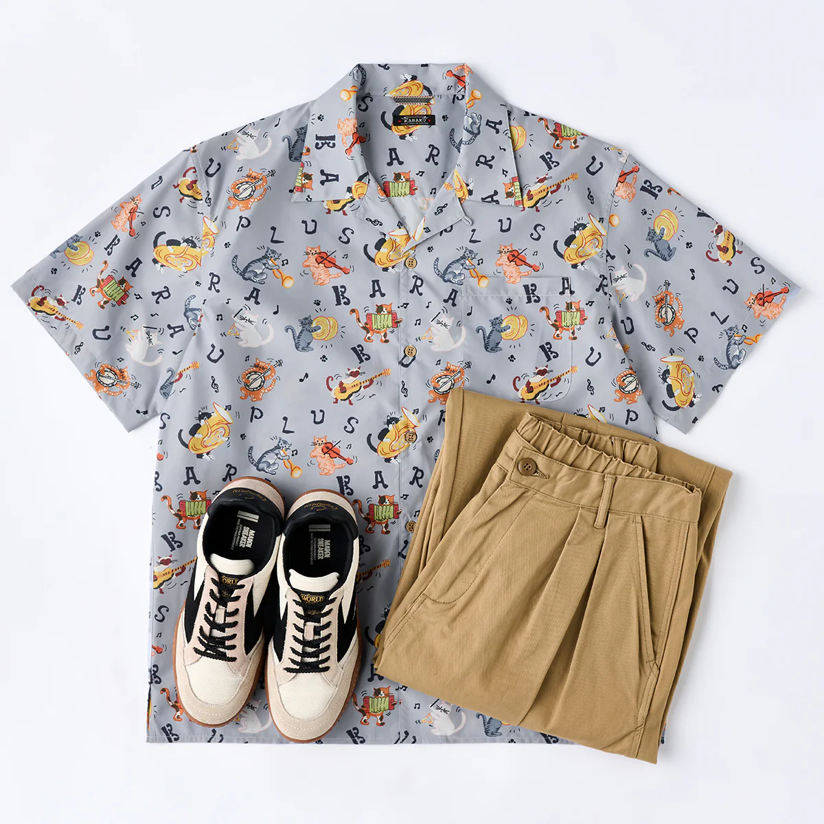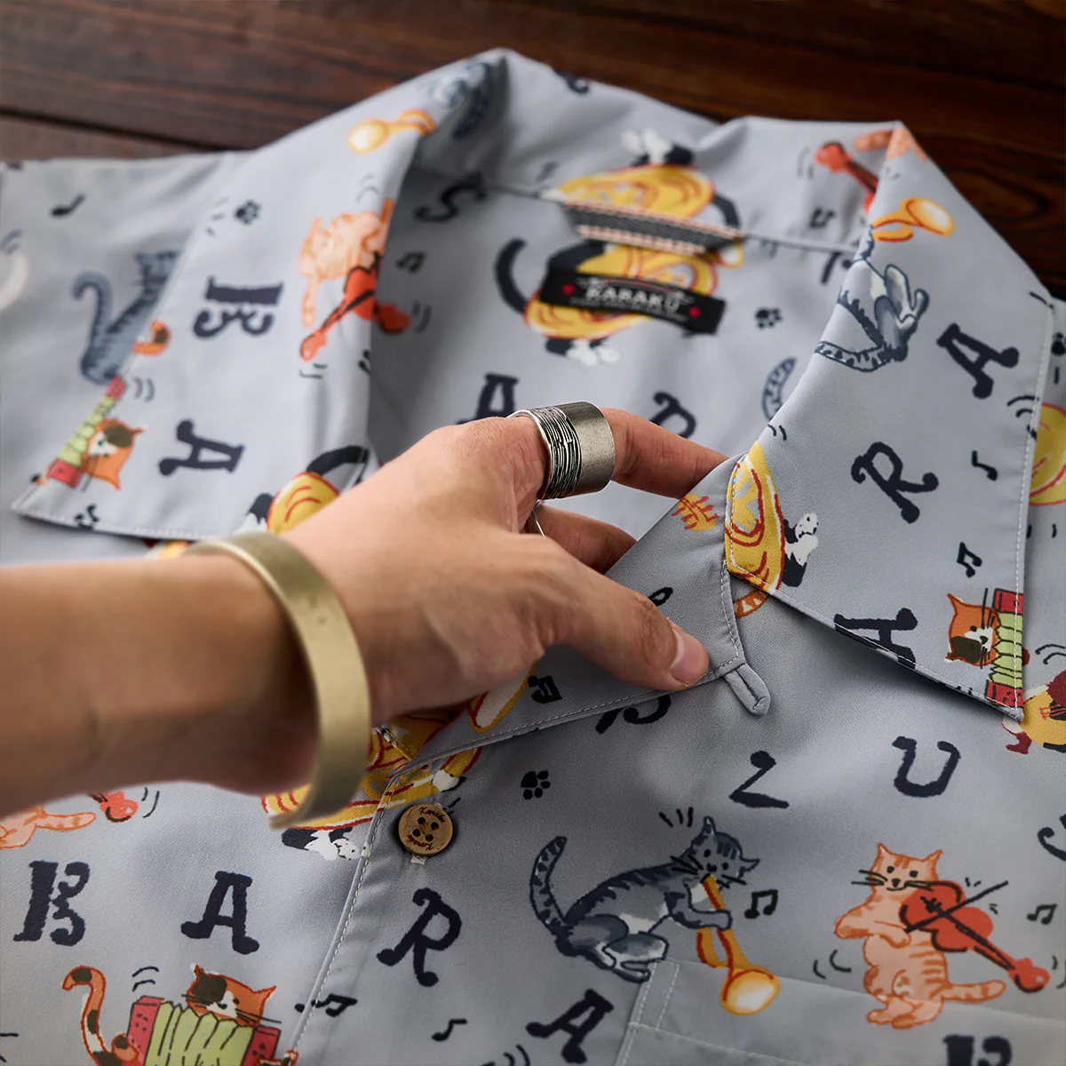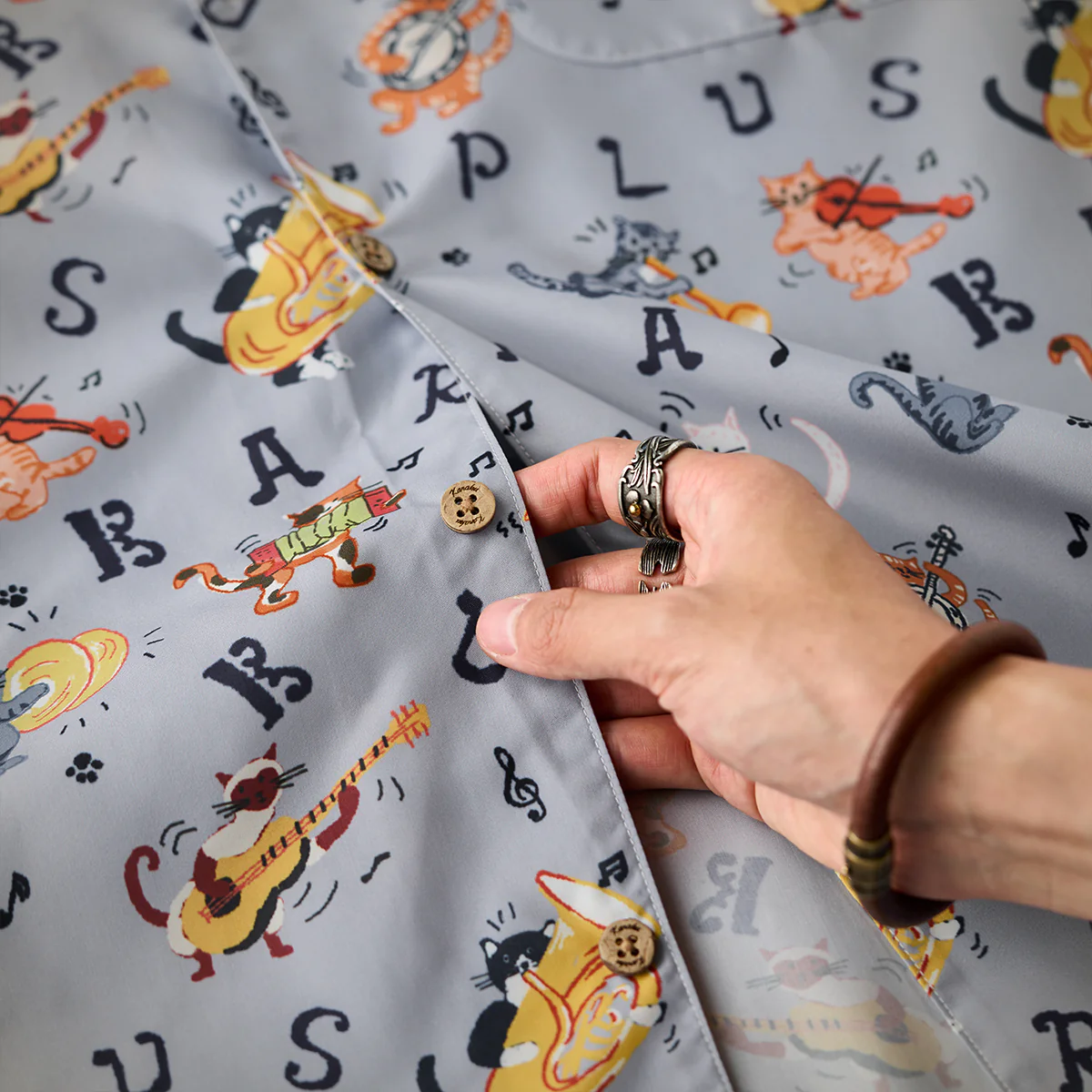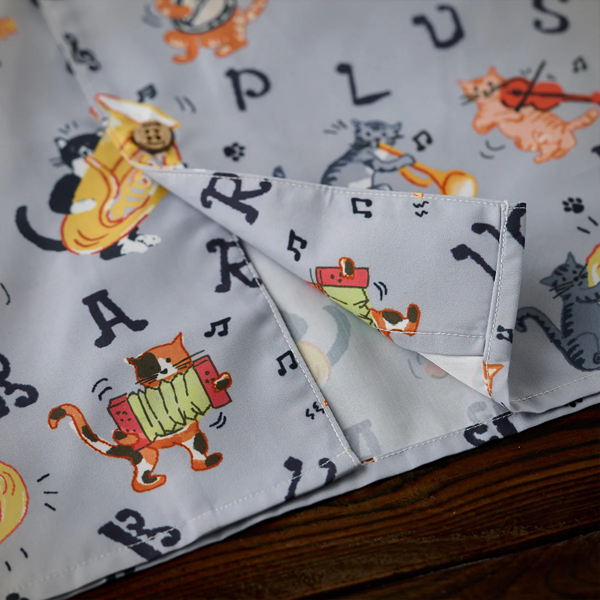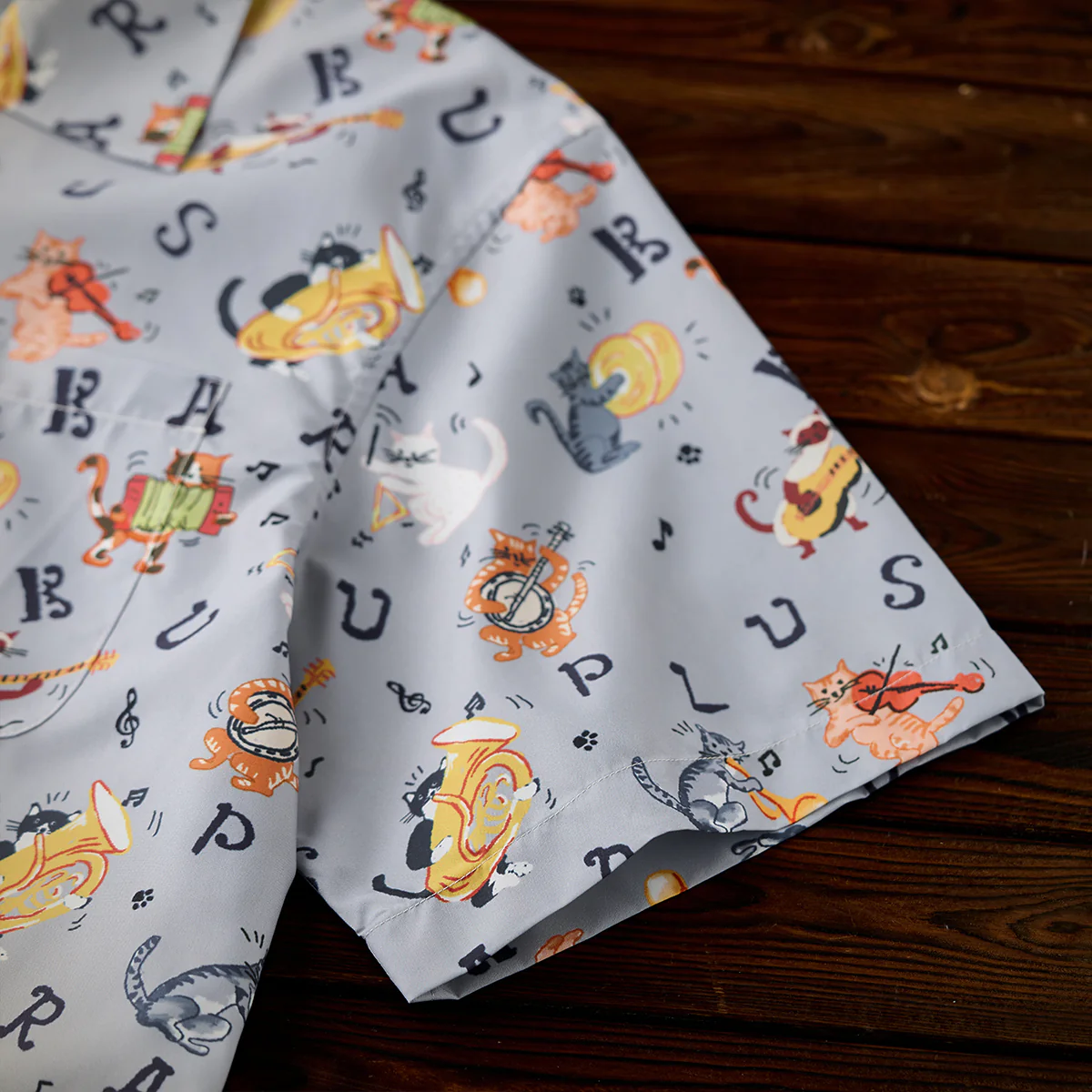 • 「猫ミュージシャンの演奏会」総柄オープンカラーシャツ