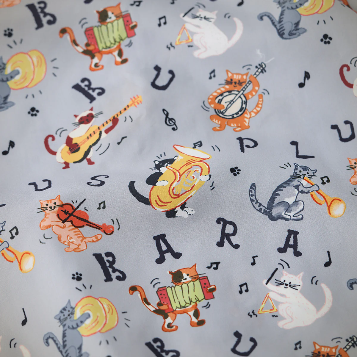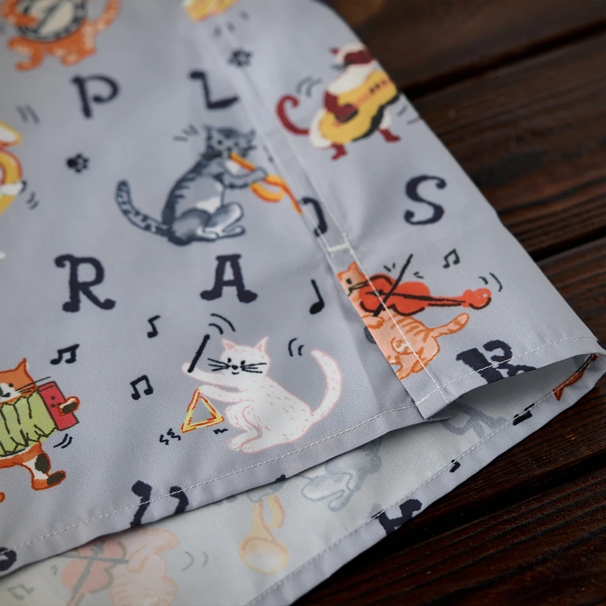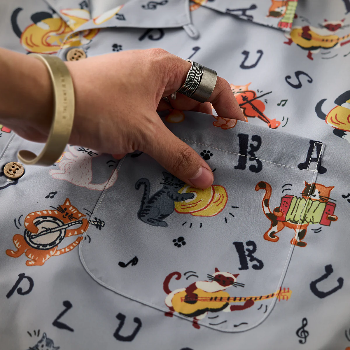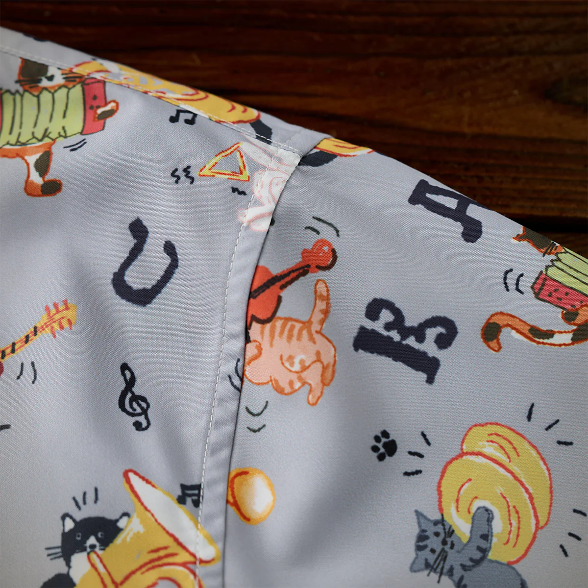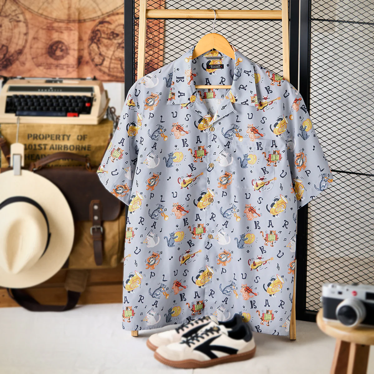 「猫ミュージシャンの演奏会」総柄オープンカラーシャツ