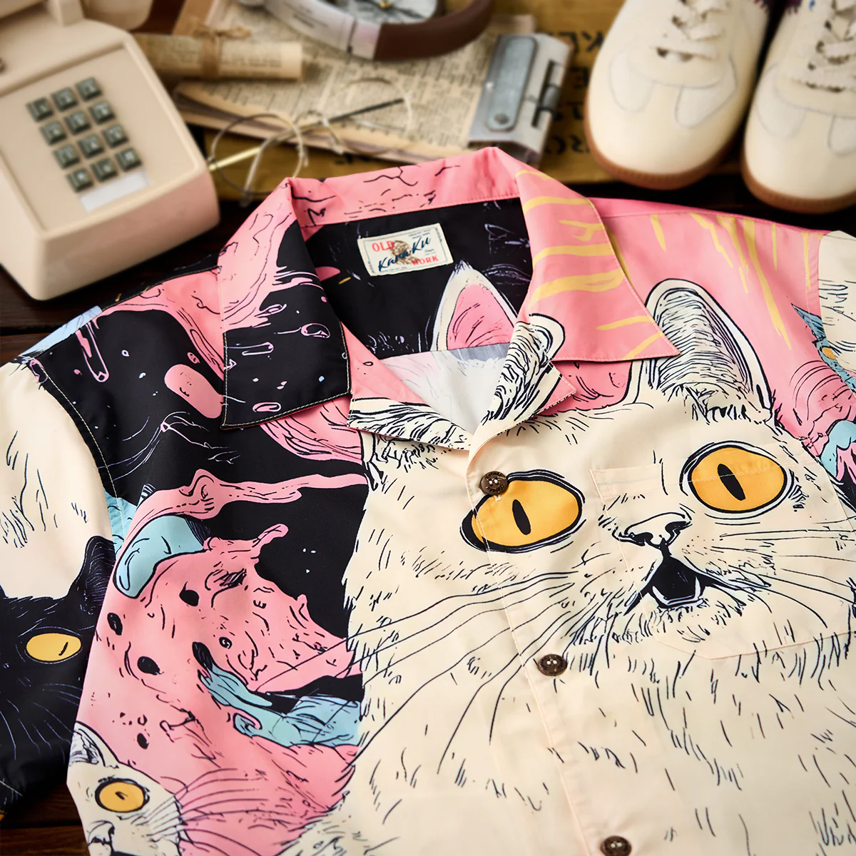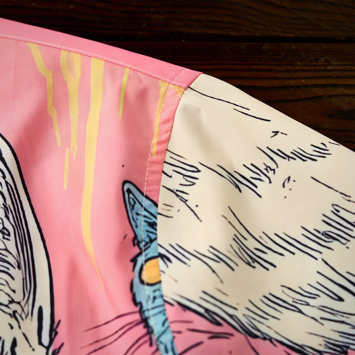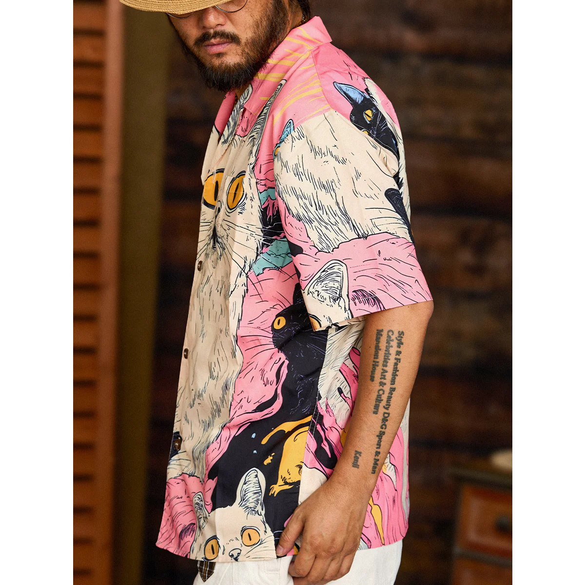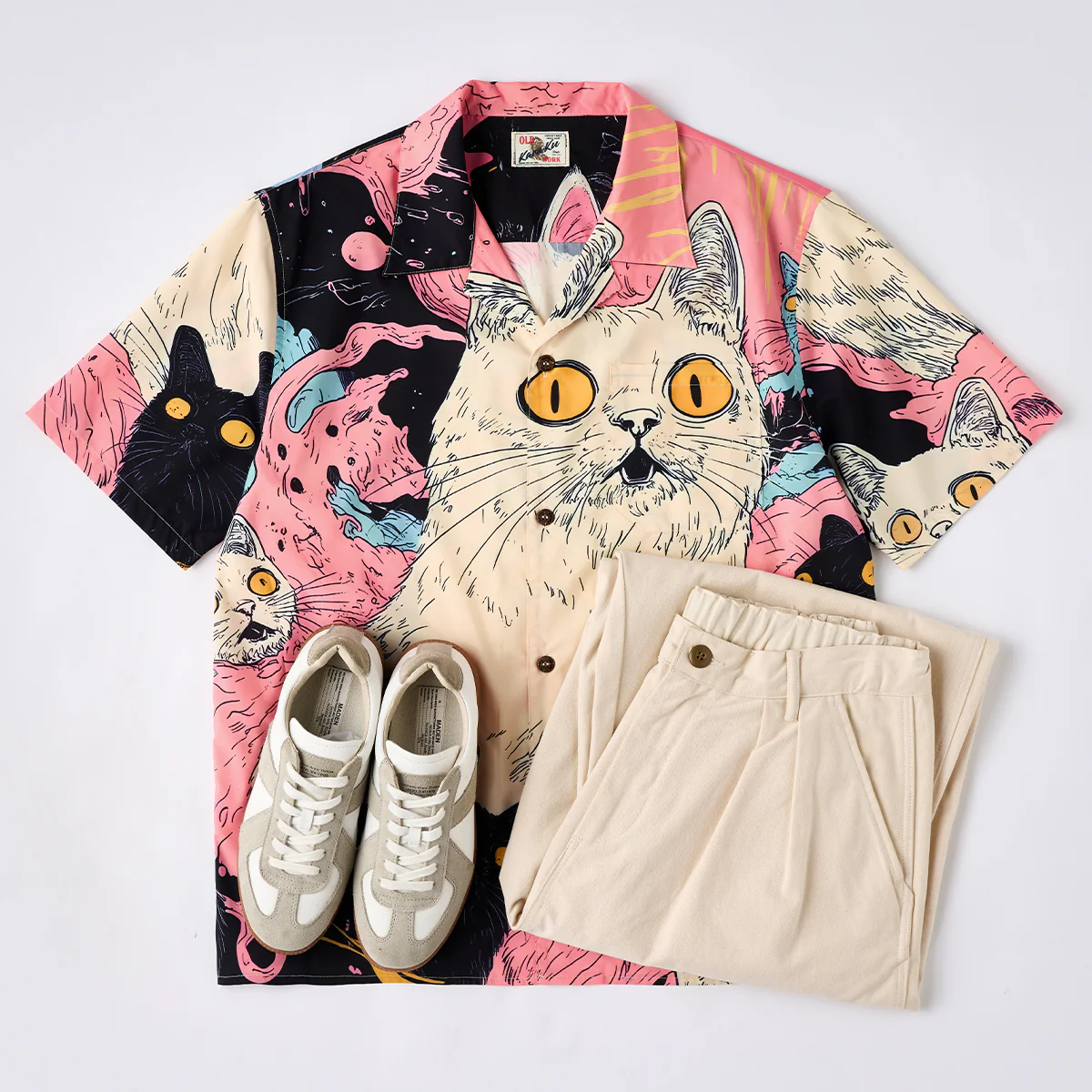 春の軽やかな気分にぴったりな、テンセルライクのアロハシャツ。ひだまりのようなピンクに包まれて、猫は今日も夢を見る。空を見上げて雲に乗る。前と後ろ、それぞれに描かれたストーリーが、ひとつの空想宇宙をつくりあげる。フロントとバックに描かれたグラフィックは、それぞれ異なる物語を紡ぎながらも、全体として調和のとれた仕上がりに。ふんわりとしたピンクを基調にしたカラーリングが、春らしい柔らかな印象を演出します。一枚で主役になる、遊び心と季節感を兼ね備えた一着です。