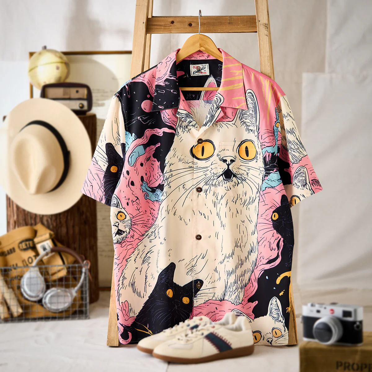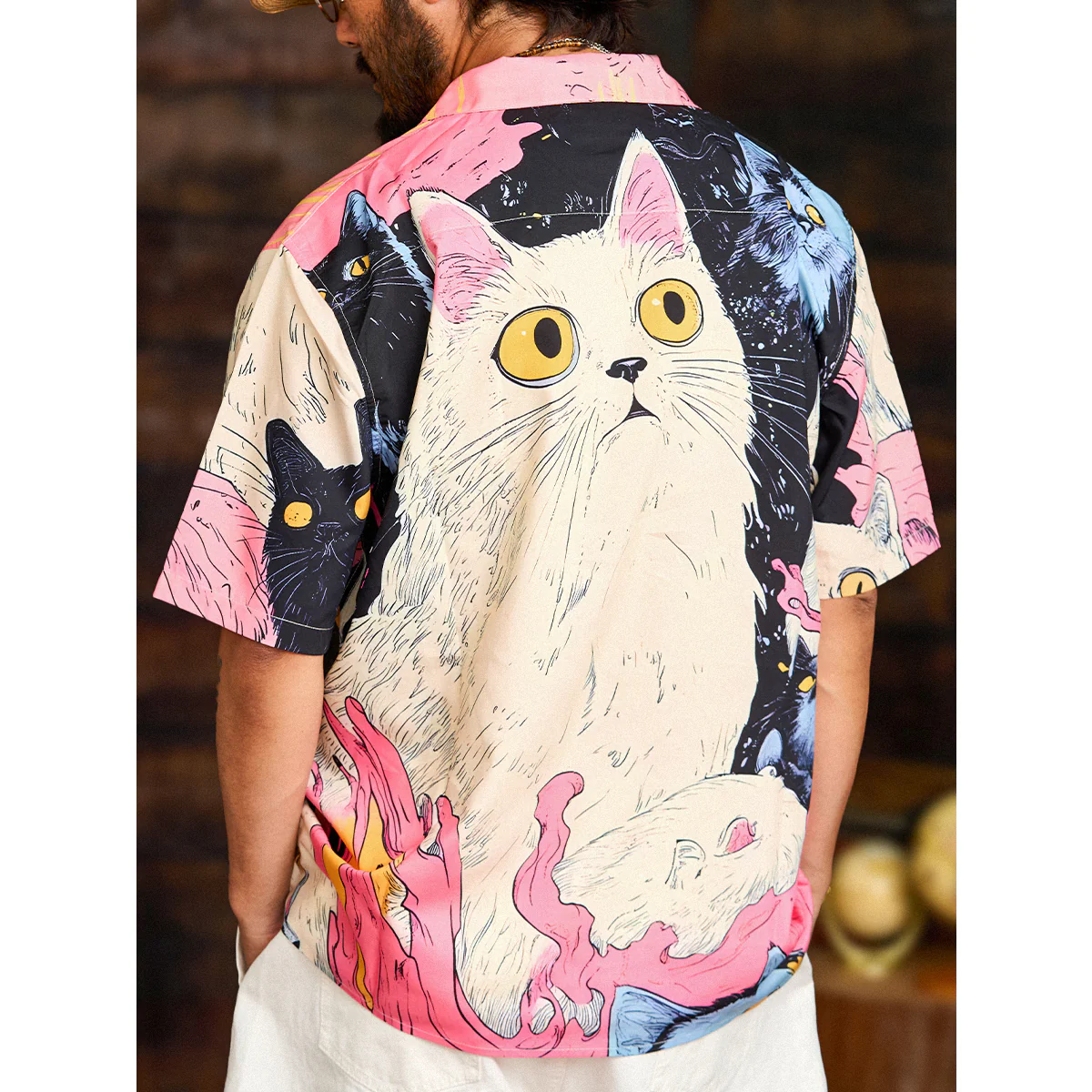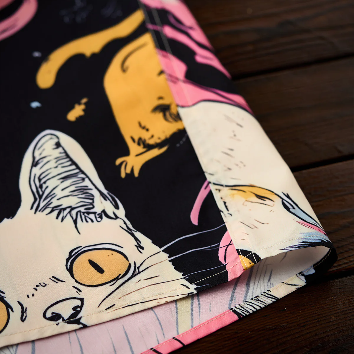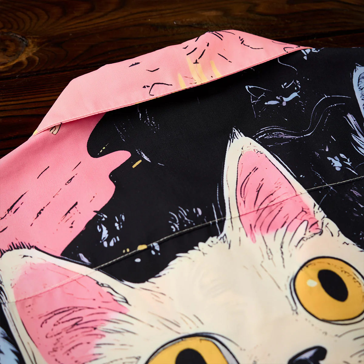 春の軽やかな気分にぴったりな、テンセルライクのアロハシャツ。ひだまりのようなピンクに包まれて、猫は今日も夢を見る。空を見上げて雲に乗る。前と後ろ、それぞれに描かれたストーリーが、ひとつの空想宇宙をつくりあげる。フロントとバックに描かれたグラフィックは、それぞれ異なる物語を紡ぎながらも、全体として調和のとれた仕上がりに。ふんわりとしたピンクを基調にしたカラーリングが、春らしい柔らかな印象を演出します。一枚で主役になる、遊び心と季節感を兼ね備えた一着です。