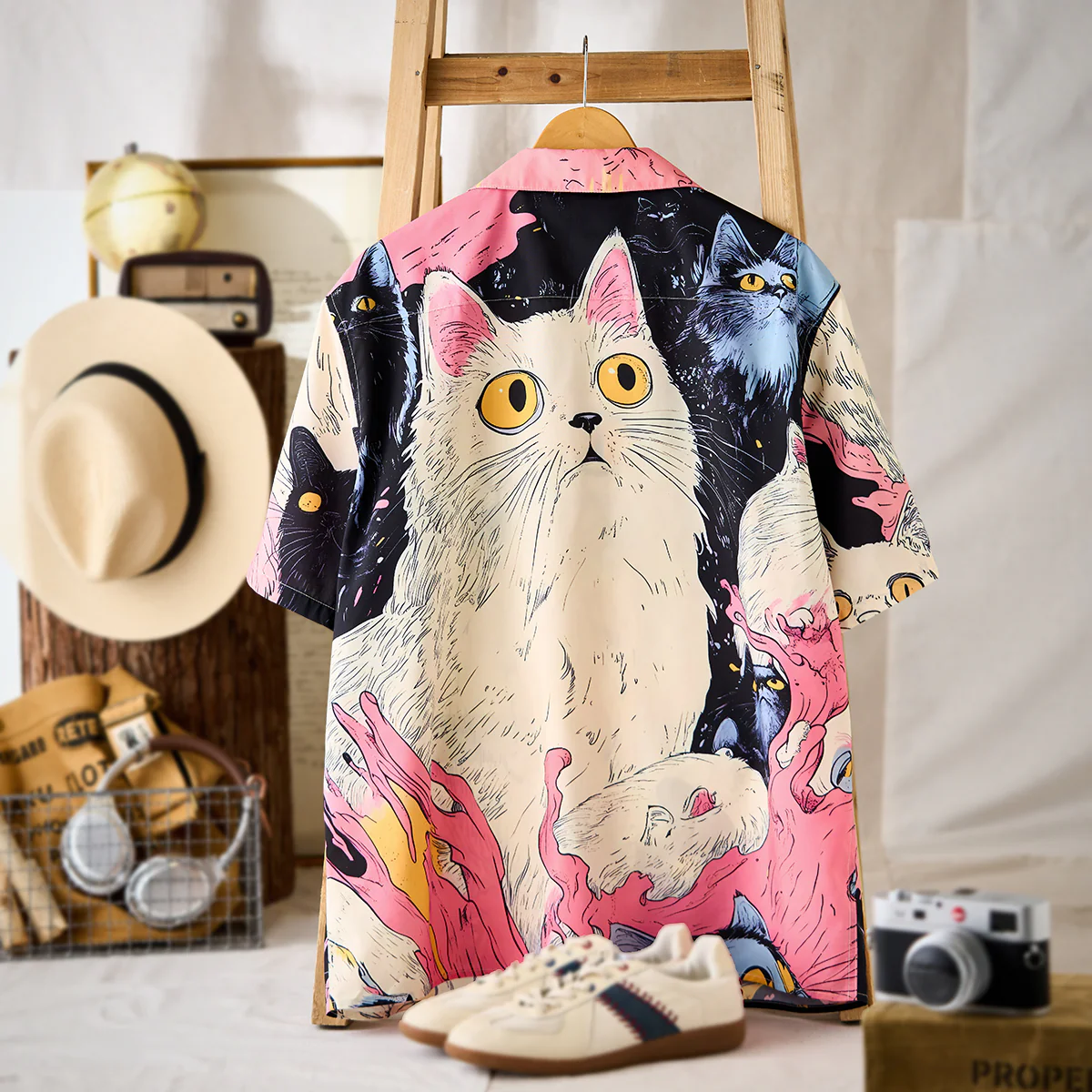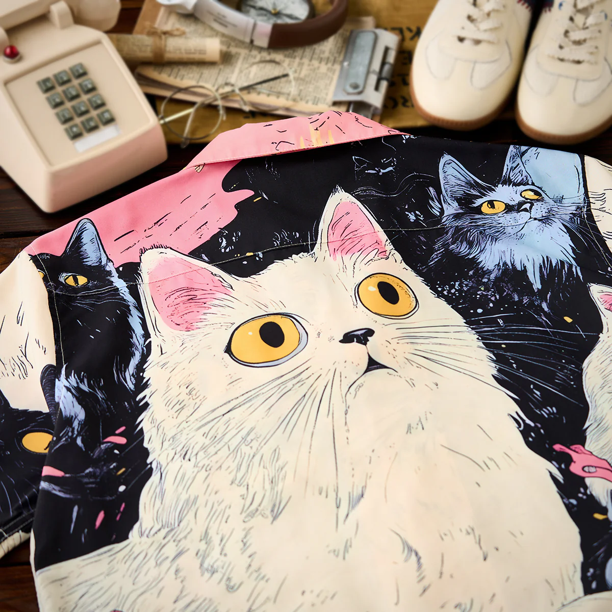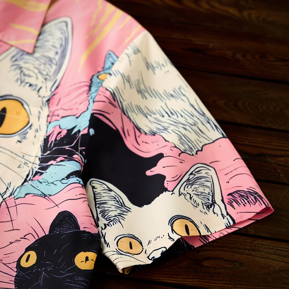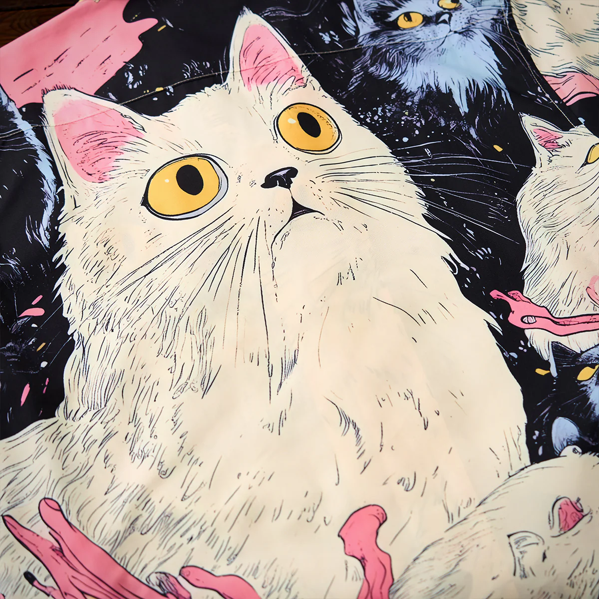 春の軽やかな気分にぴったりな、テンセルライクのアロハシャツ。ひだまりのようなピンクに包まれて、猫は今日も夢を見る。空を見上げて雲に乗る。前と後ろ、それぞれに描かれたストーリーが、ひとつの空想宇宙をつくりあげる。フロントとバックに描かれたグラフィックは、それぞれ異なる物語を紡ぎながらも、全体として調和のとれた仕上がりに。ふんわりとしたピンクを基調にしたカラーリングが、春らしい柔らかな印象を演出します。一枚で主役になる、遊び心と季節感を兼ね備えた一着です。