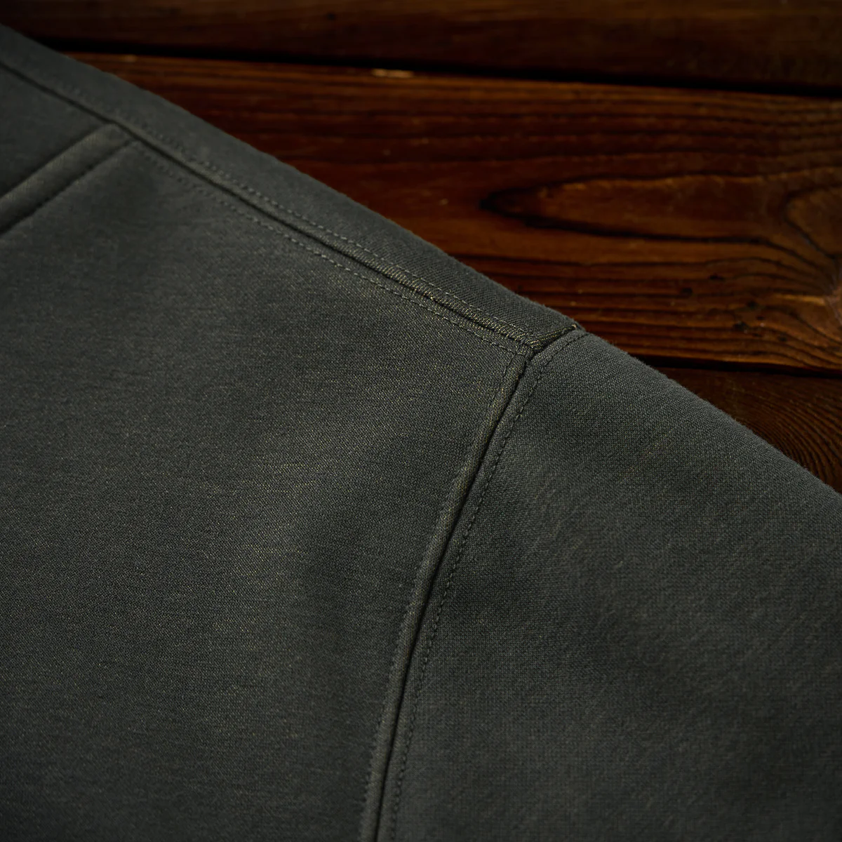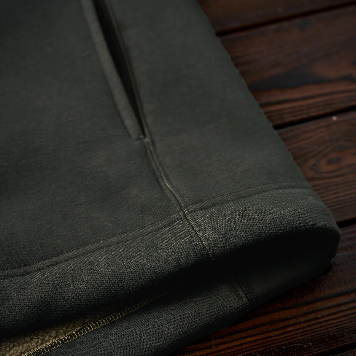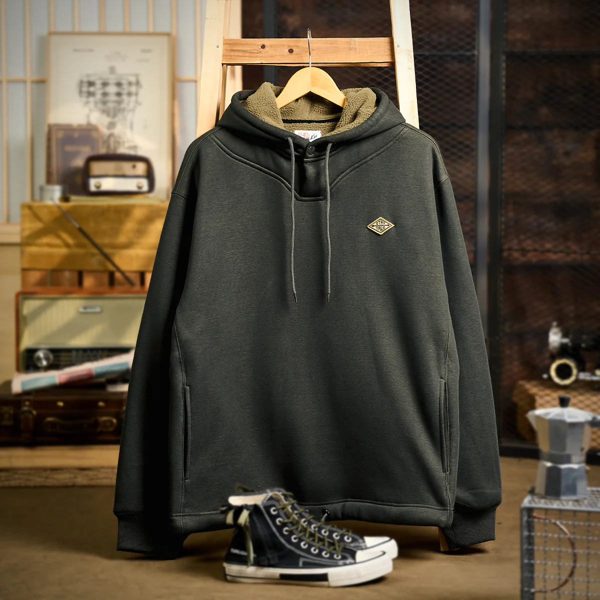 フードがあることで、よりカジュアルな印象を強調し、特にアウトドアやアクティブなシーンでの利用に適す。フード部分にあるドローストリングで、フィット感を調整できるため、風の強い日でも安心。