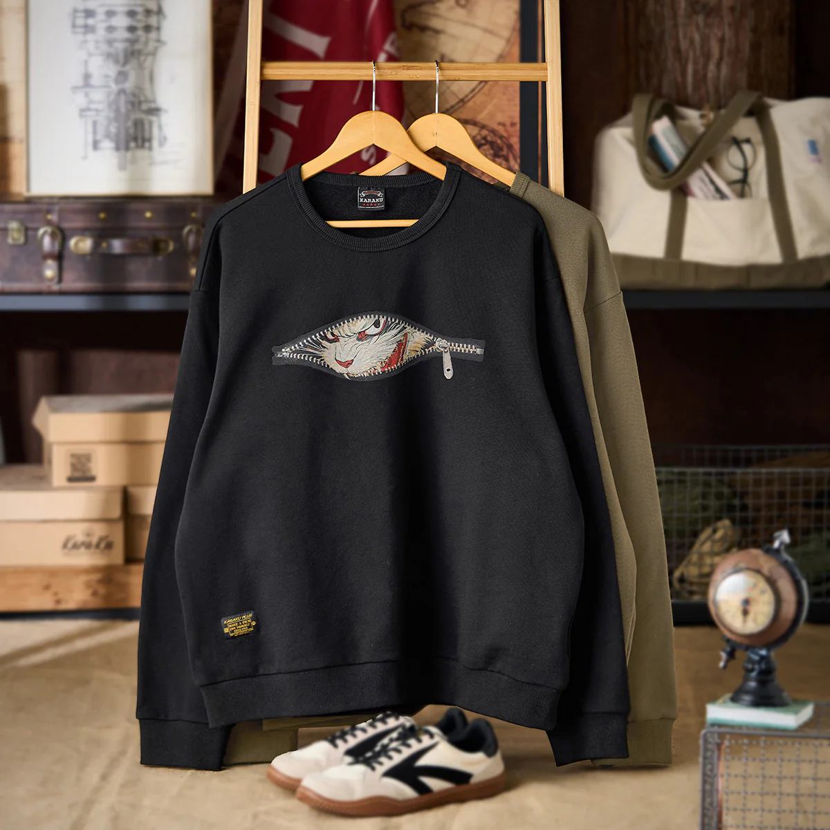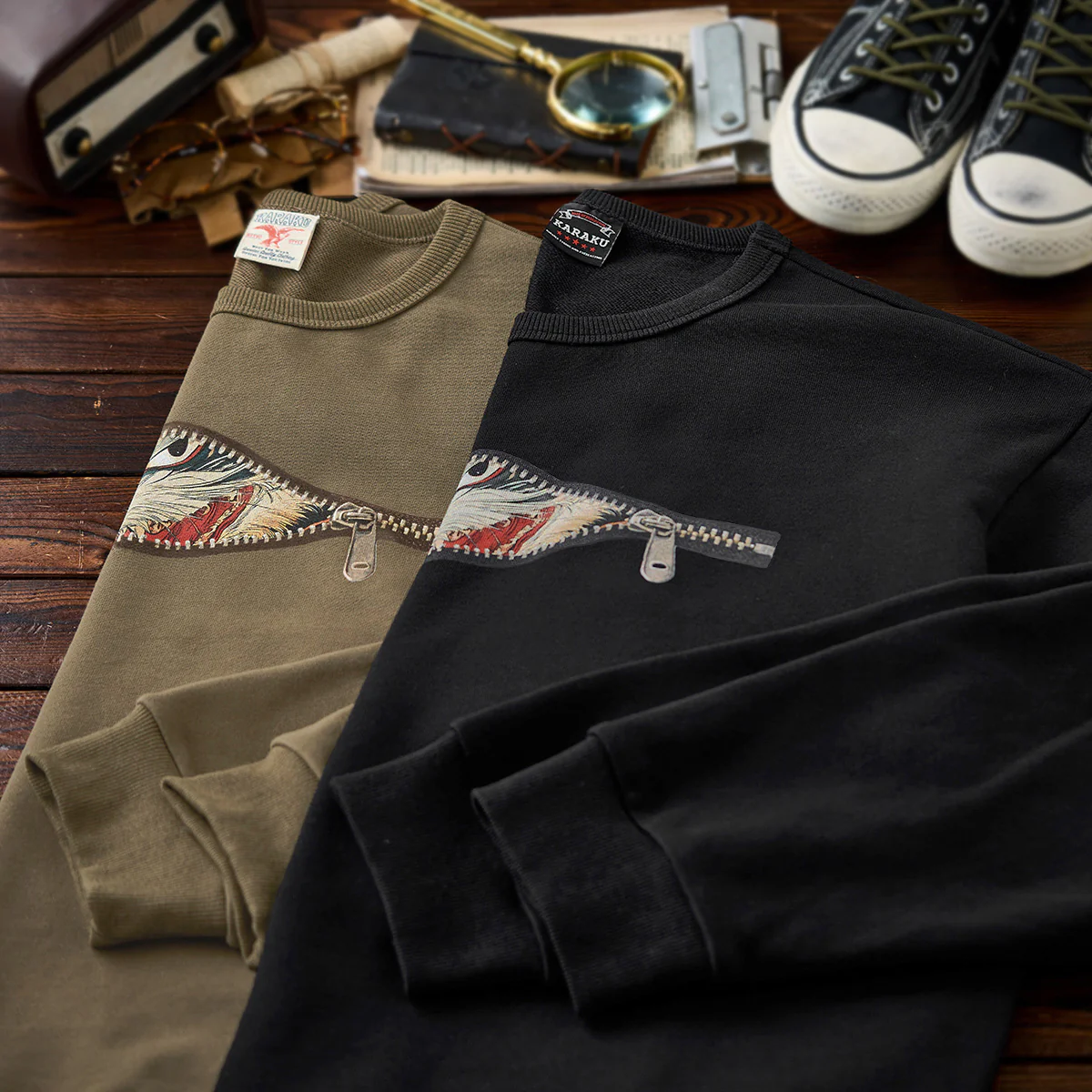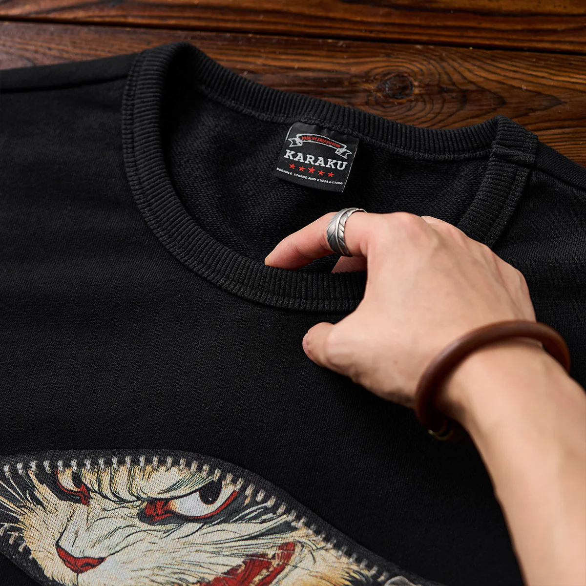 • 「クロスジップの隙間から覗く化け猫」浮世絵風プリント入りスウェット