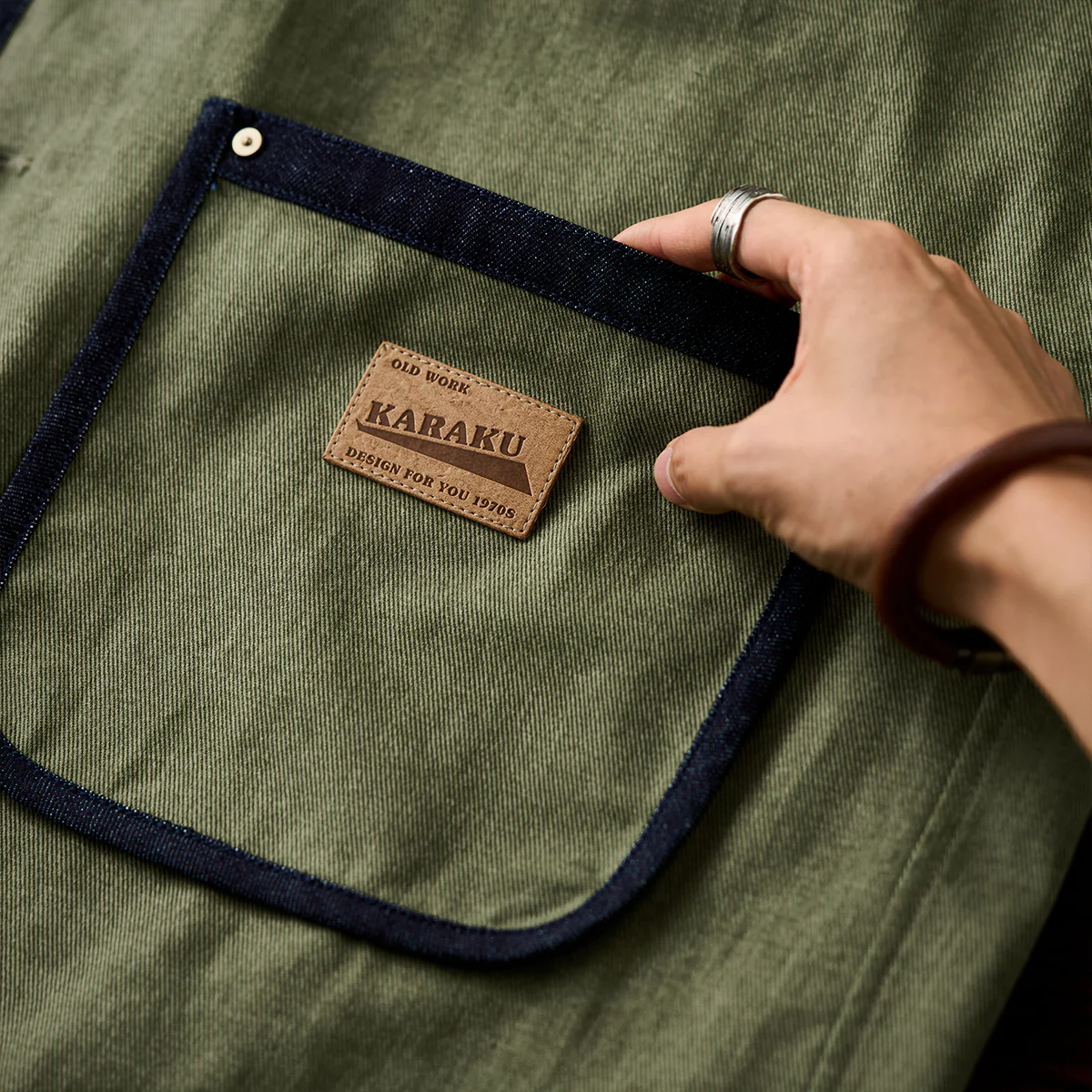 フロントに配置された2つの大きなパッチポケットは、デザインの中心的な要素。深さと幅が十分に確保されて、携帯電話や財布などの小物を収納可能。