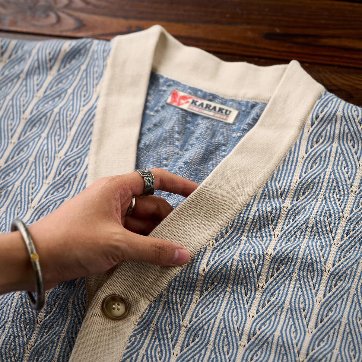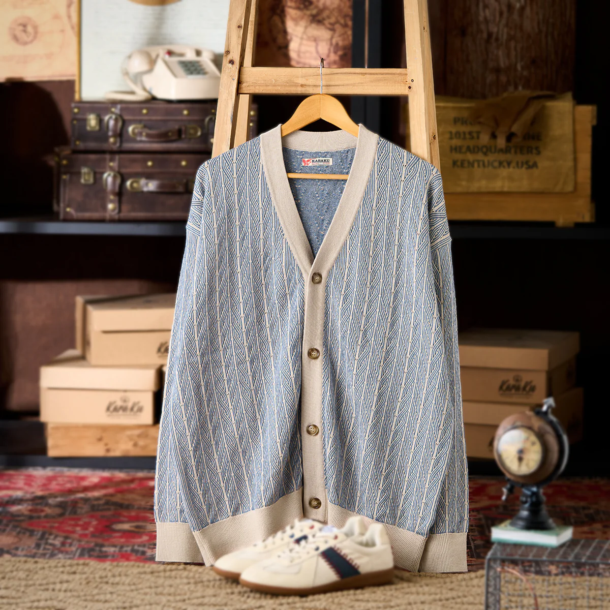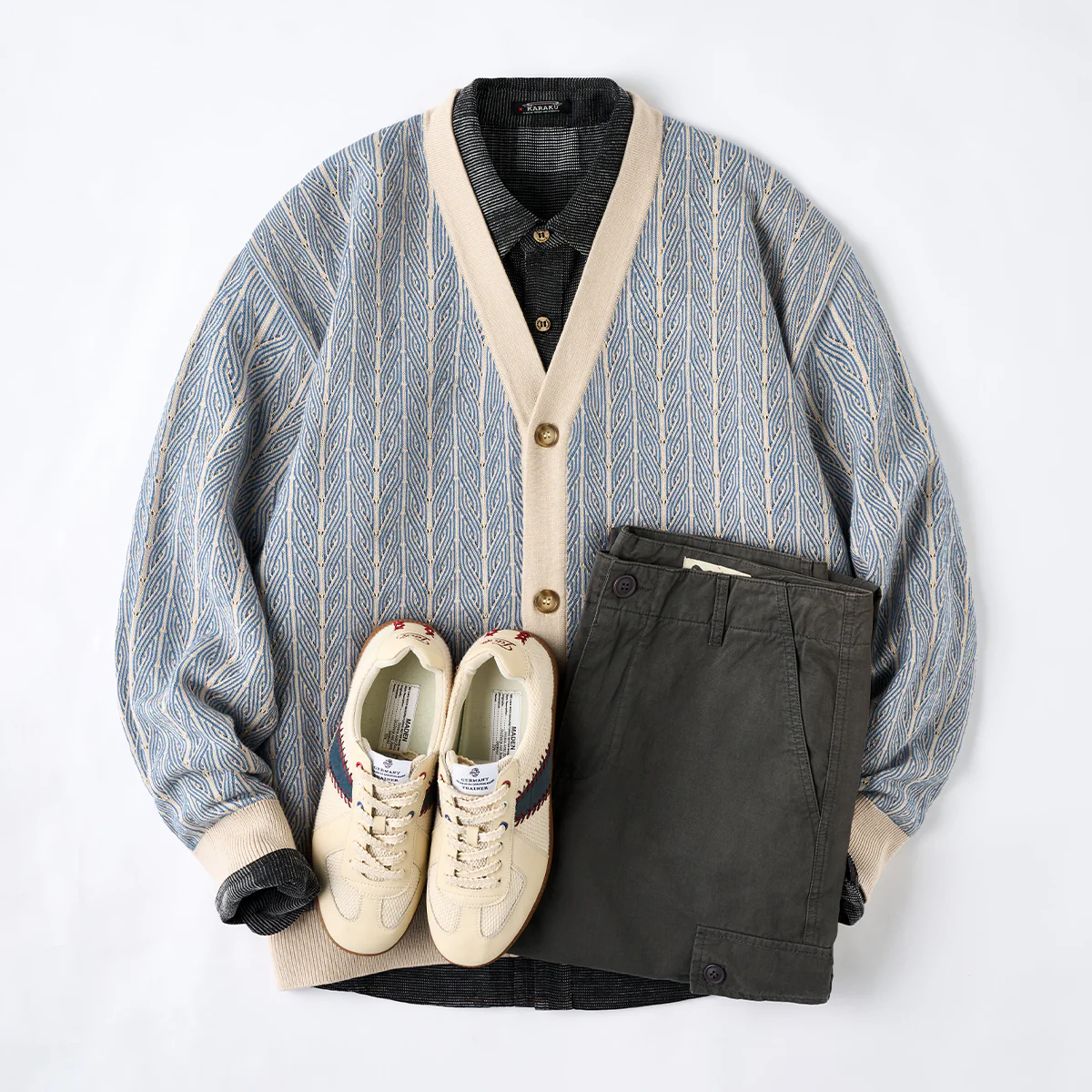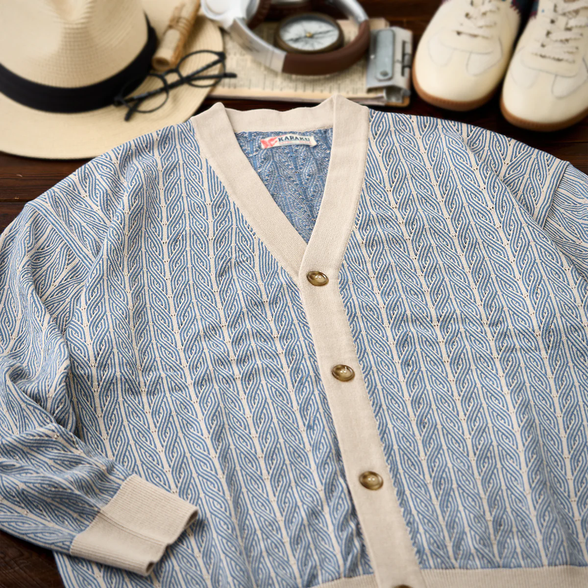 • ケーブル柄ジャカード織りVネックニットカーディガン
