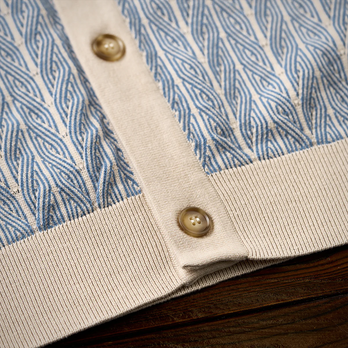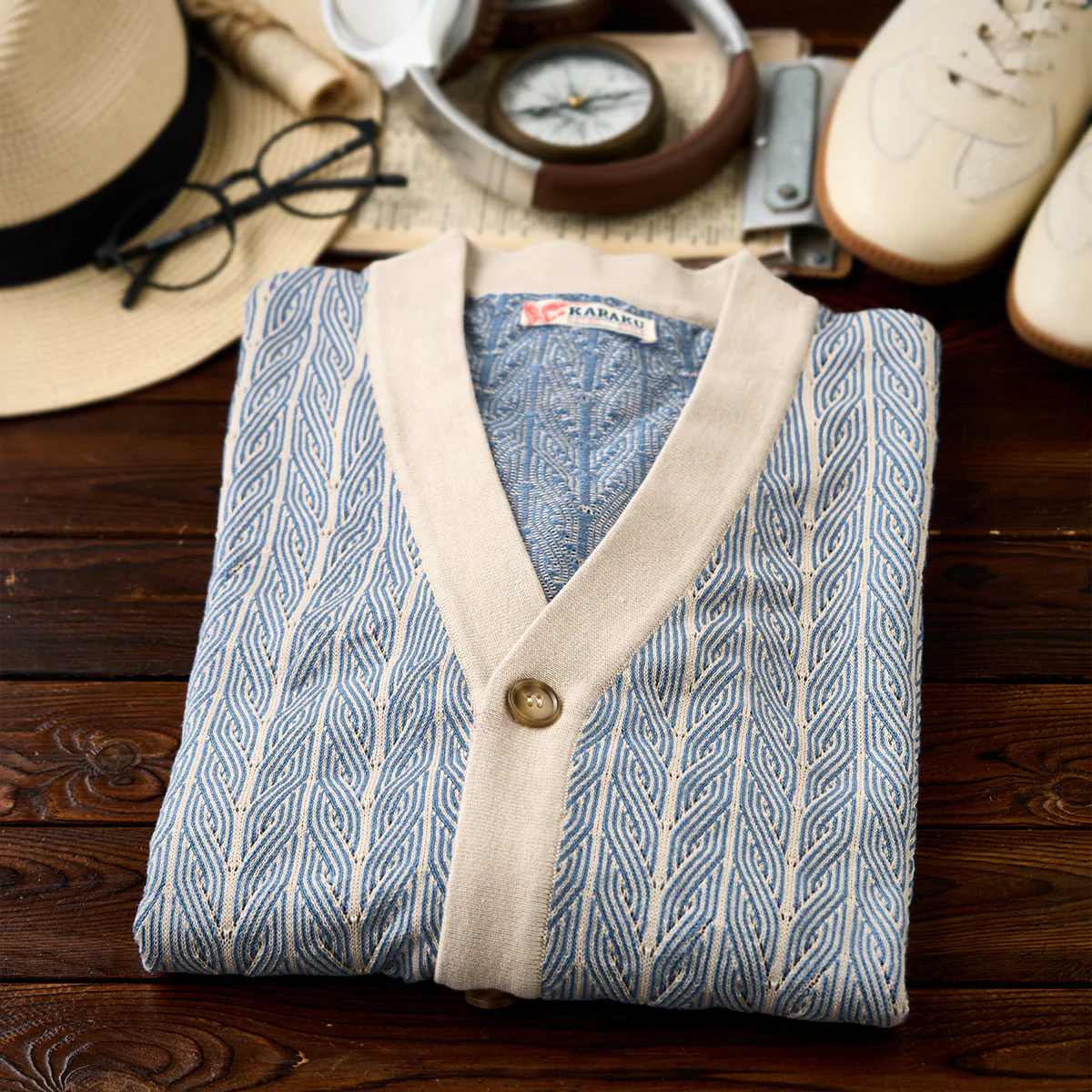 クラシックなケーブル柄をジャカード織りで表現したニットカーディガンです。厚みのある編地がもたらす立体感と、繊細な編み模様が見事に調和し、上品かつ温かみのあるデザインに仕上げました。ソフトな肌触りと優れた保温性で、肌寒い季節にぴったりの一着です。裾や袖口にはリブ編みを採用し、フィット感と着心地の良さを追求しています。シンプルなデザインながらも存在感があり、カジュアルからフォーマルまで幅広いスタイリングに対応します。