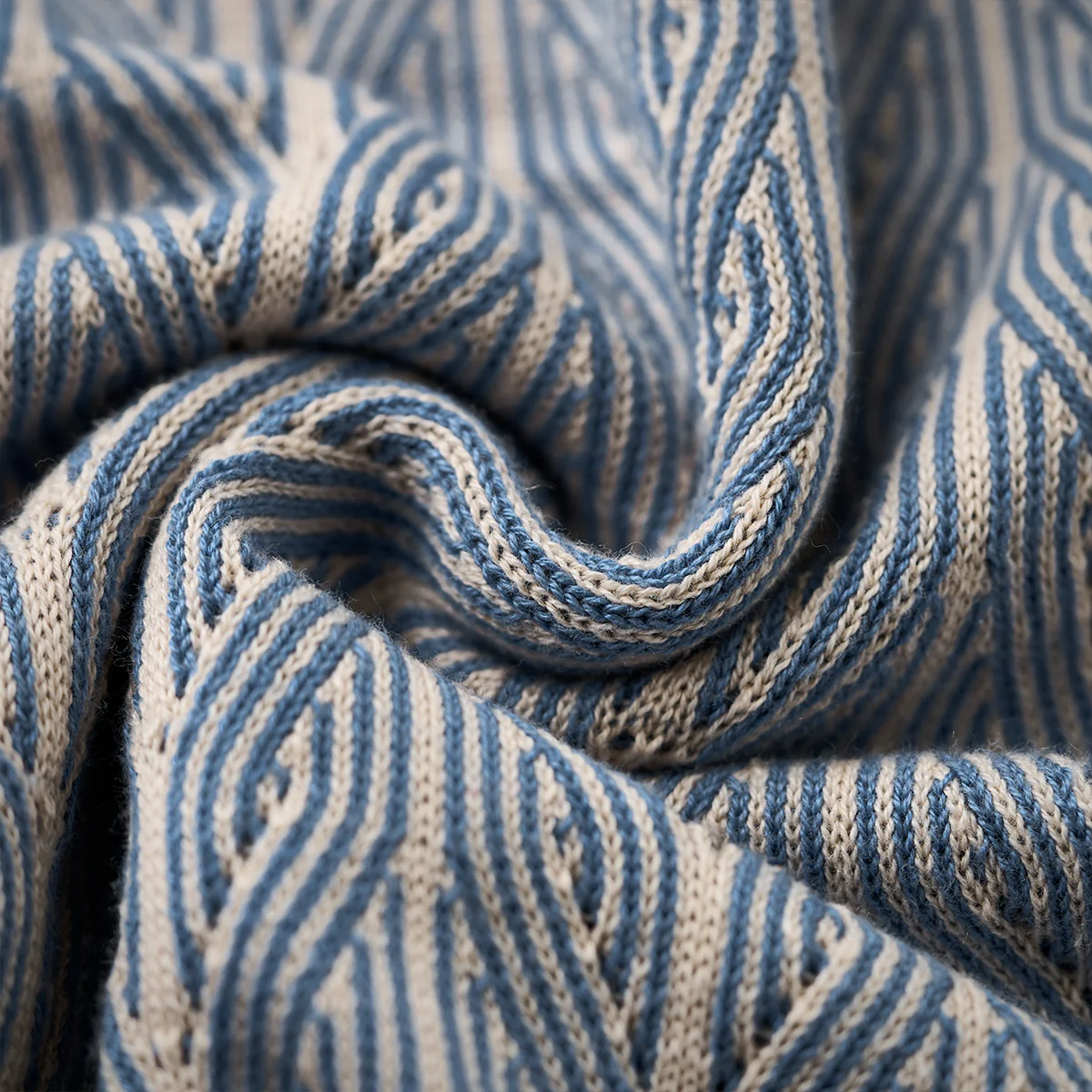 アクリルやコットンの混紡生地を使用し、細番手高級糸のこと、きめ細やかで肌触りもとても良く、そのうえ、強度にも優れているので丈夫で長持ちします。