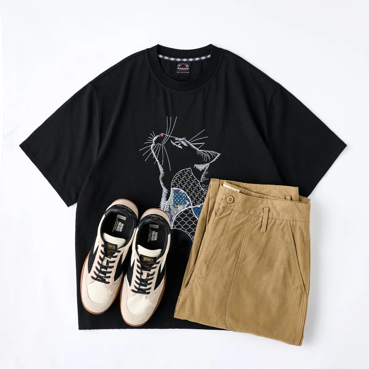 スニーカーやキャップなどと合わせればストリート感覚で着られる一方、和装要素とミックスすればモードやアヴァンギャルドな雰囲気にも対応可能。