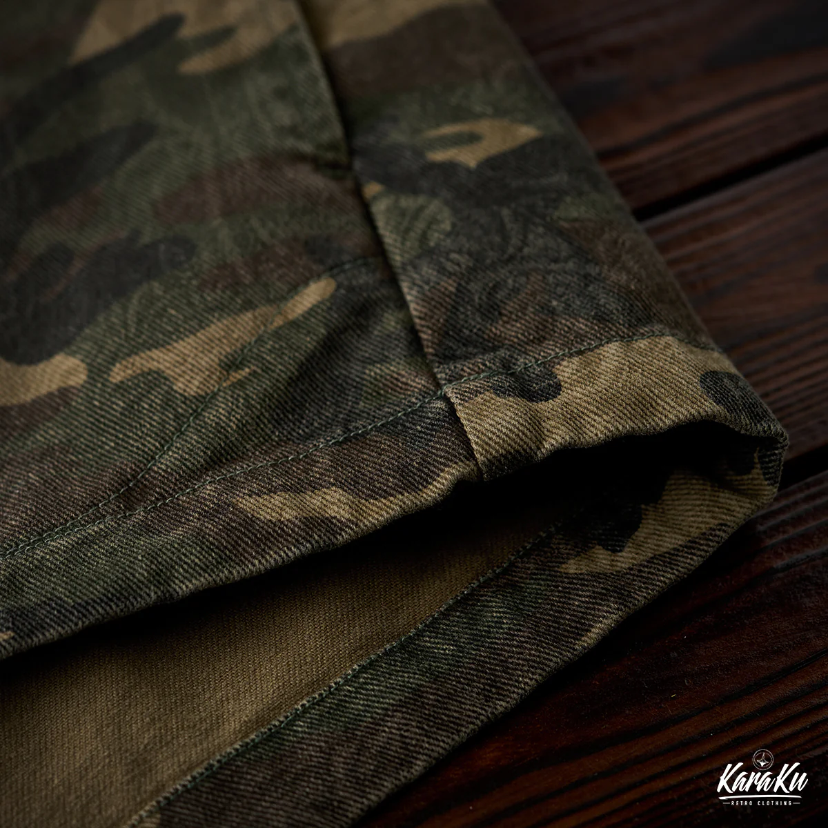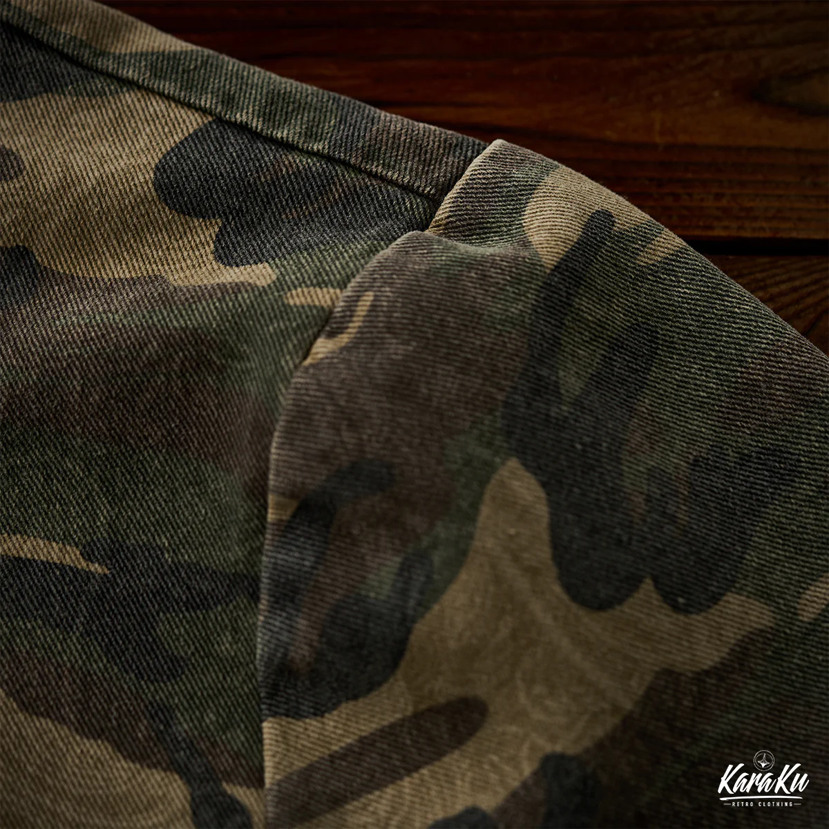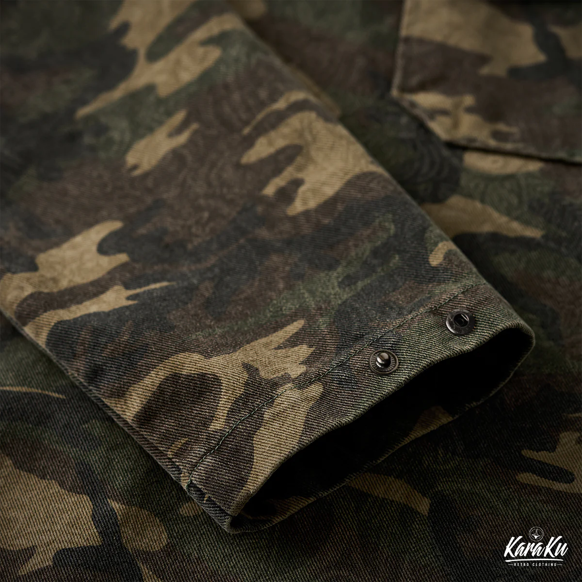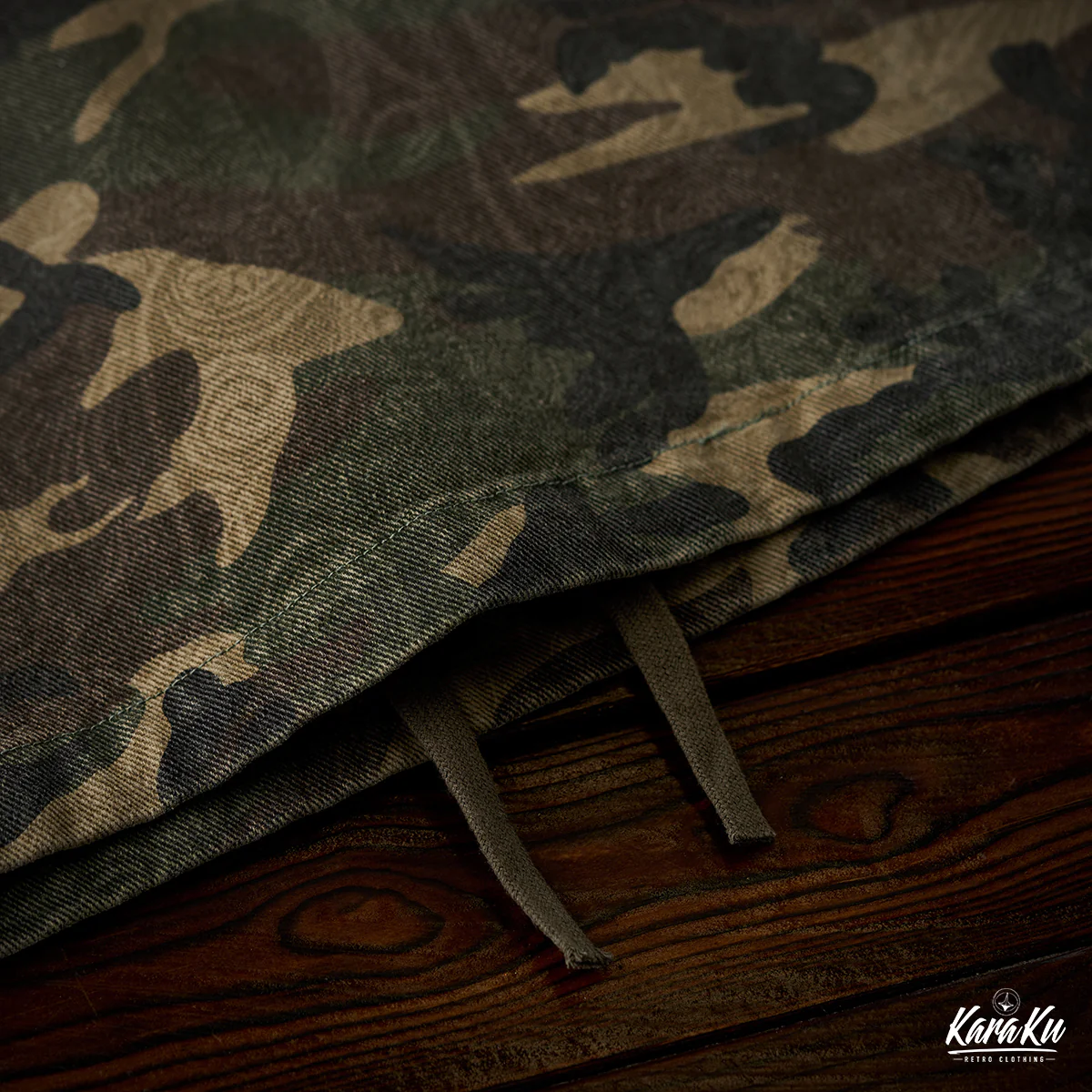迷彩柄を再解釈し、クラシックなワークウェアスタイルに落とし込んだフード付きプルオーバー。胸元にはフラップ付きポケットを2つ配置し、ワーク感を強調したデザインが特徴です。迷彩柄にはペイズリー柄を重ね合わせた独特のテクスチャが施され、細部まで洗練されたデザインに仕上げています。製品染めと酵素洗い加工により、ヴィンテージライクな風合いが加わり、一点物のような味わい深さが魅力です。アウトドアからストリートまで、幅広いスタイルにフィットする、機能性とファッション性を兼ね備えた一着です。