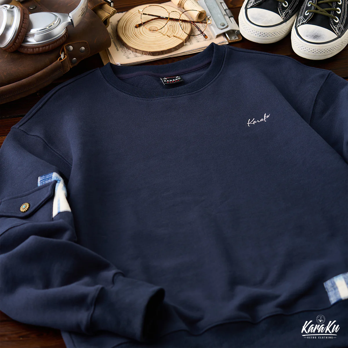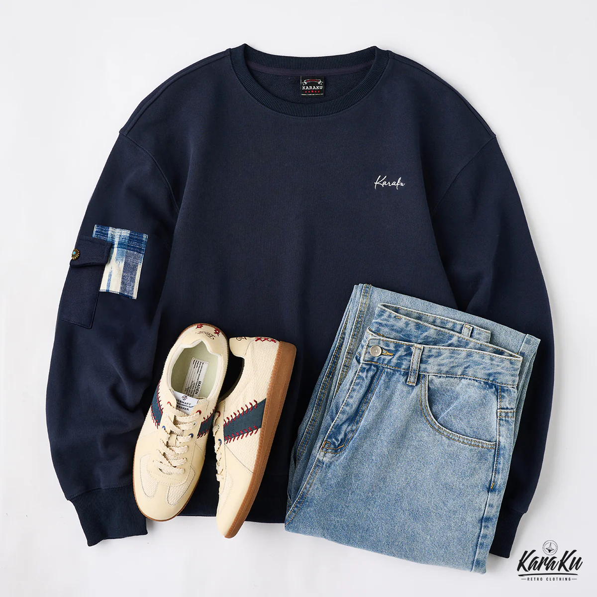 「karaku」ブランドならではのクラフトマンシップが光る、個性あふれるコットンスウェットです。胸元には「karaku」のアイコニックな刺繍が施され、袖と裾部分にはチェック柄のパッチがアクセントとして加えられています。洗練されたデザインの中に遊び心を取り入れた一枚です。ウォッシュ加工が施されたコットン生地は、柔らかい肌触りとヴィンテージライクな風合いを実現。ほどよい厚みと軽やかな着心地で、季節の変わり目やリラックスしたカジュアルスタイルに最適です。細部にまでこだわり抜かれたデザインは、コーディネートの主役としても活躍します。このスウェットは、「着るたびに自分らしさを表現できる」そんな特別な一着です。