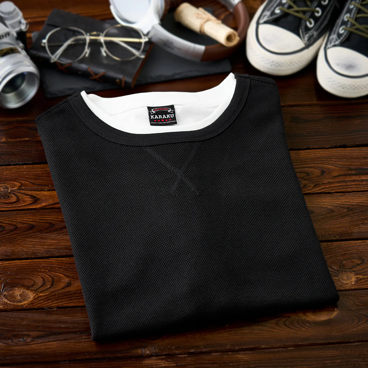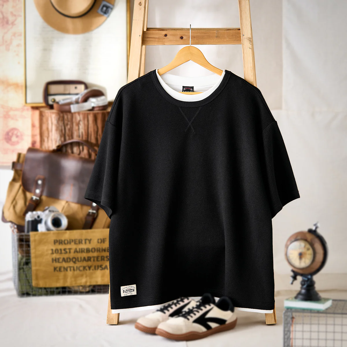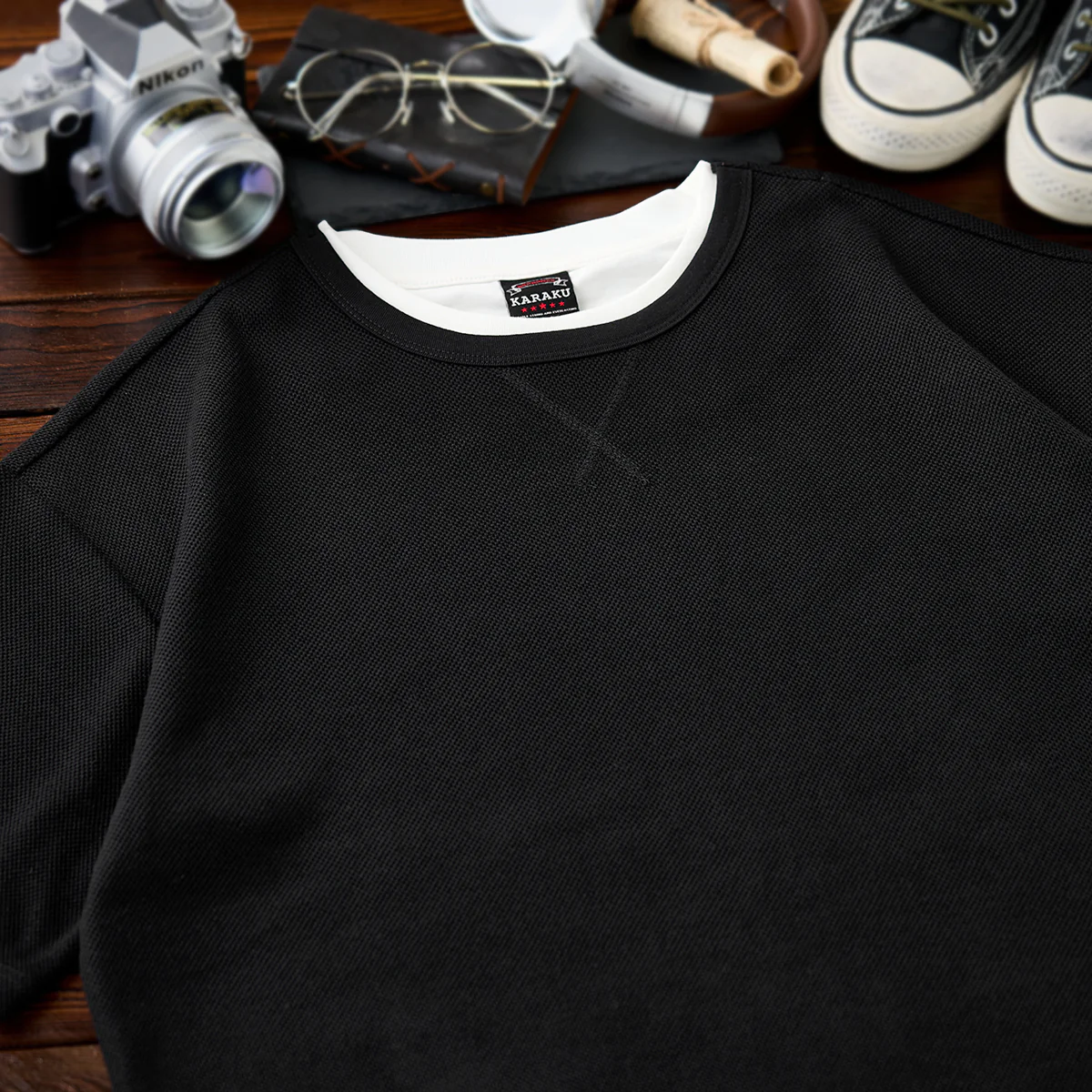 • Vガゼット入り フェイクレイヤードテクスチャーTee