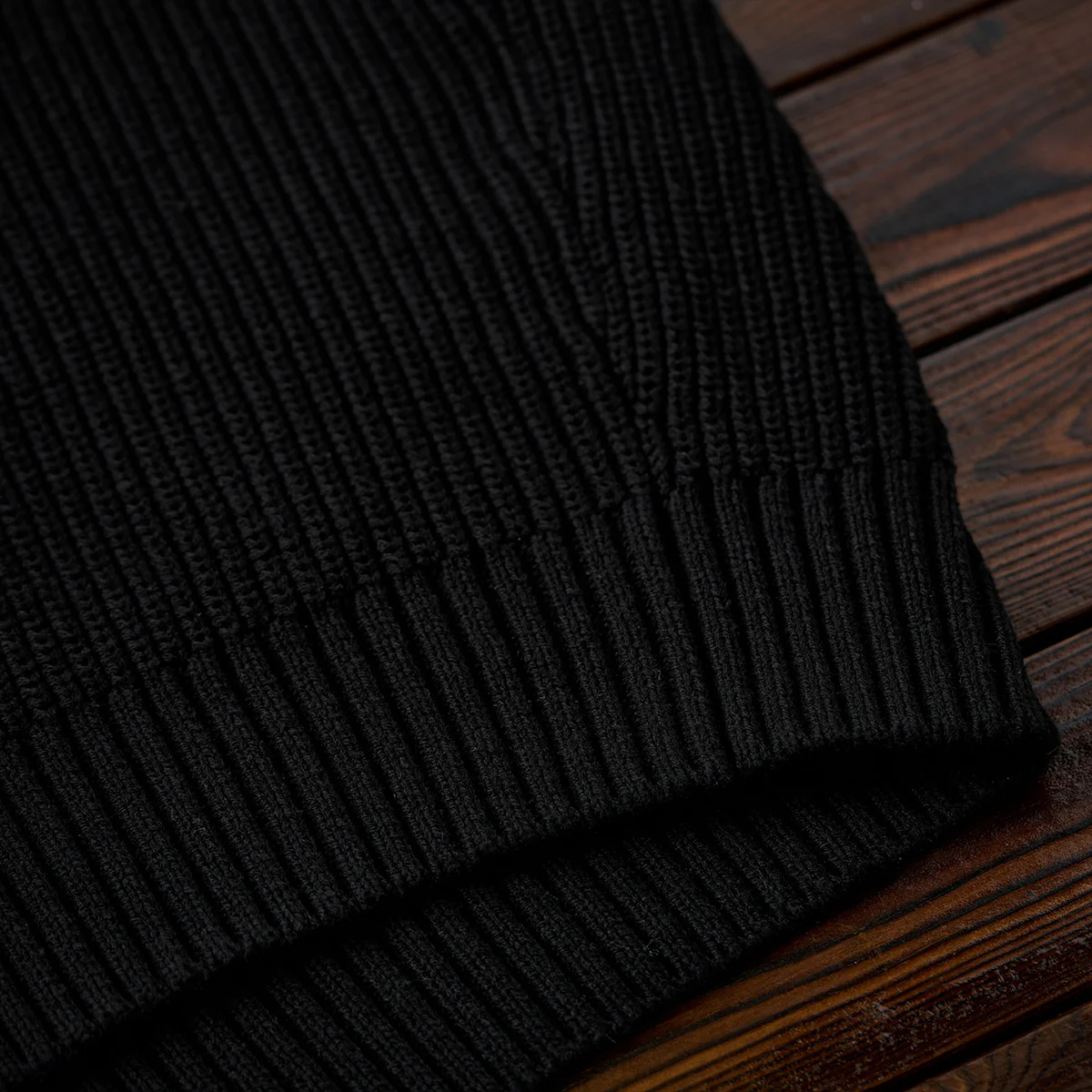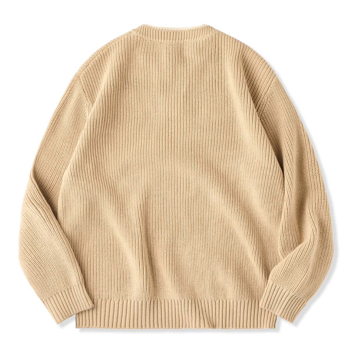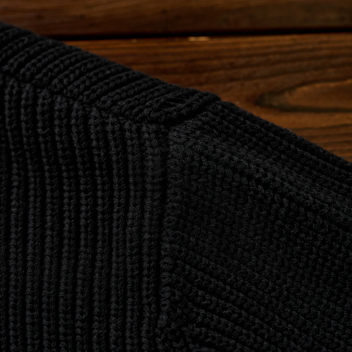 全体がリブ編みのニット素材で仕上げられており、伸縮性と保温性に優れています。