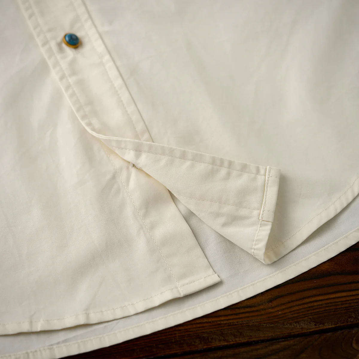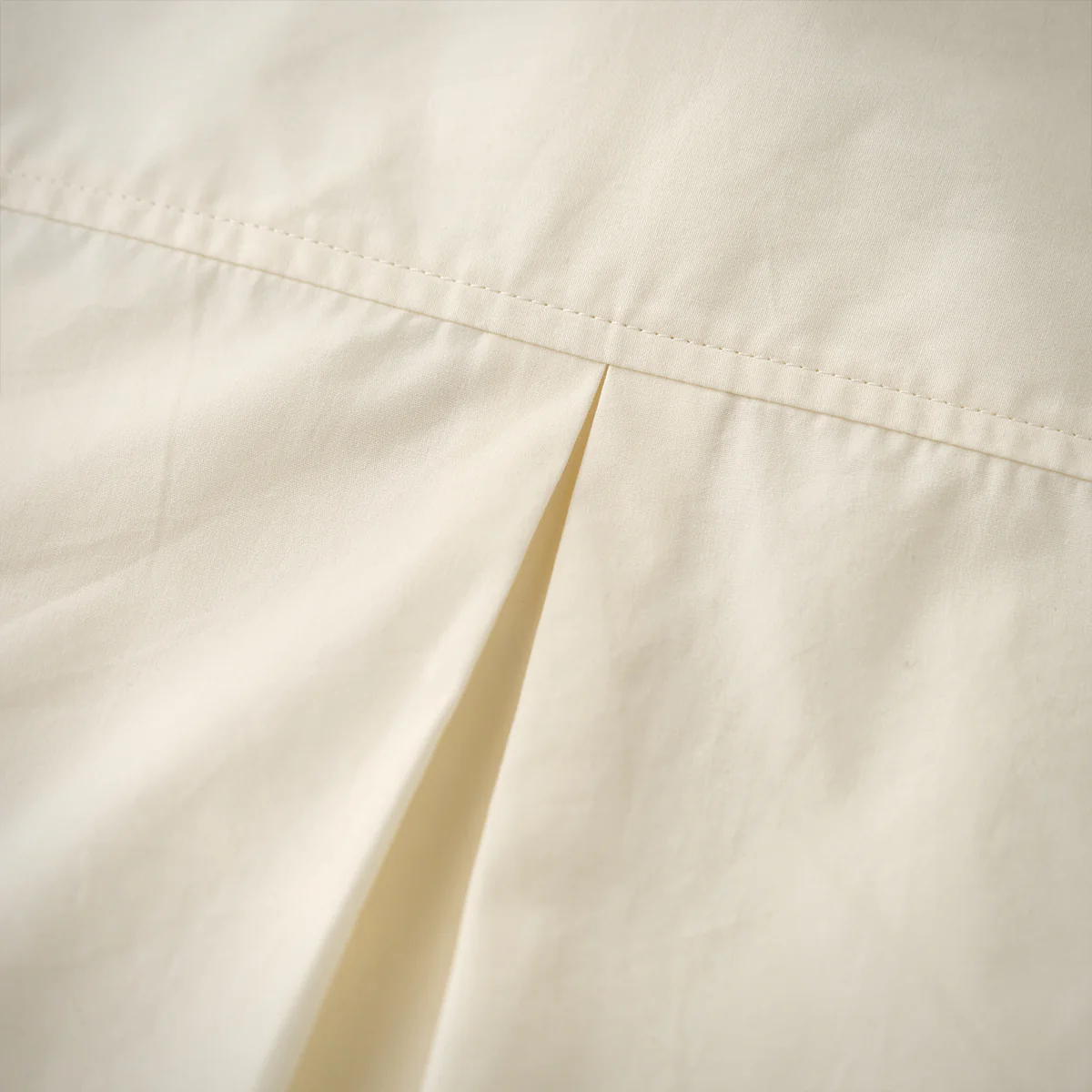 バックにはセンタープリーツが施されて、動きやすさとデザイン性を両立。裾部分はラウンドカットになって、タックインにもタックアウトにも適した。