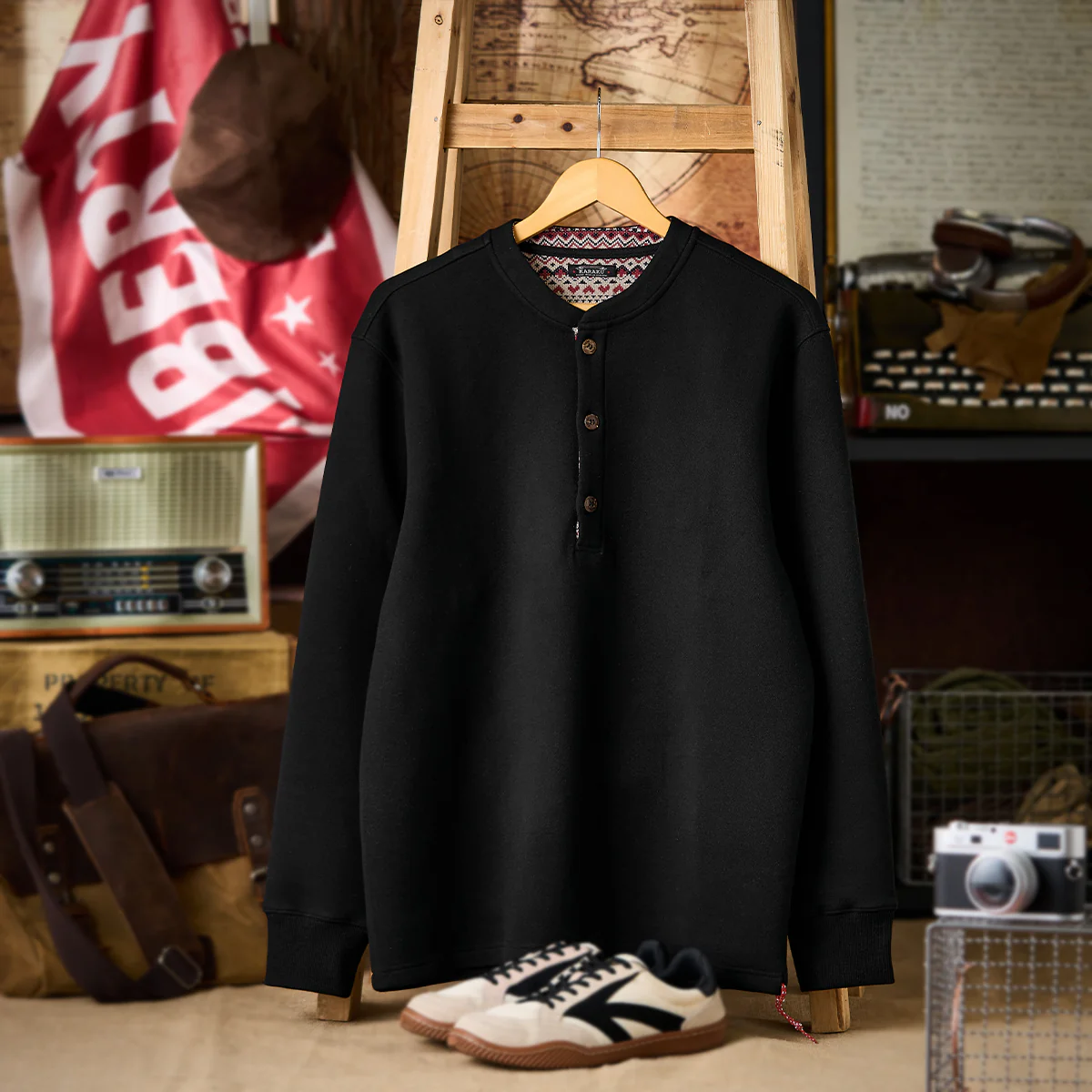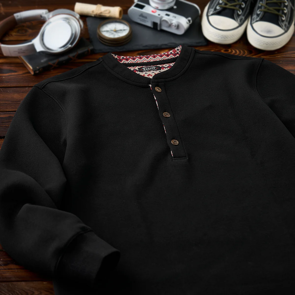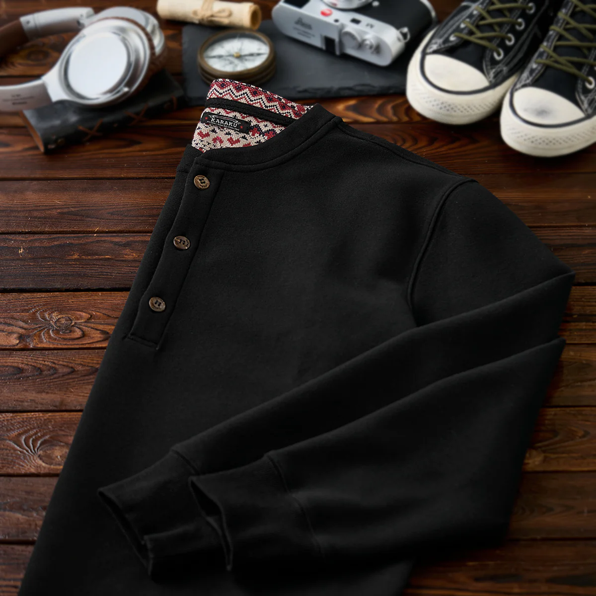 • 赤ヒモ付き エスニックジャカード織り切替ヘンリーネックロングT
