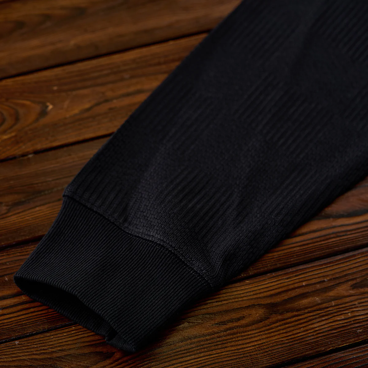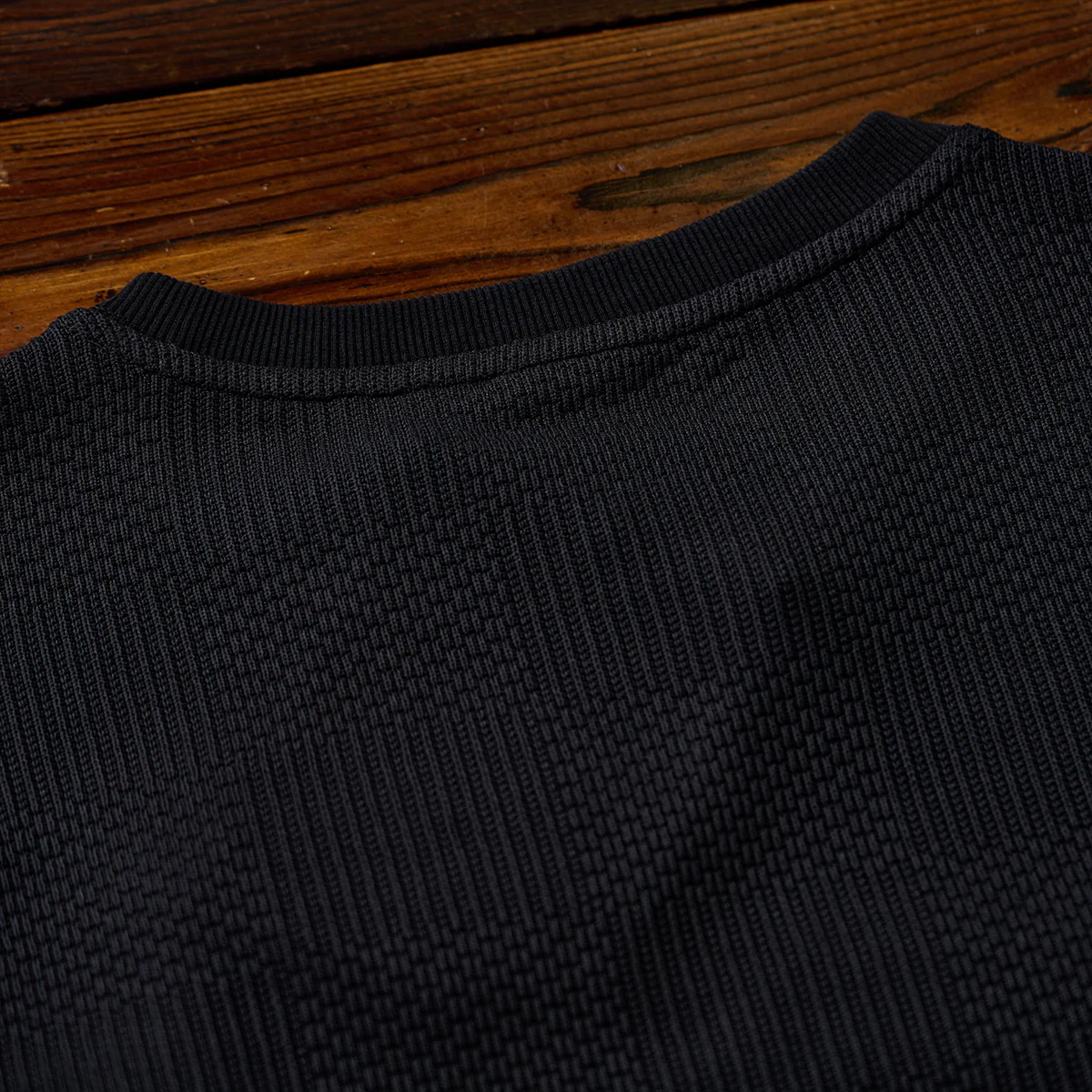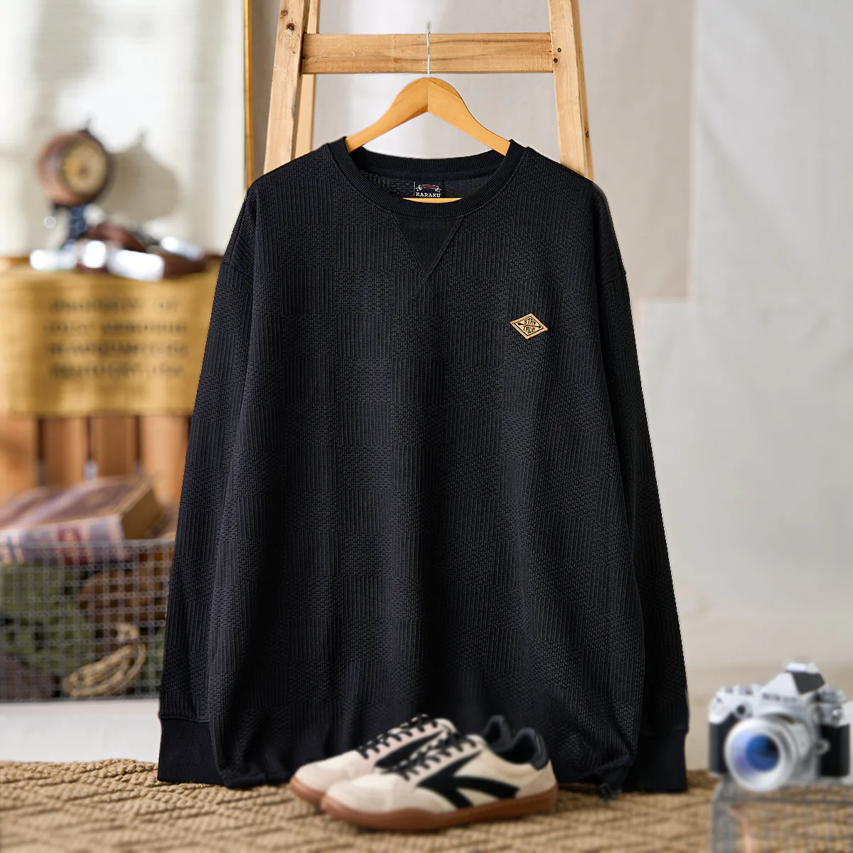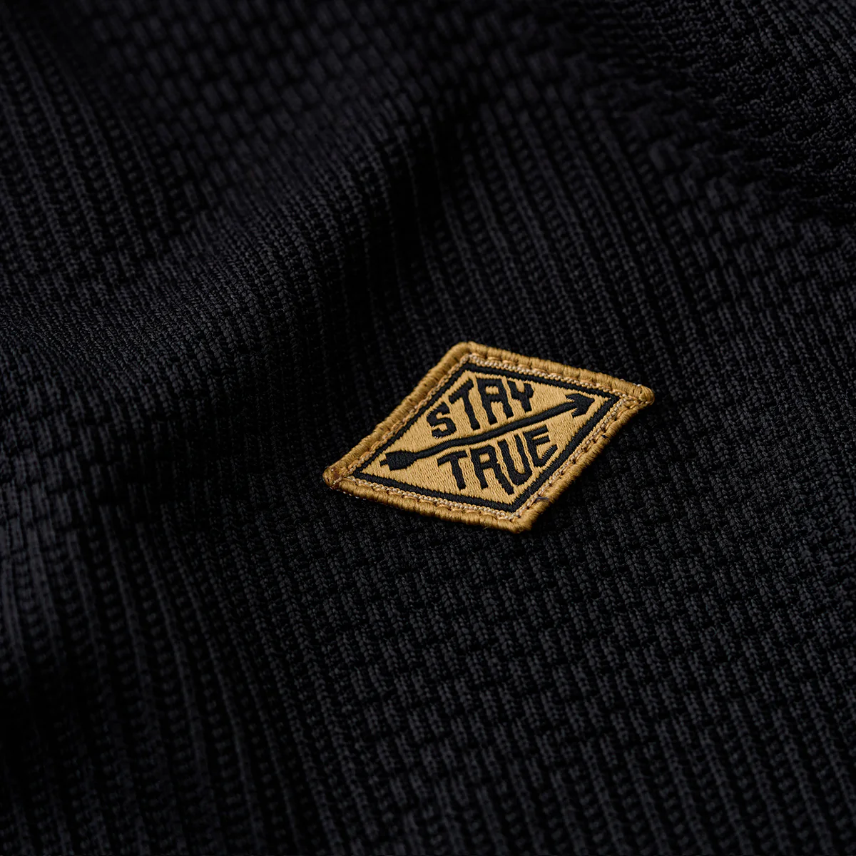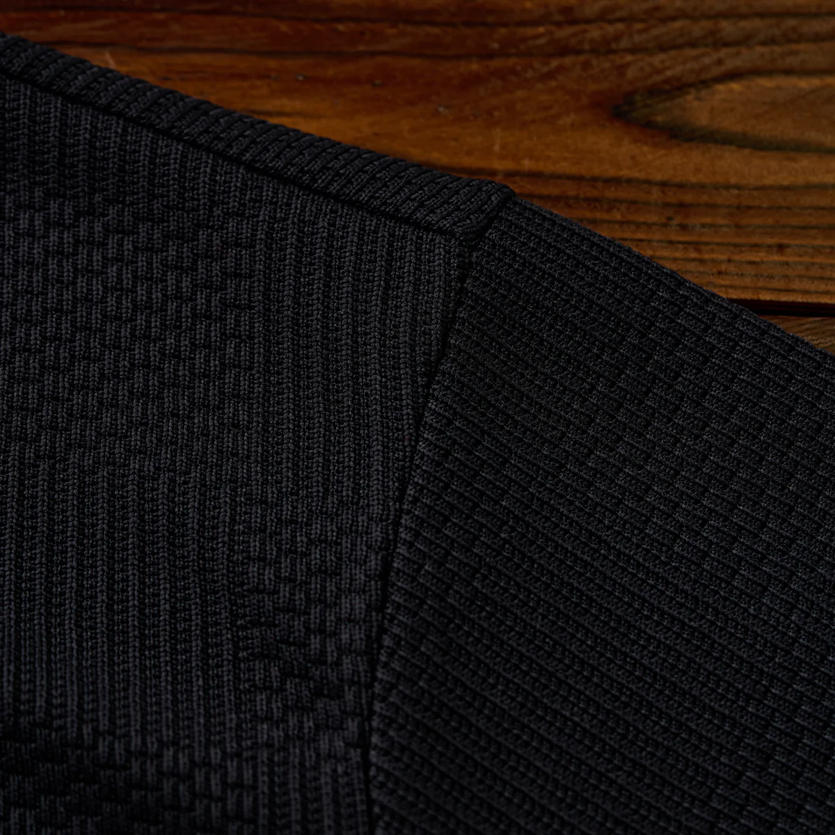 チェック柄を織りで表現したニット素材を使用したロングスリーブTシャツ。柔らかな風合いと適度な厚みがあり、1枚でもレイヤードでも活躍する万能アイテムです。胸元には「STAY TRUE」と刺繍されたワッペンをあしらい、シンプルなデザインにアクセントを添えています。裾にはシルエットを調整できるドローコードを配し、スポーティかつモダンな印象に。カジュアルスタイルはもちろん、ストリートやアウトドアテイストのコーディネートにもマッチする一着です。