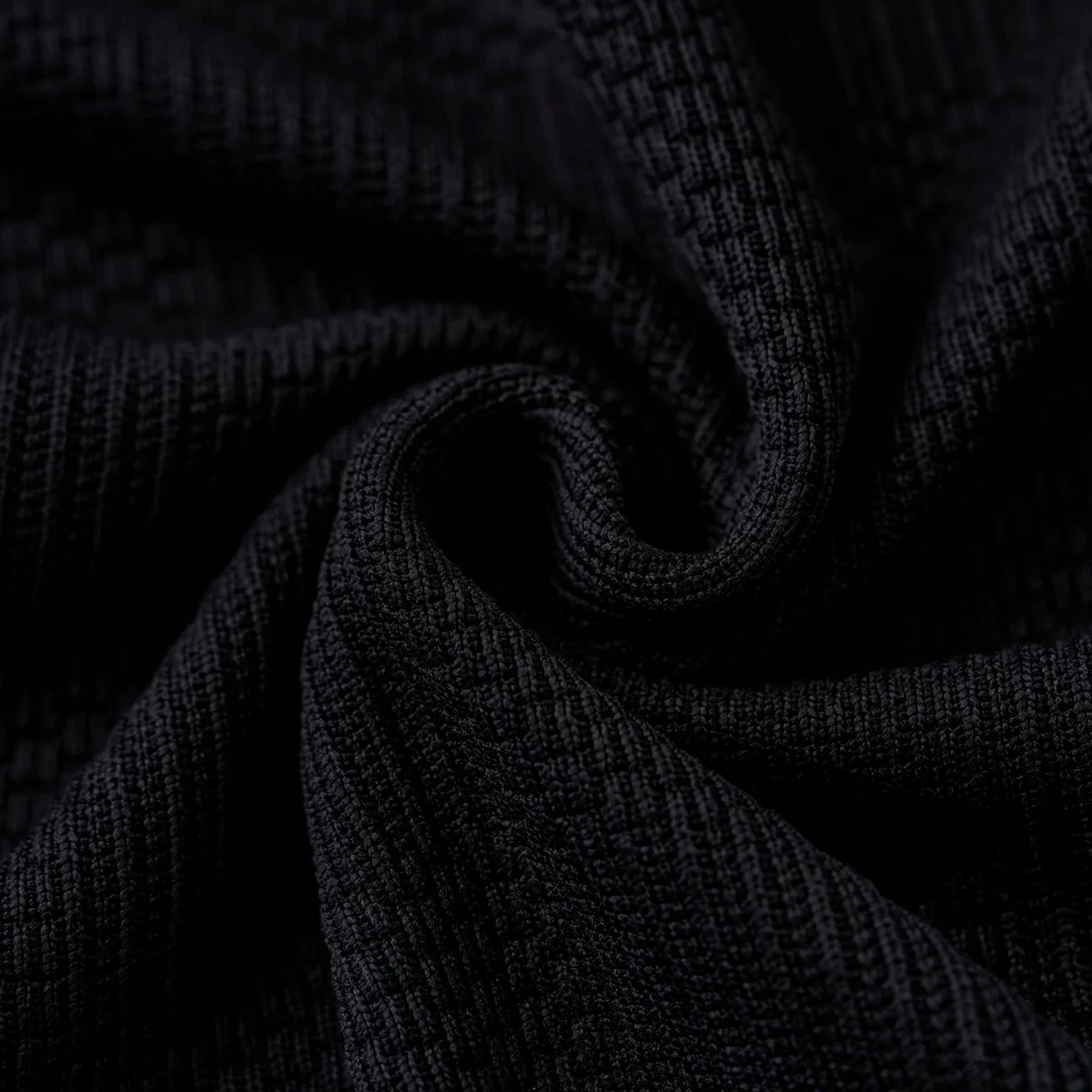 ポリエステルとスパンデックスを混紡した生地を使用。シワになりにくく、洗濯後も型崩れを防ぎ、さらに優れた伸縮性で動きやすくストレスフリーな着心地を実現します。