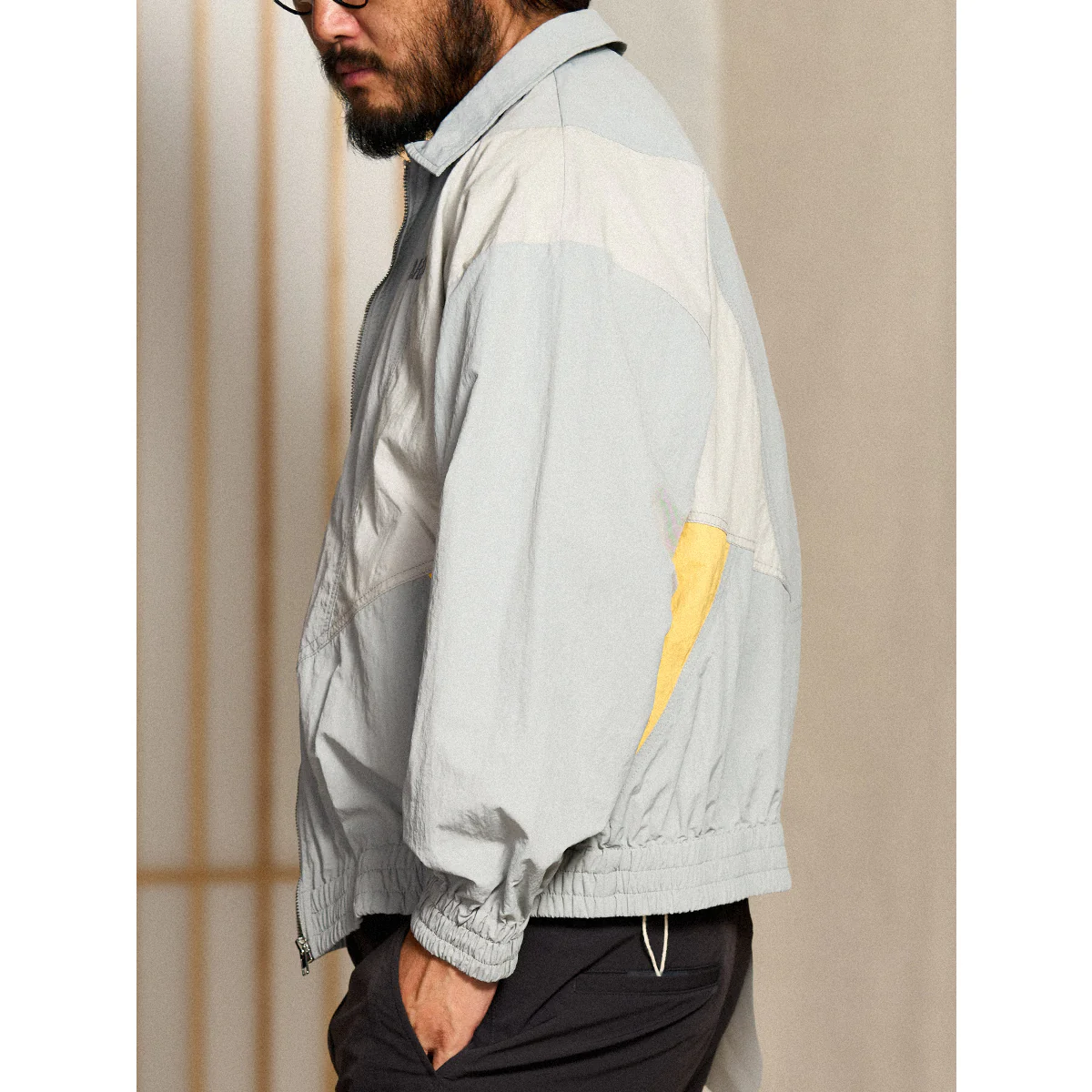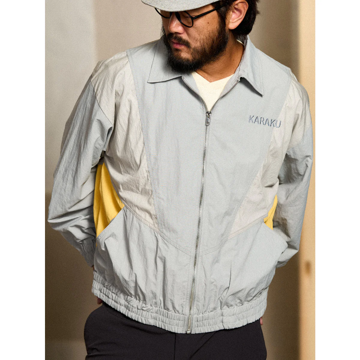• 異素材配色切替 「KARAKU」刺繍入りトレーニングジャケット