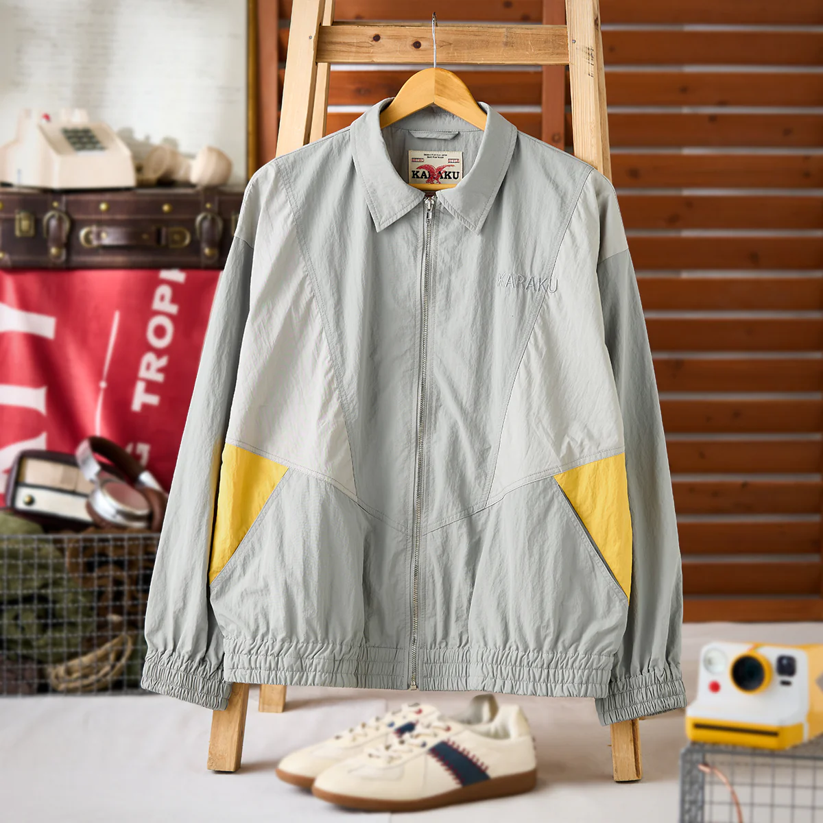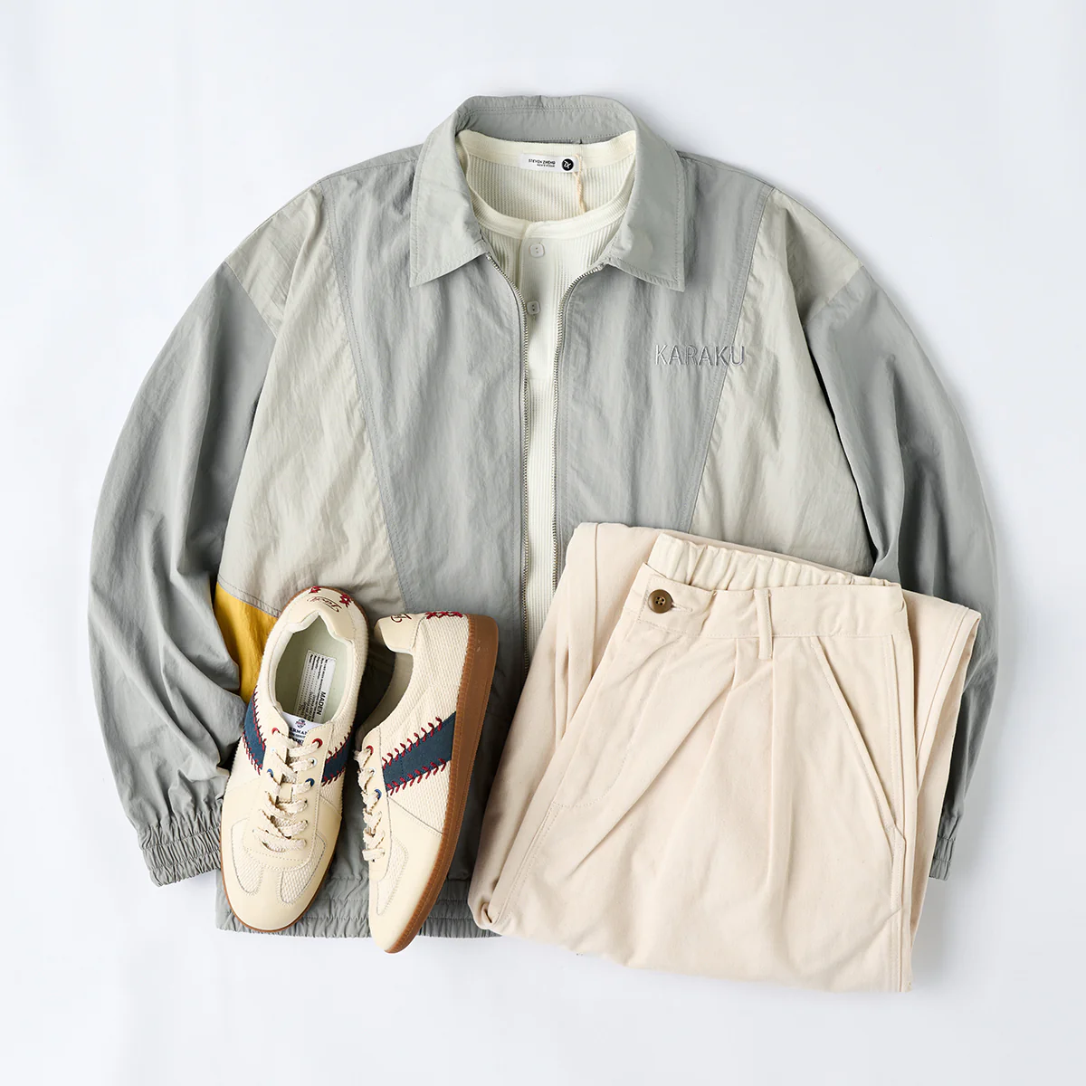 異素材を組み合わせた配色切替デザインが目を引くトレーニングジャケット。トレンド感のあるスポーツテイストを大胆な切り替えで表現しつつ、配色の妙で幅広い着こなしに対応します。程よいシルエットとどこか懐かしいレトロ感が、まさに今の気分にフィット。前胸には「KARAKU」ロゴの刺繍を施し、シンプルな中にも確かな存在感をプラスしました。軽快な着心地と動きやすさを備え、アクティブシーンはもちろん、タウンユースにも映える一着。スポーツウェアの機能性とストリートライクなデザインを融合させた、シーズンレスで活躍する万能アイテムです。